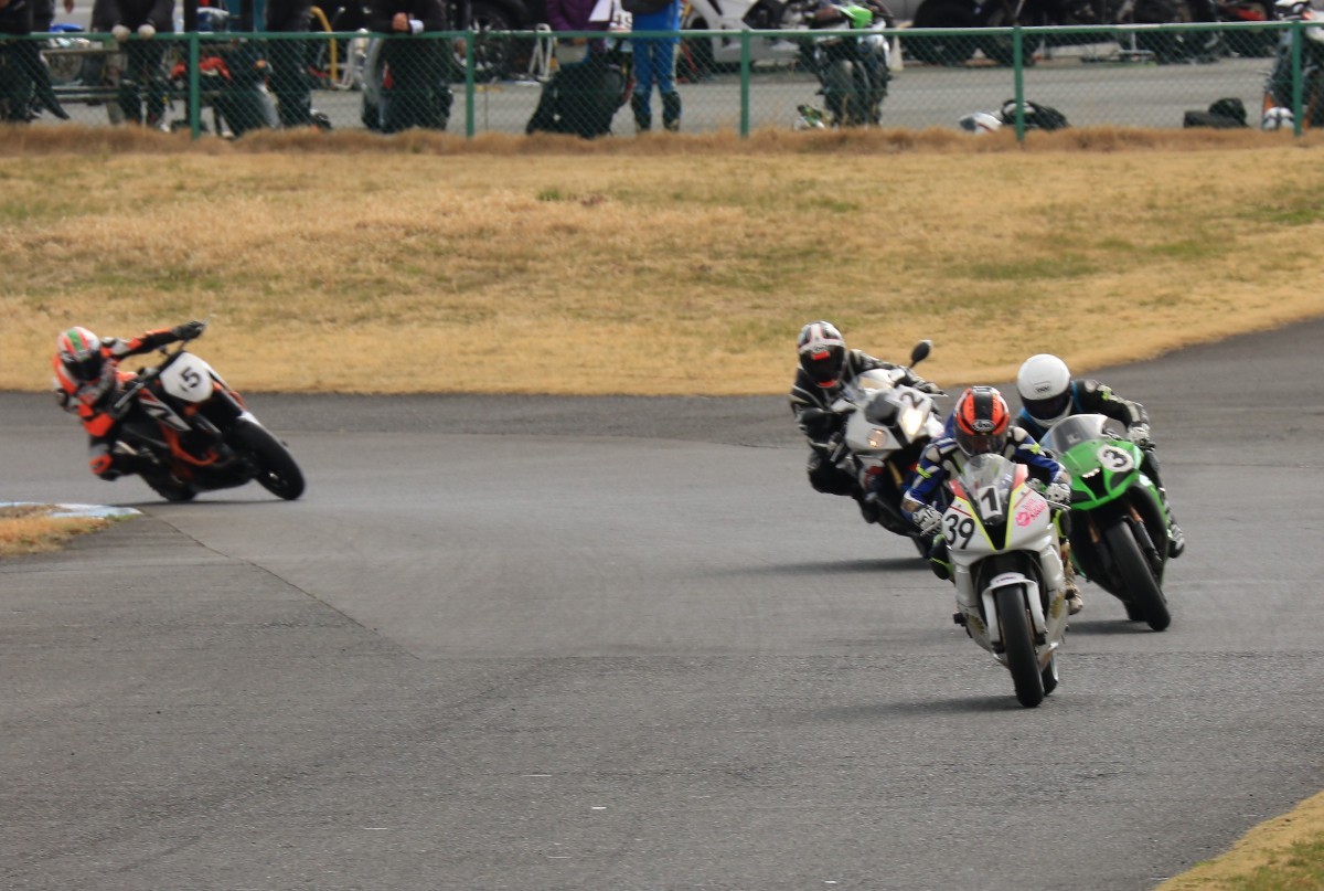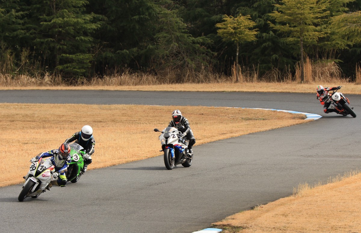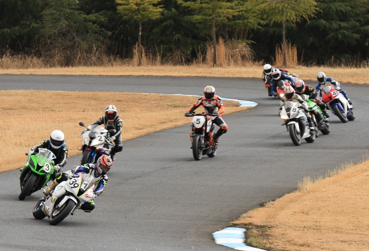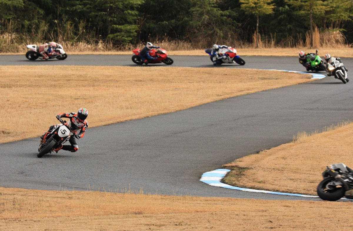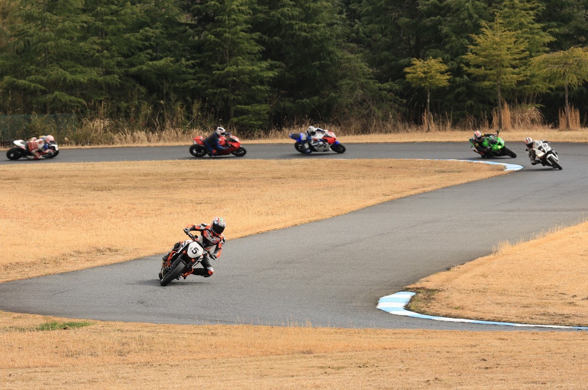 まずはキング篠塚が主導権を握る。#3尾崎、#2高橋と続き、斉藤690DukeRもすぐ後方。
