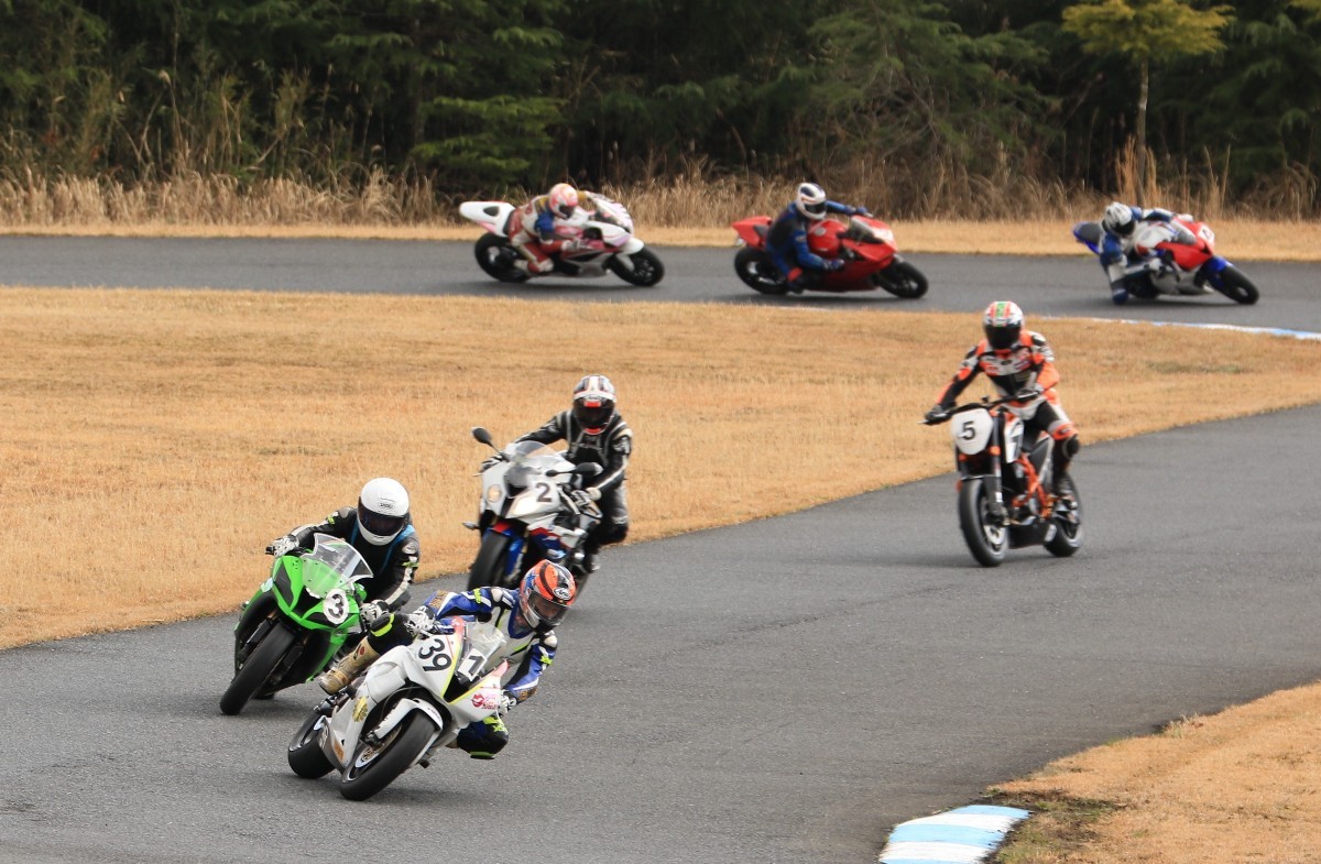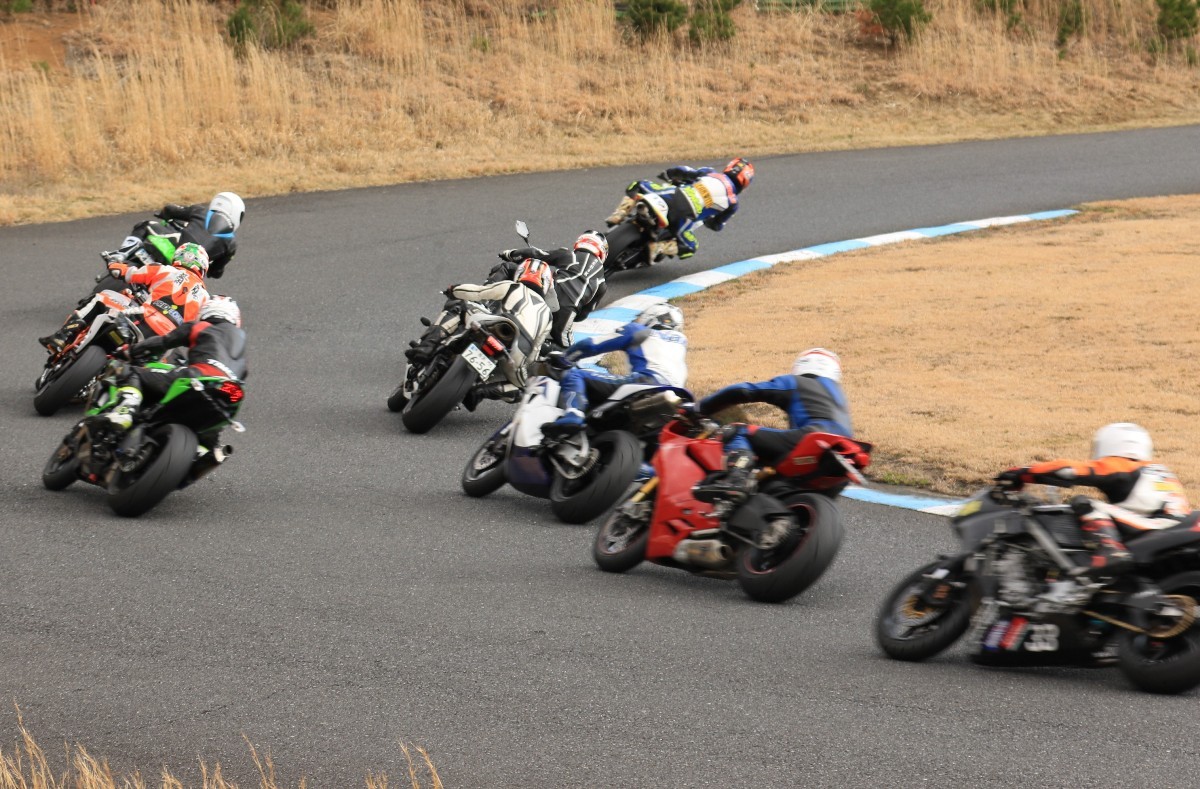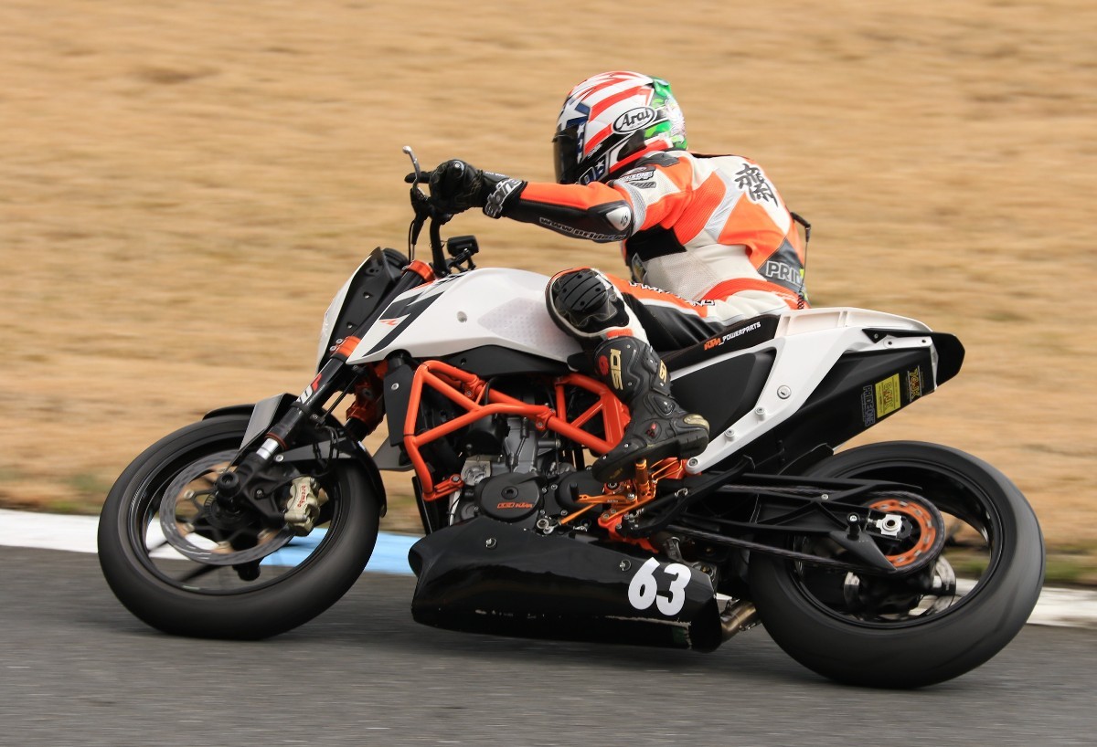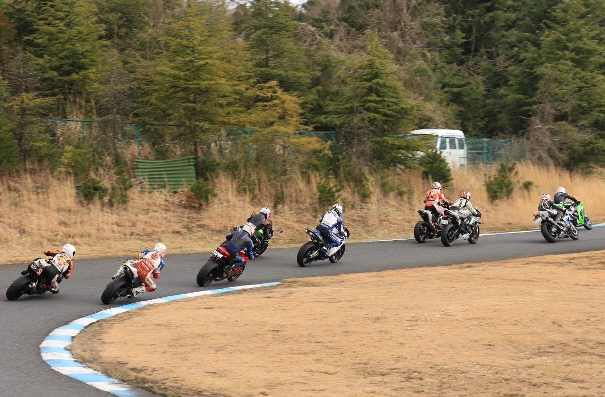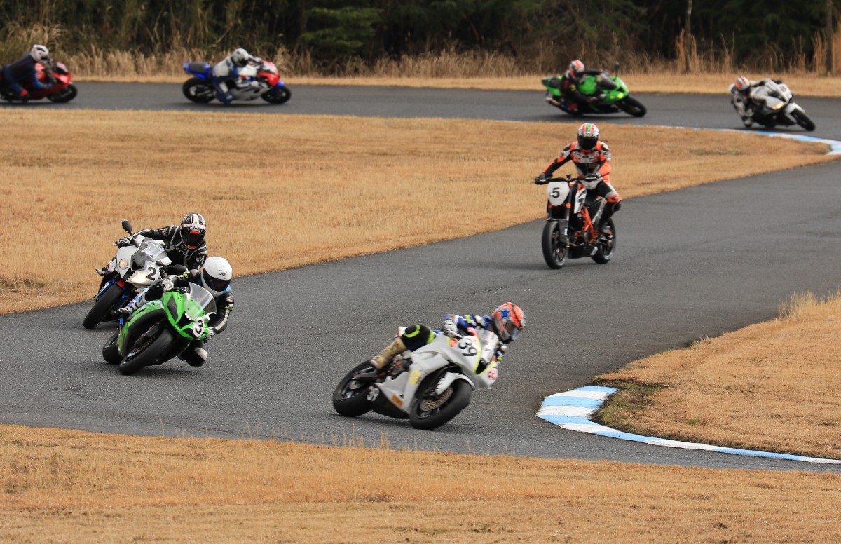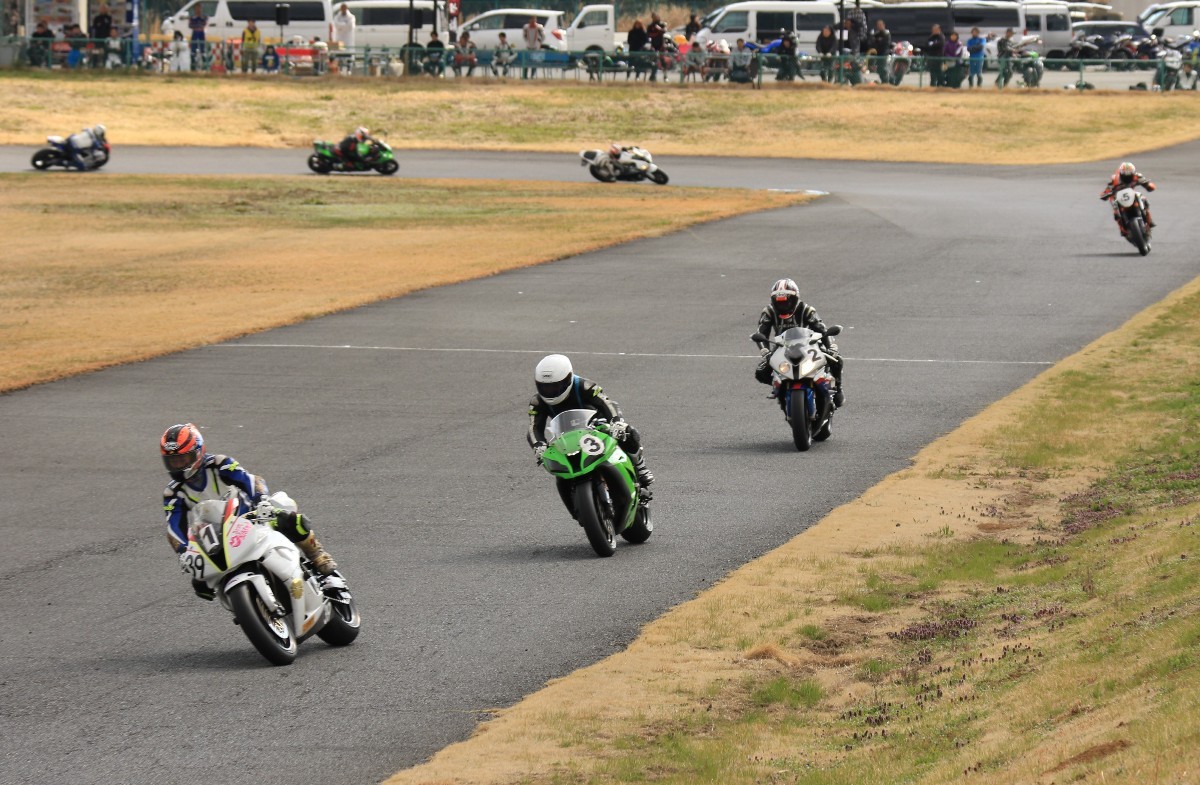 まずはキング篠塚が主導権を握る。#3尾崎、#2高橋と続き、斉藤690DukeRもすぐ後方。