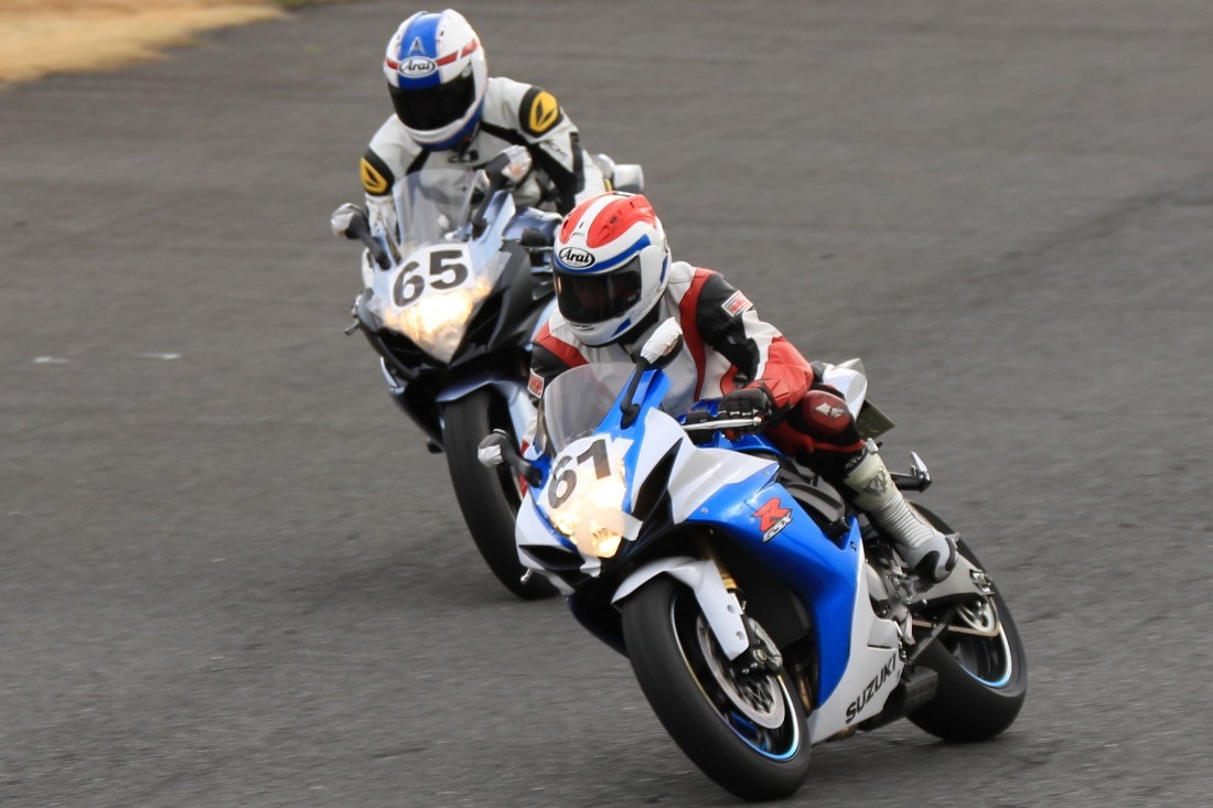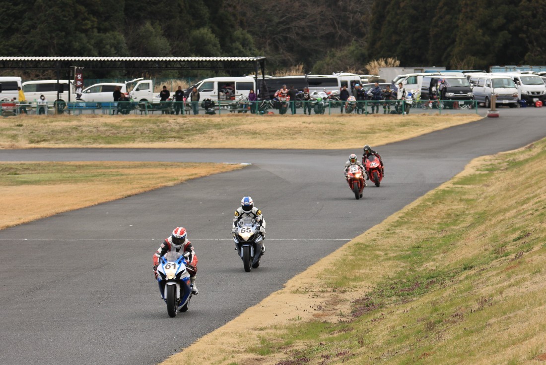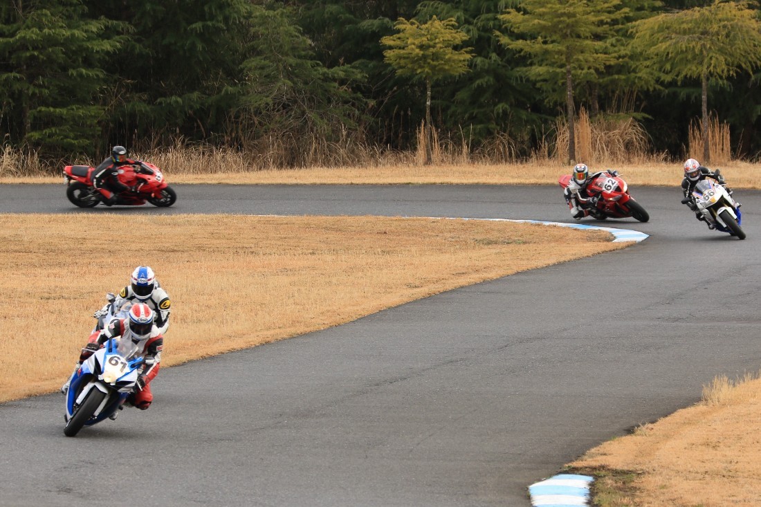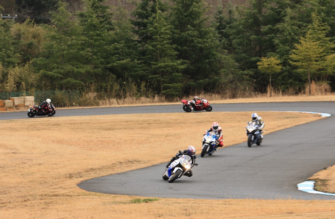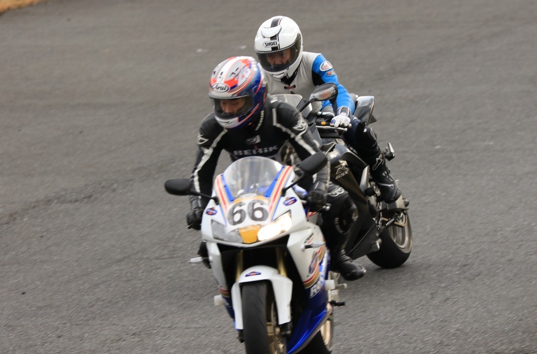 3番手に工藤デイトナ675、4番手に石森CBR600RR、5番手に梨本亮CB400SF、6番手に初参加の八木XJR1300。