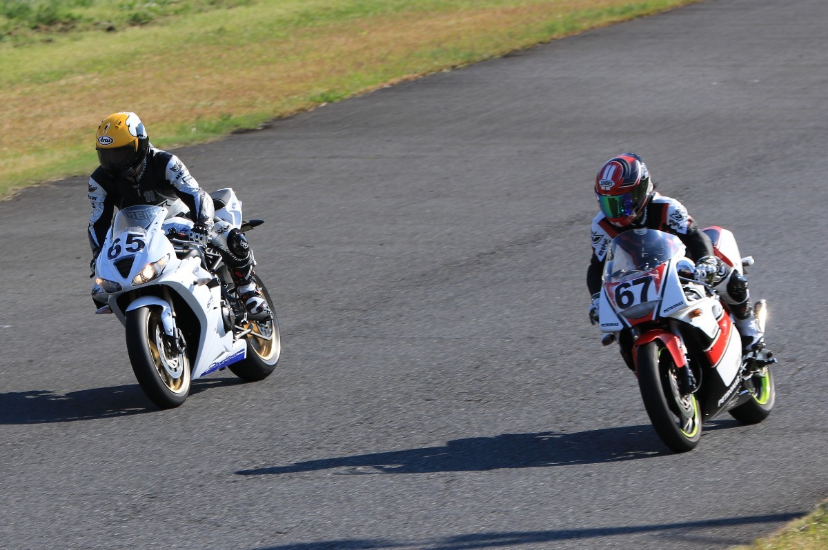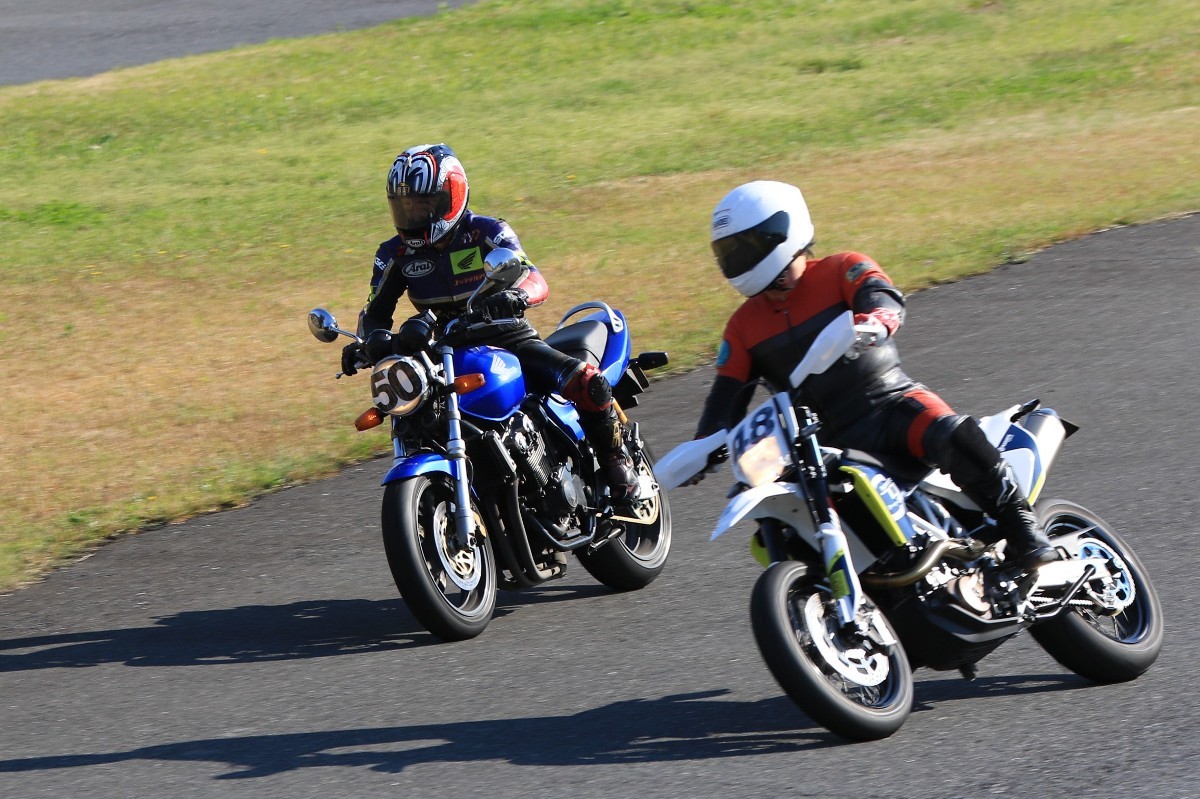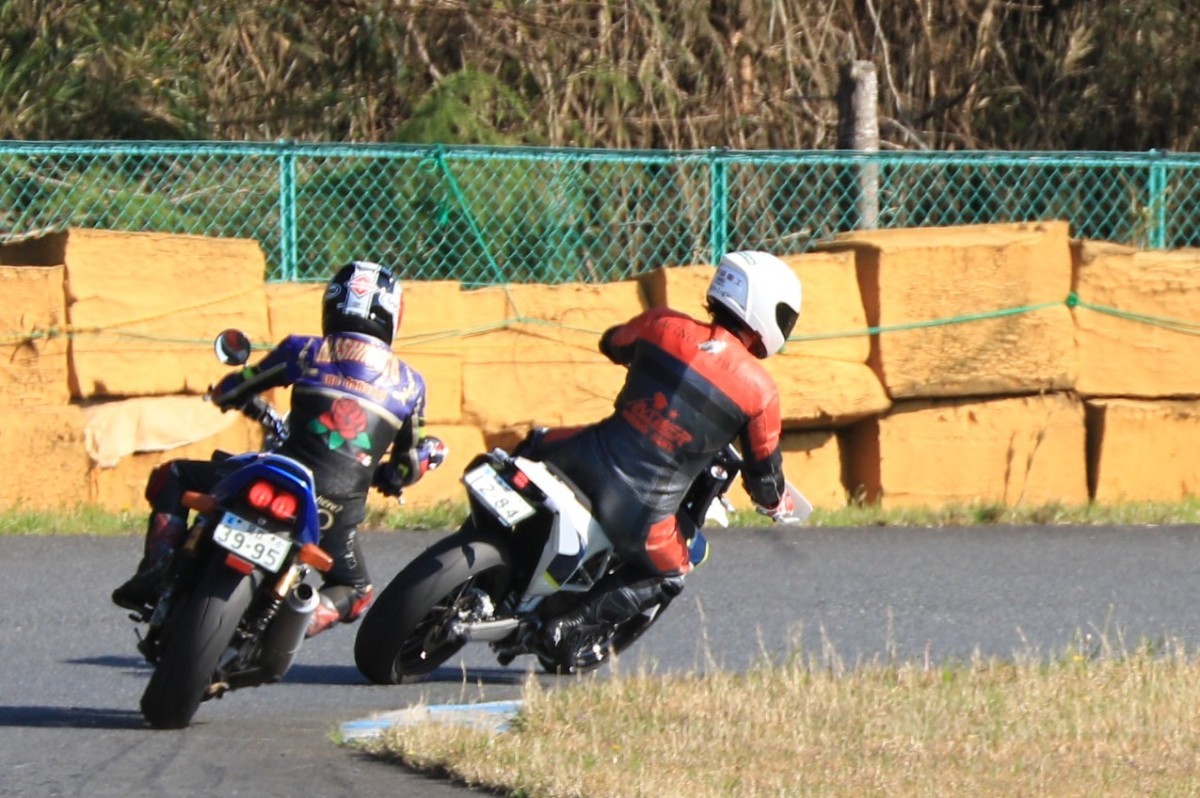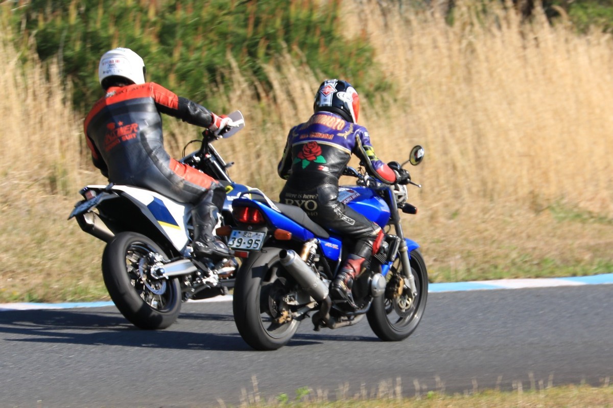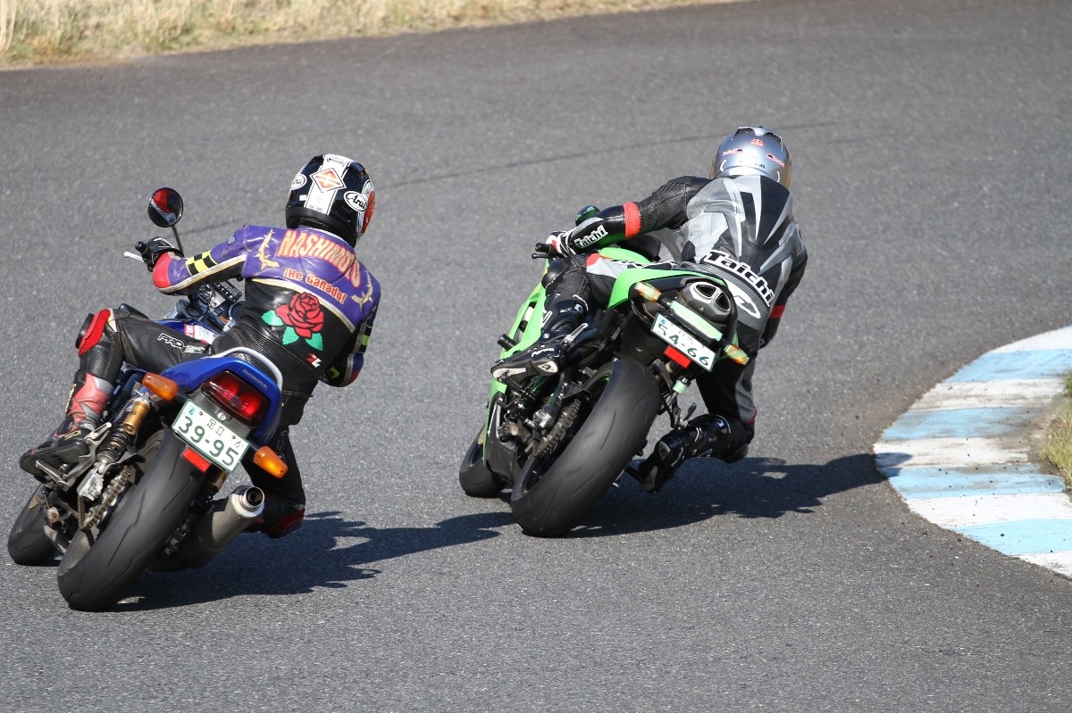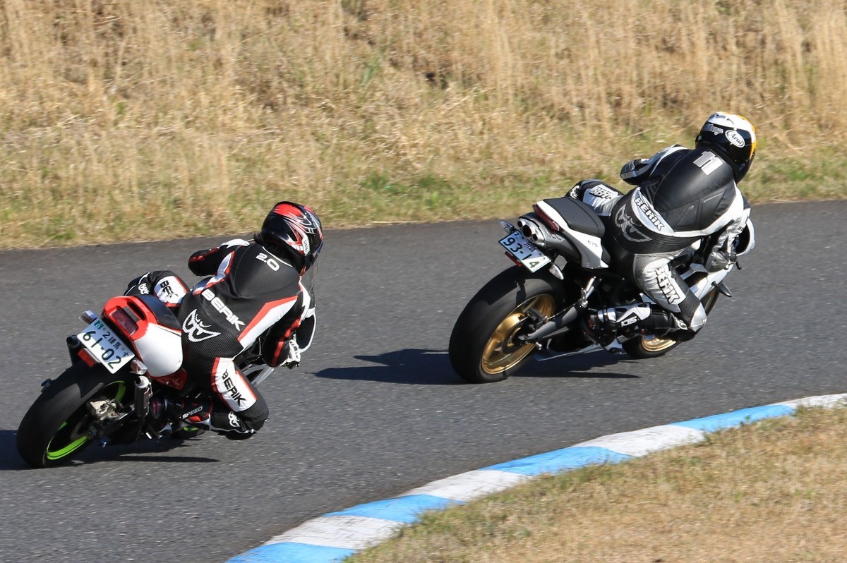 梨本CB400SFにプレッシャーをかける八木ZX6R。