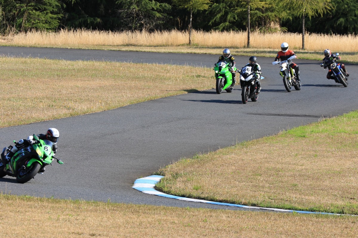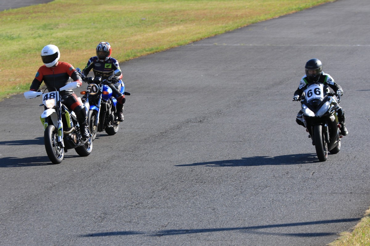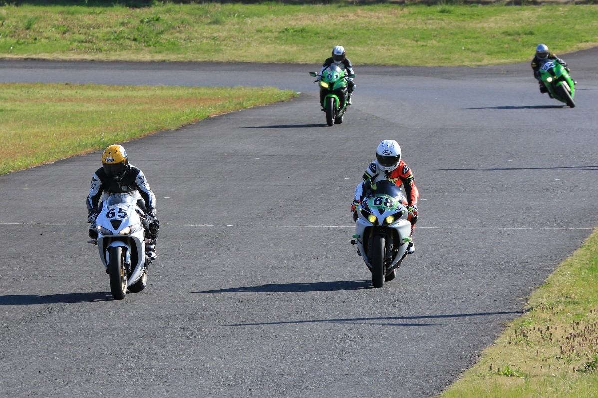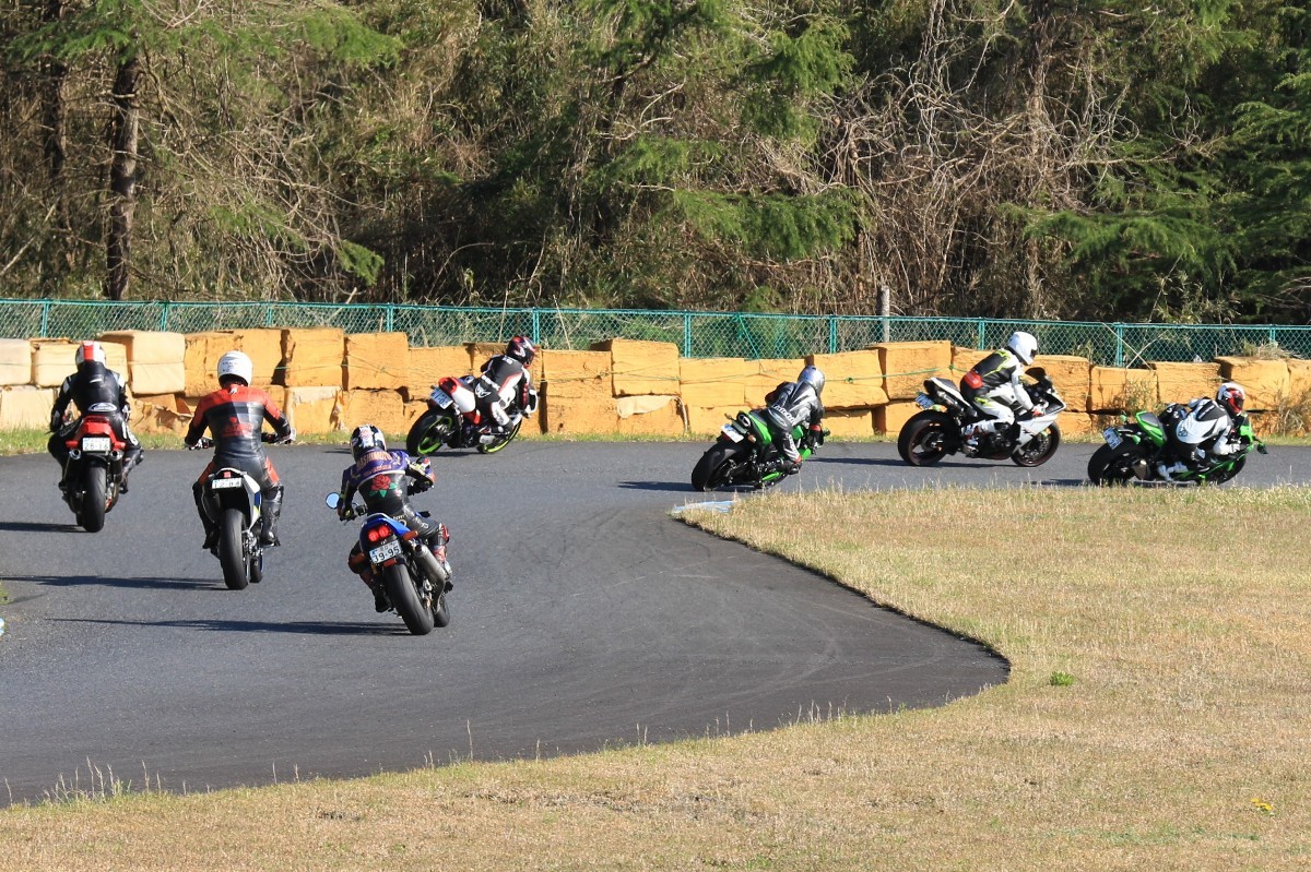梨本が前へ。八木は4番手。5番手に初参加の#67喜多TZR250R、6番手に新井デイトナ675、7番手にも初参加の保坂ER-6f、8番手にも同じく初参加の新宅900SS、9番手に山口R1と続く。