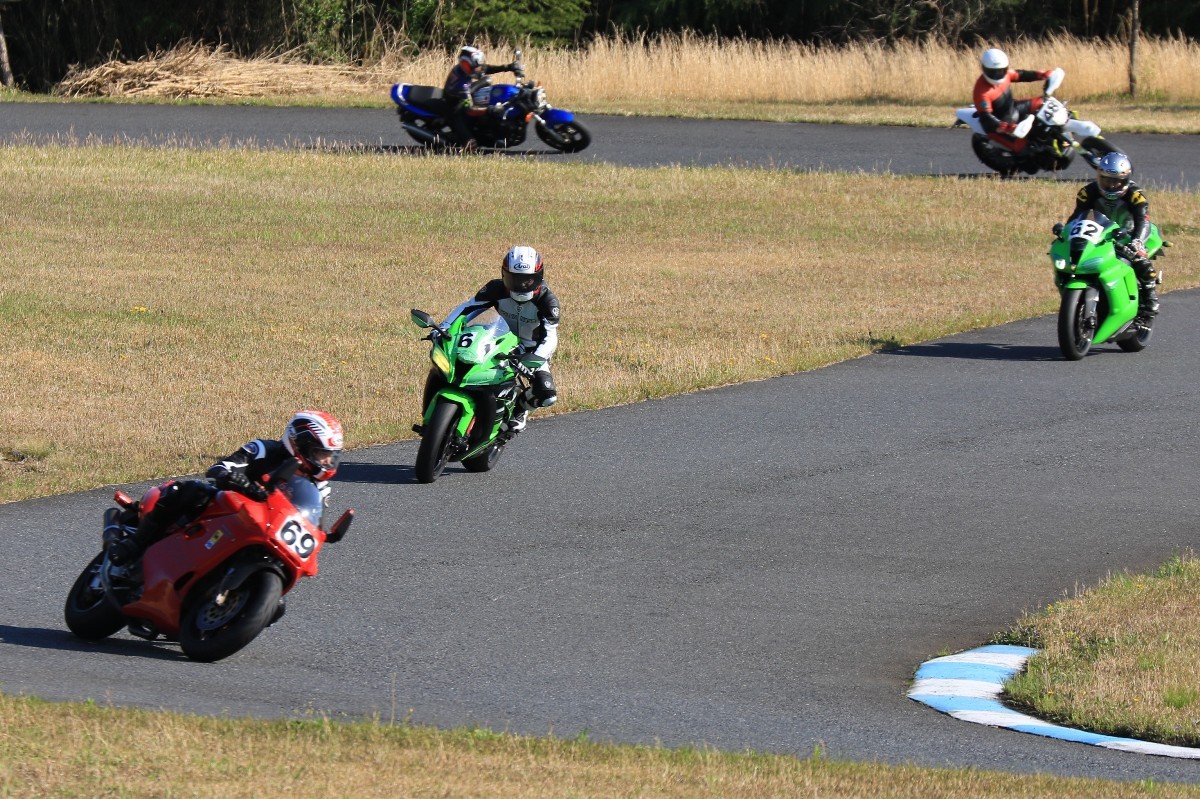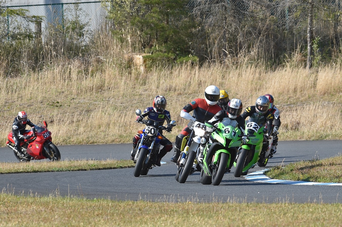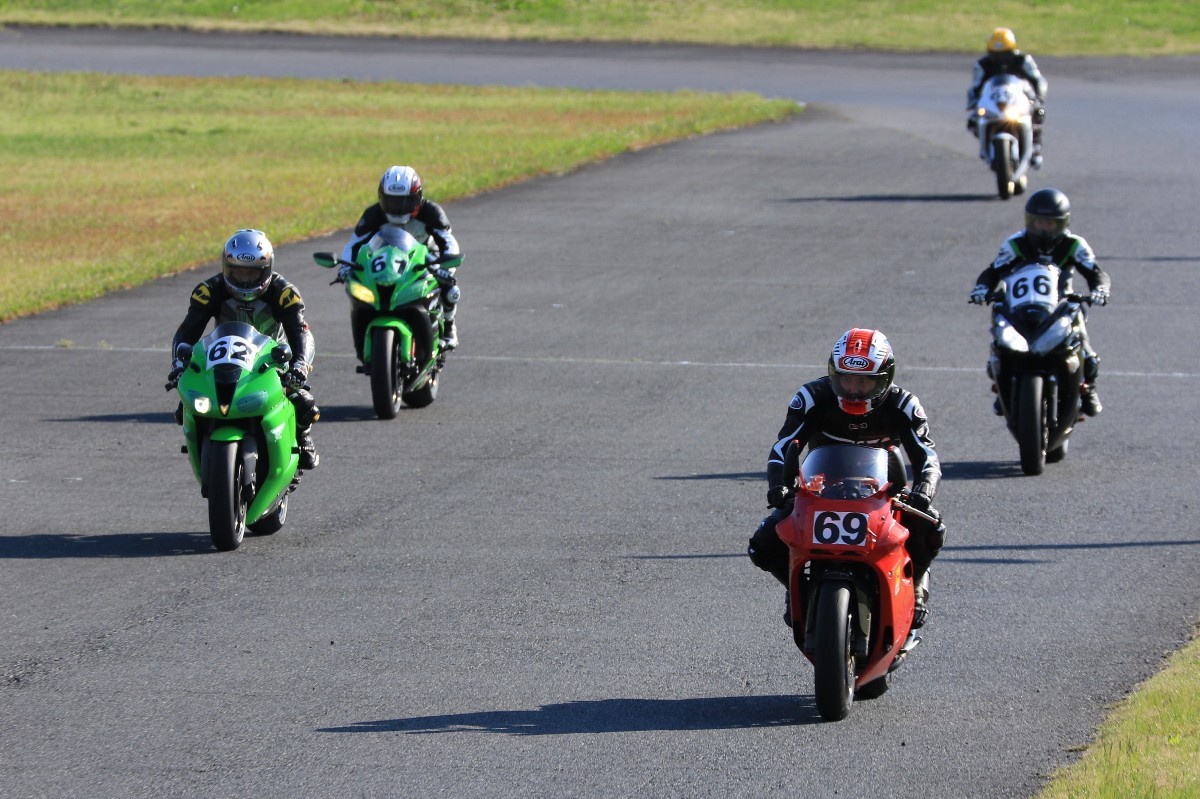 梨本が前へ。八木は4番手。5番手に初参加の#67喜多TZR250R、6番手に新井デイトナ675、7番手にも初参加の保坂ER-6f、8番手にも同じく初参加の新宅900SS、9番手に山口R1と続く。