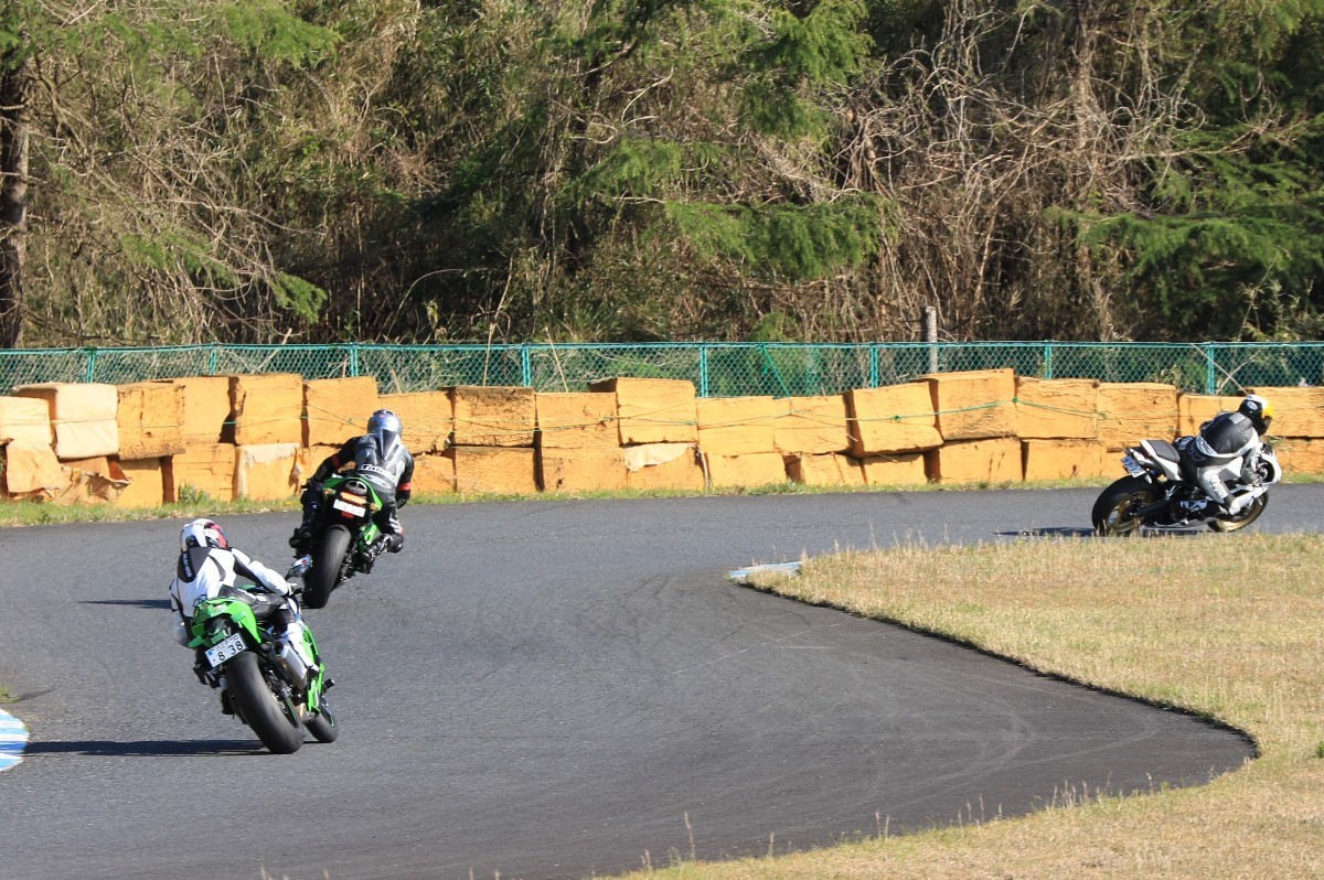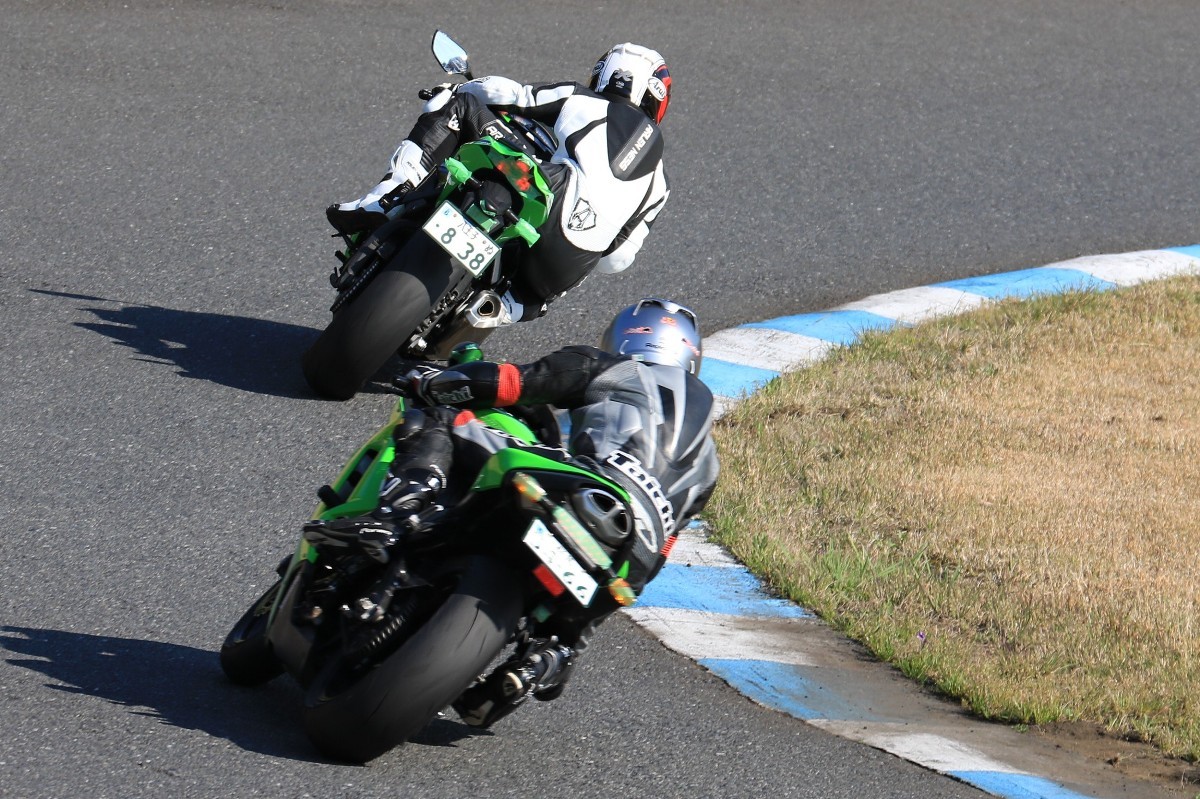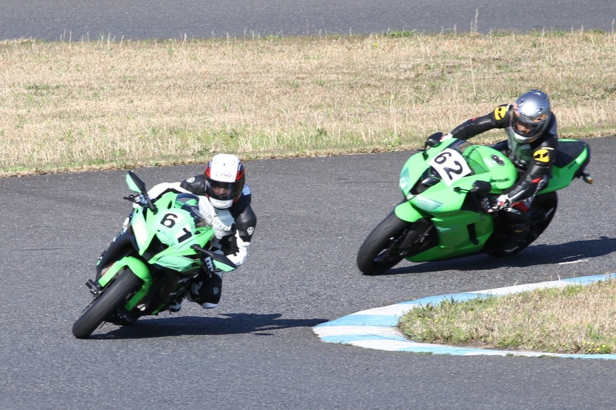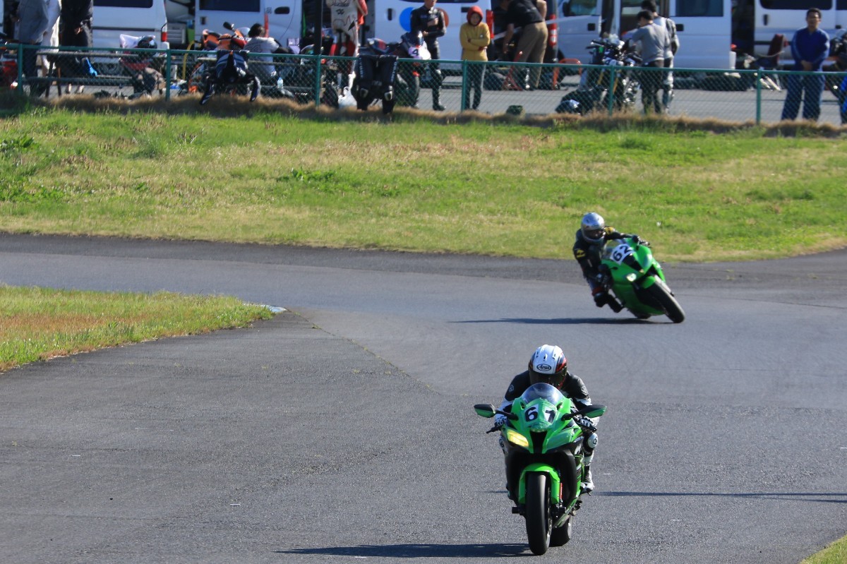 2番手へと浮上した。ポールポジションスタートの八木ZX6Rは外へ追いやられる格好。