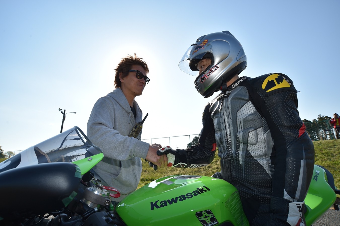 それからマシンをZX6Rに変更し、レーシングスーツも現在のタイチへ。都合13ヶ月目で初優勝をものにした。