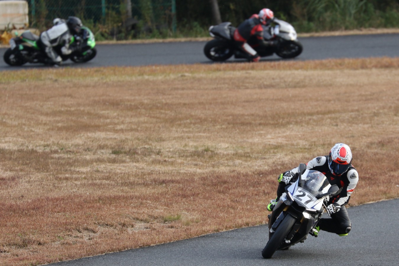 ファーストラップをクリア。#27妹尾がややリードを拡げる。