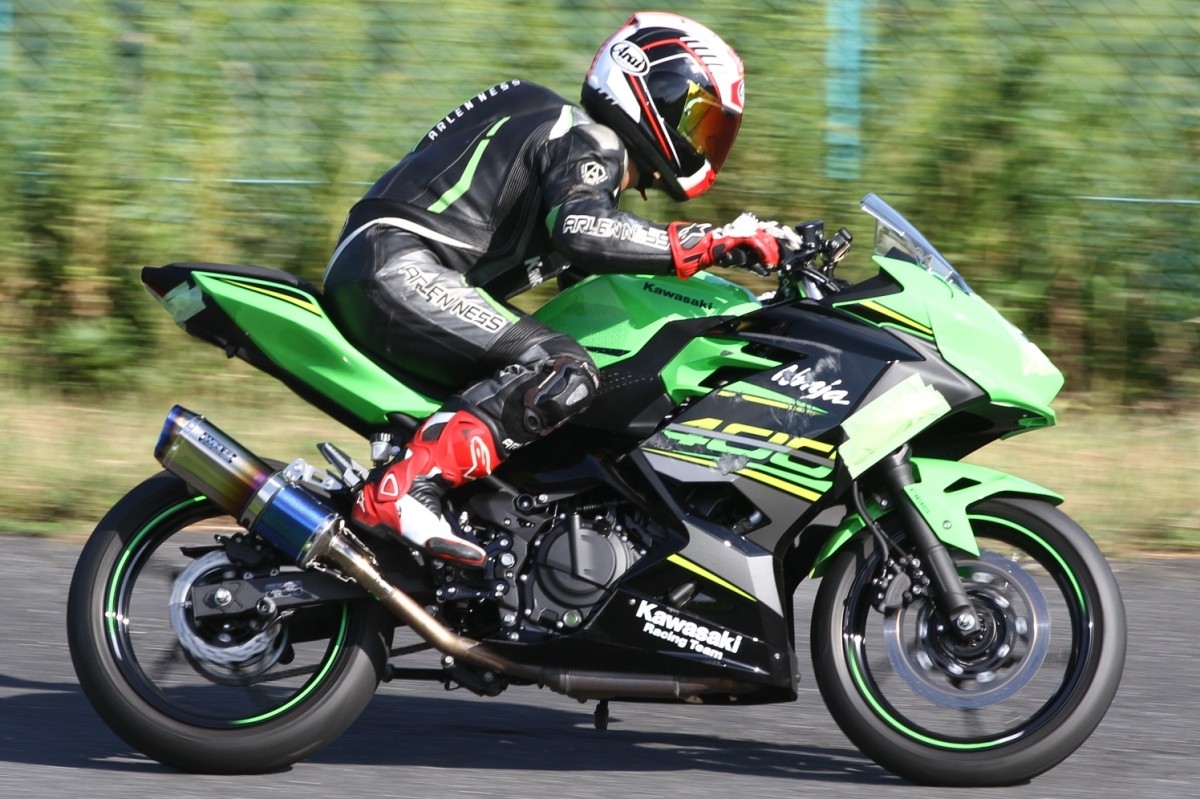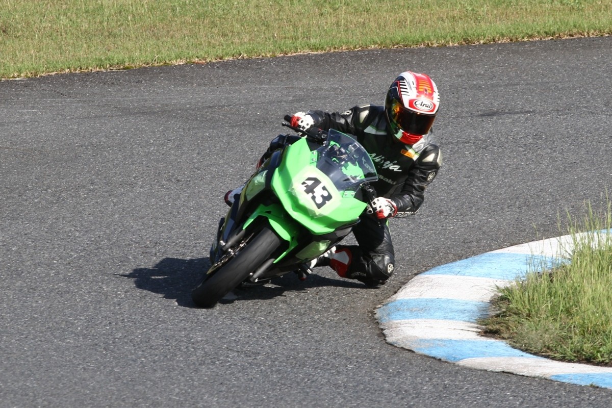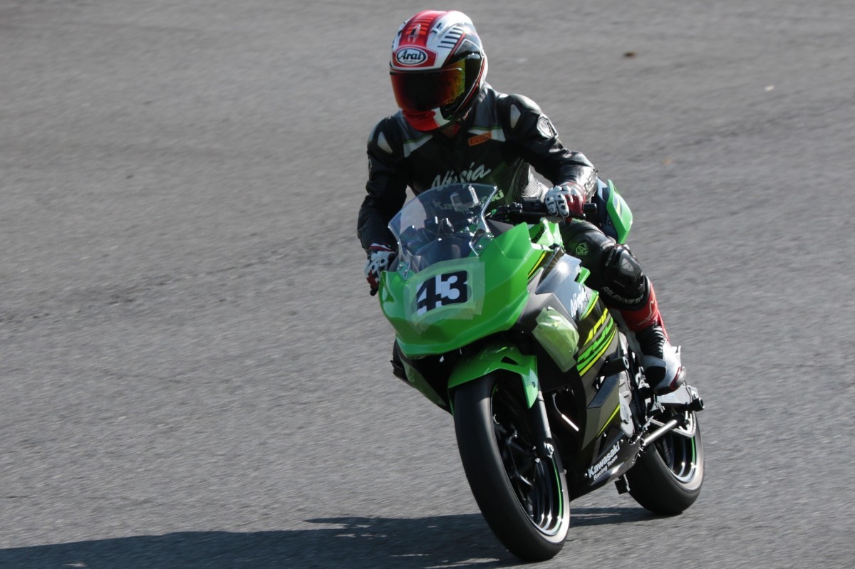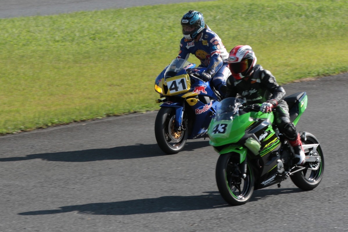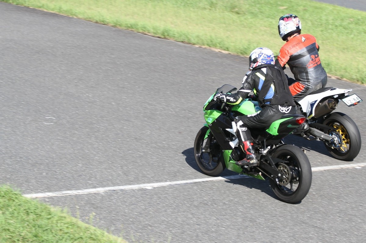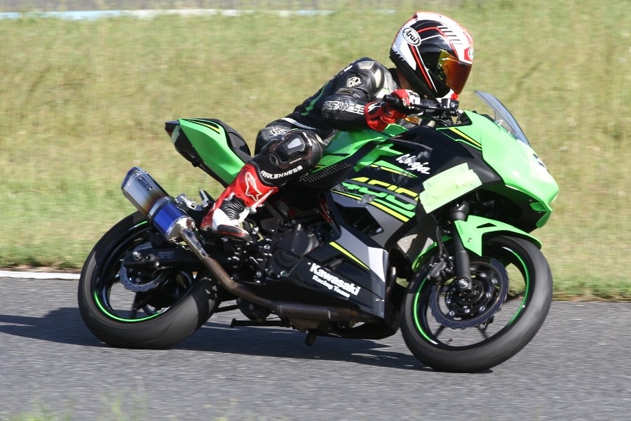 今年7月、それまでのZX10RからNinja400に乗り換え、好調の吉田。参加毎にフリー走行の周回数も増えている印象で、疲労の少ないマシンのようだ。