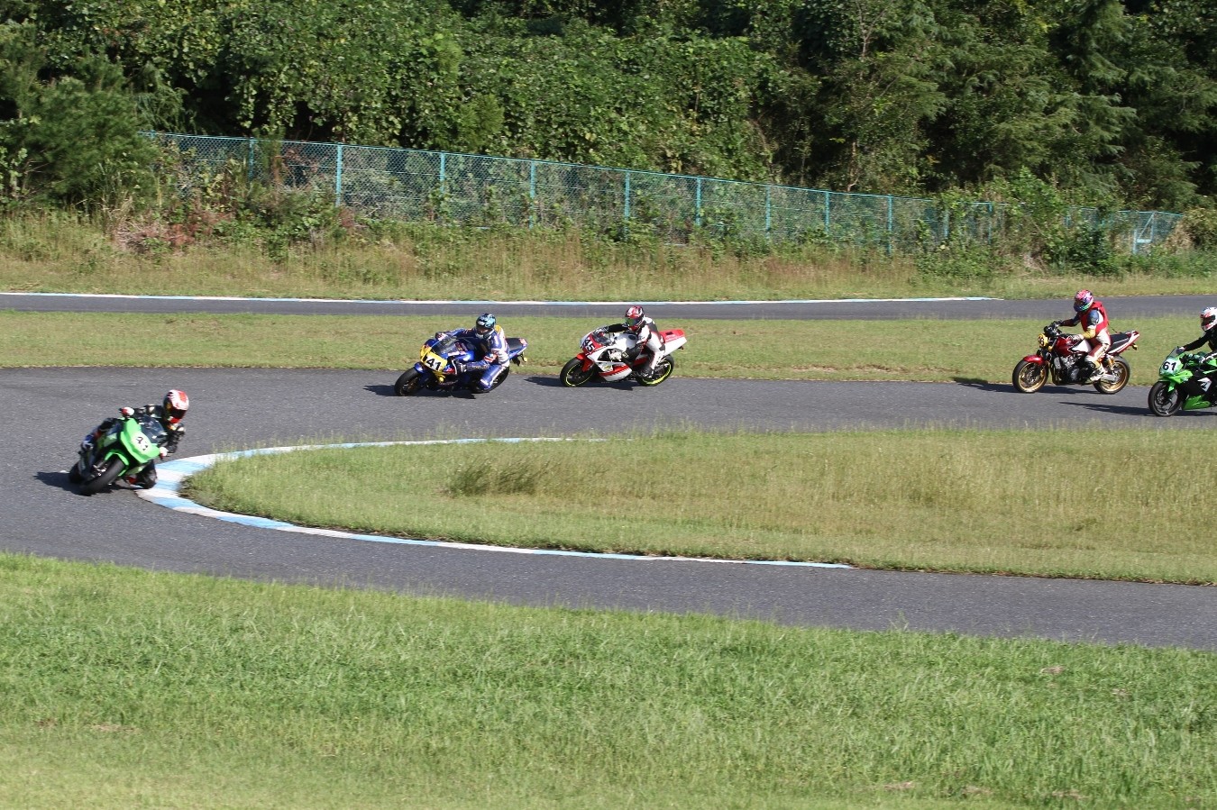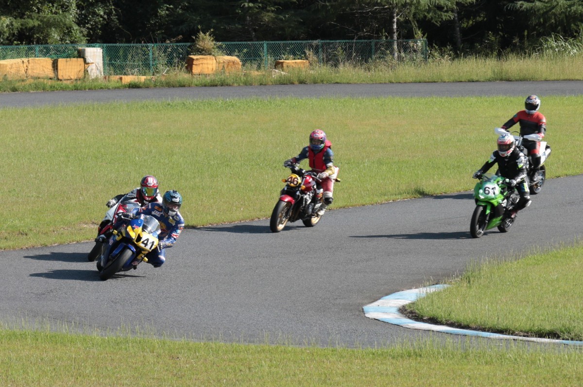 しかしベストタイムで勝る#41西村が、これを追う。すぐ背後に唯一の2サイクルマシン、喜多TZR250R。