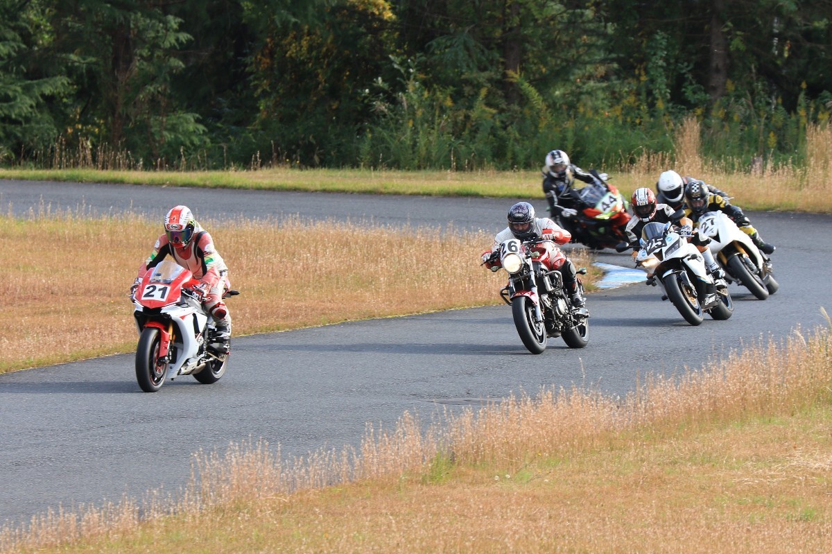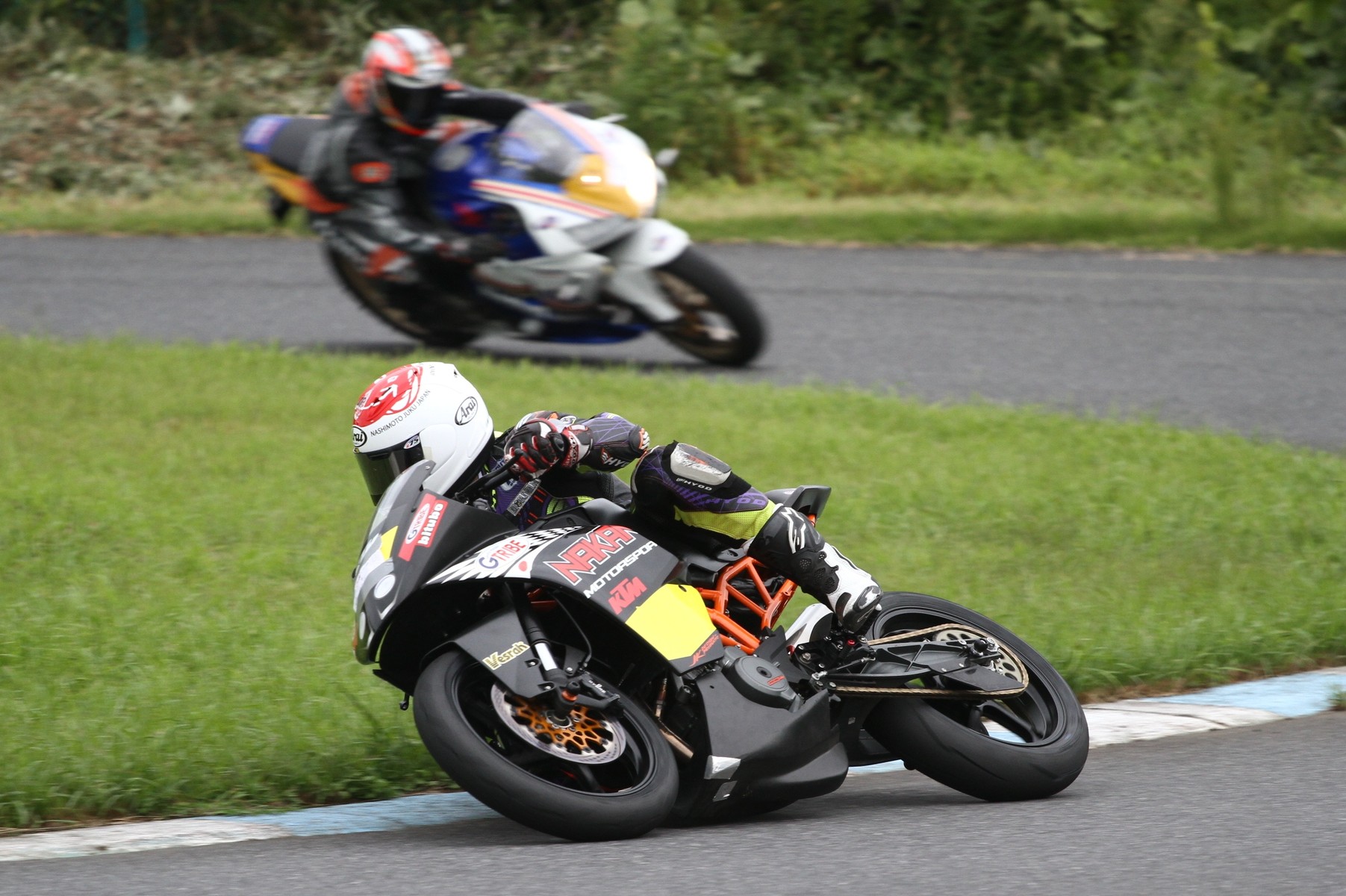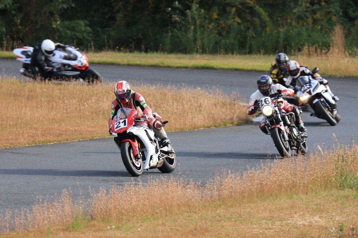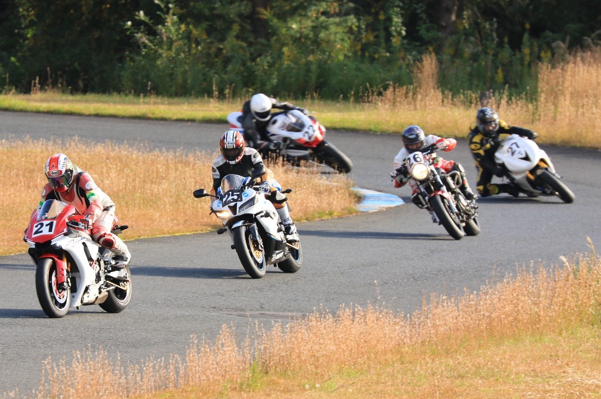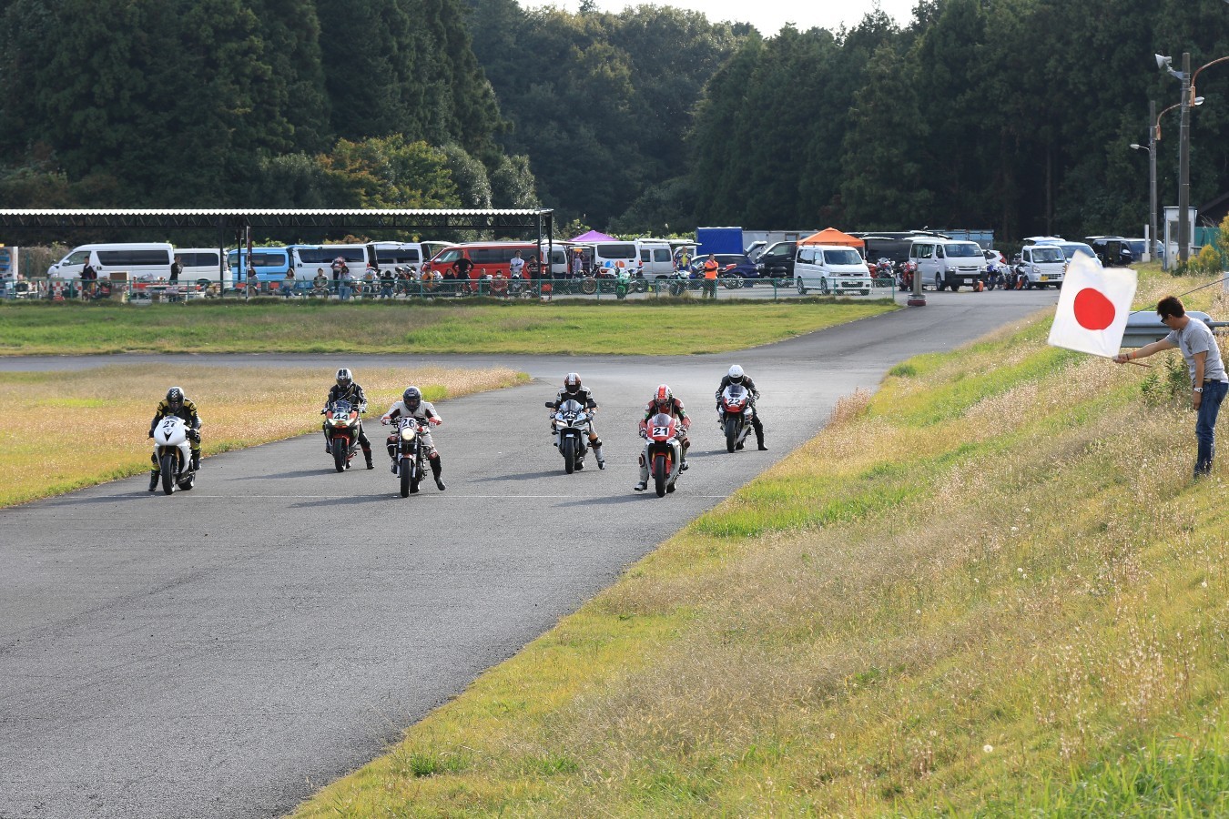 そのままホールショットを奪う。2番手には高坂SV650、3番手には二列目からジャンプアップした富永CBR600RR、4番手に川畑デイトナ675R、5番手に田口GSXR1000、6番手に嶋村Ninja400と続く。