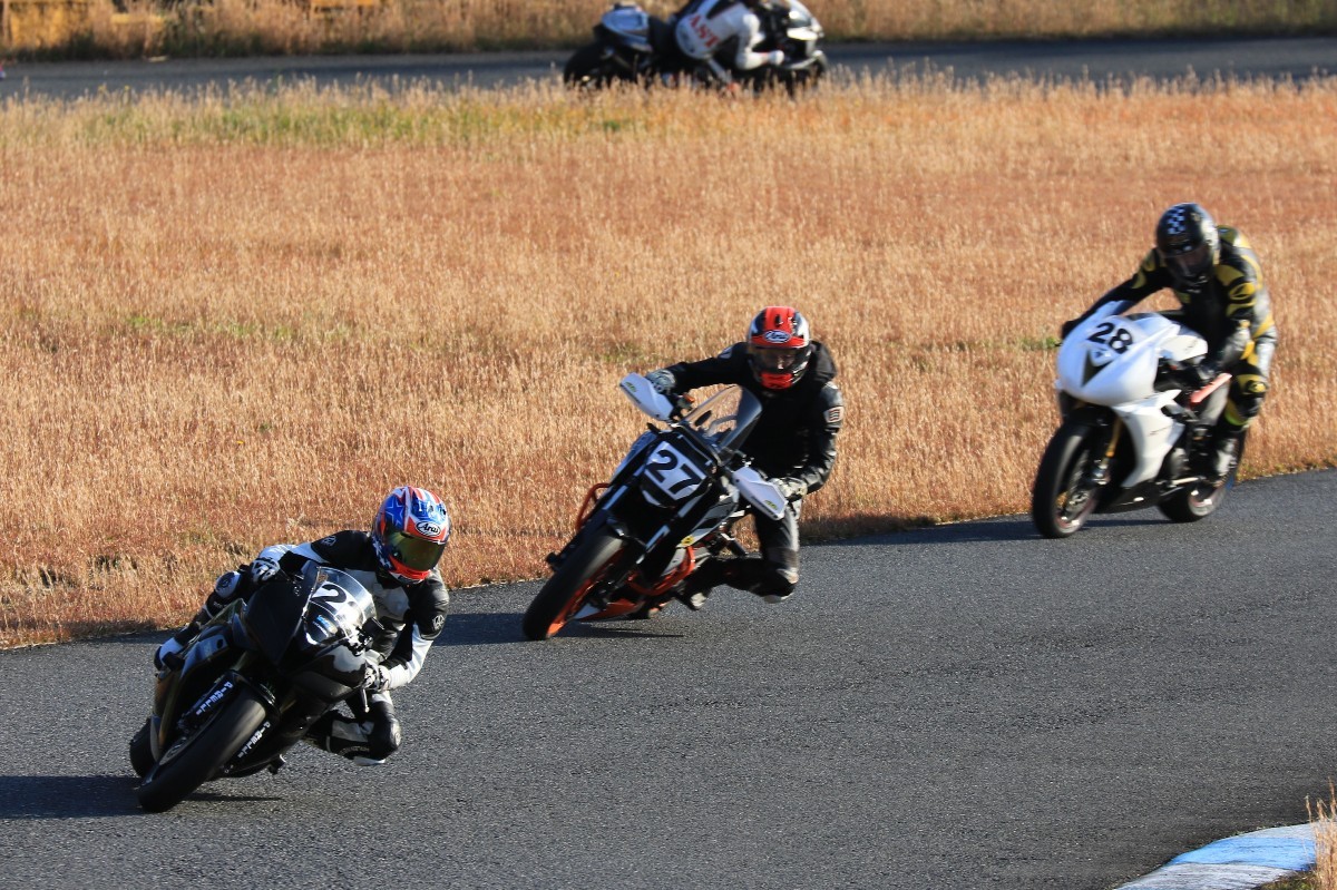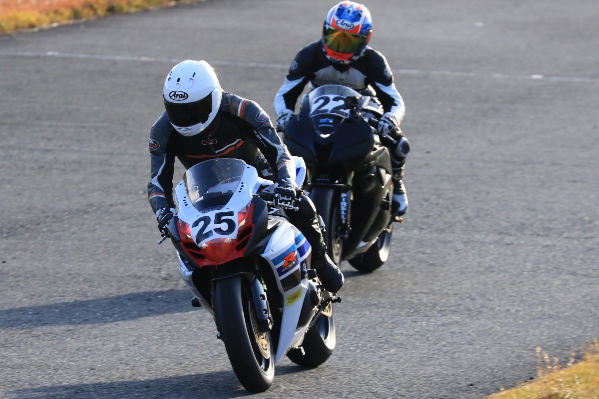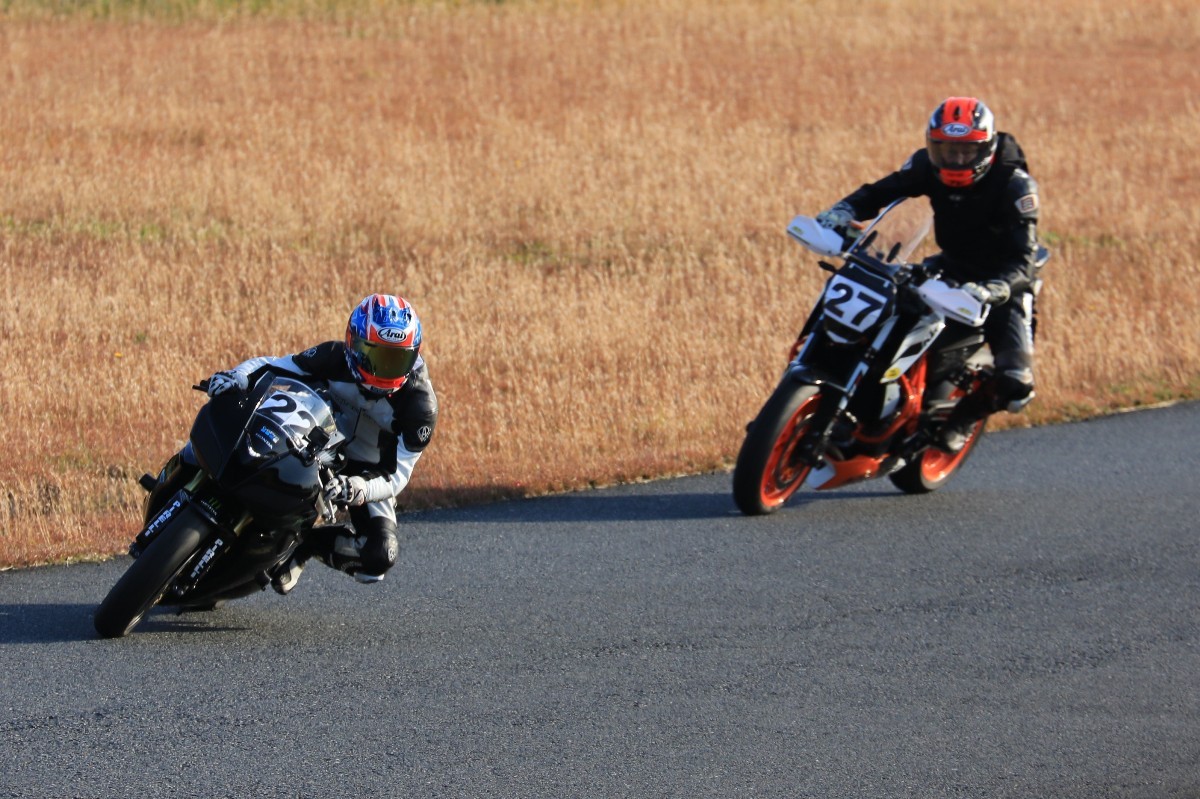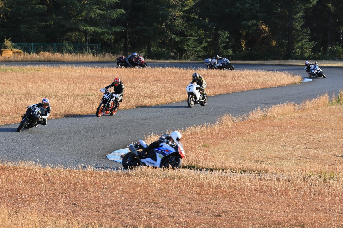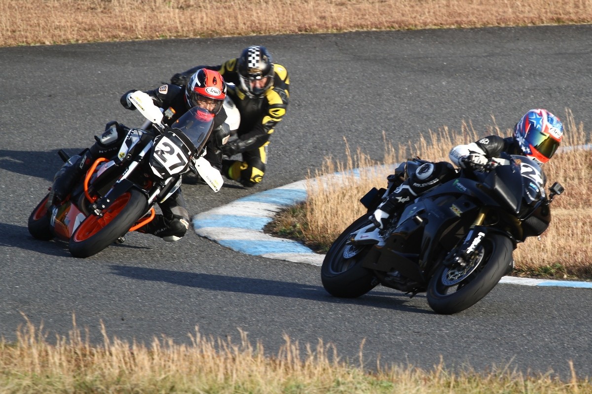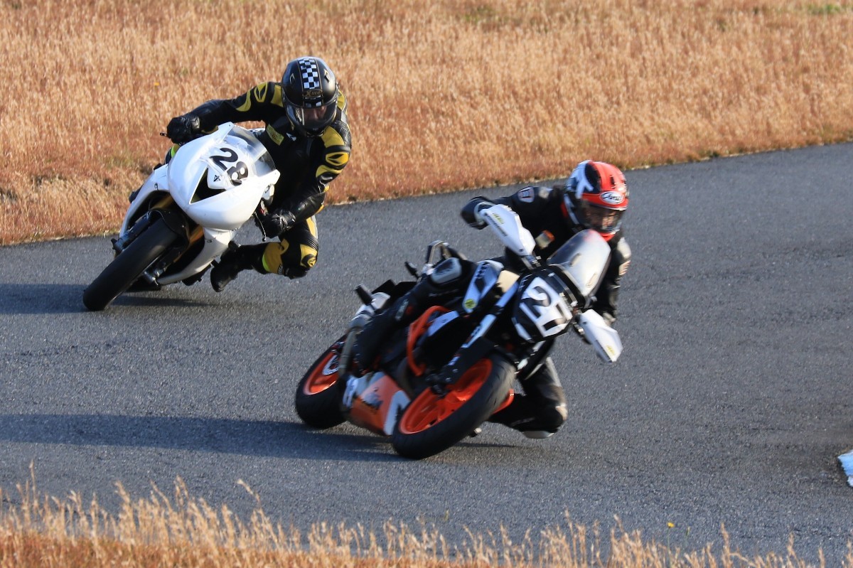 ホールショットを奪ったのは3番手から出た田口GSXR1000。2番手には松貝CBR600RR、3番手に坂平690DUKE R、4番手に川畑デイトナ675R、5番手に富永CBR600RR、6番手に渡辺GSXR1000と続く。