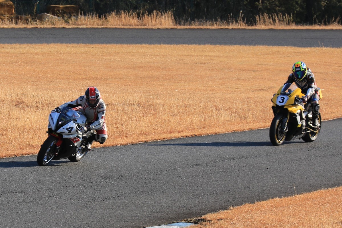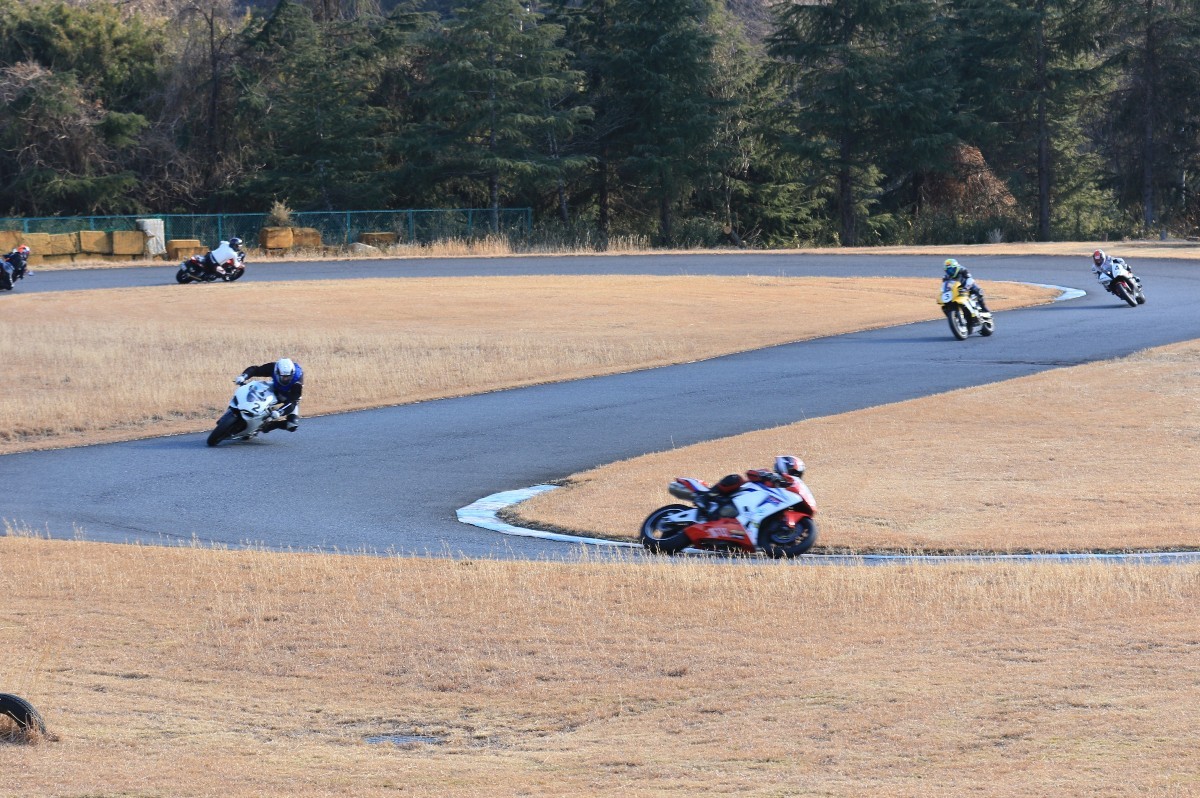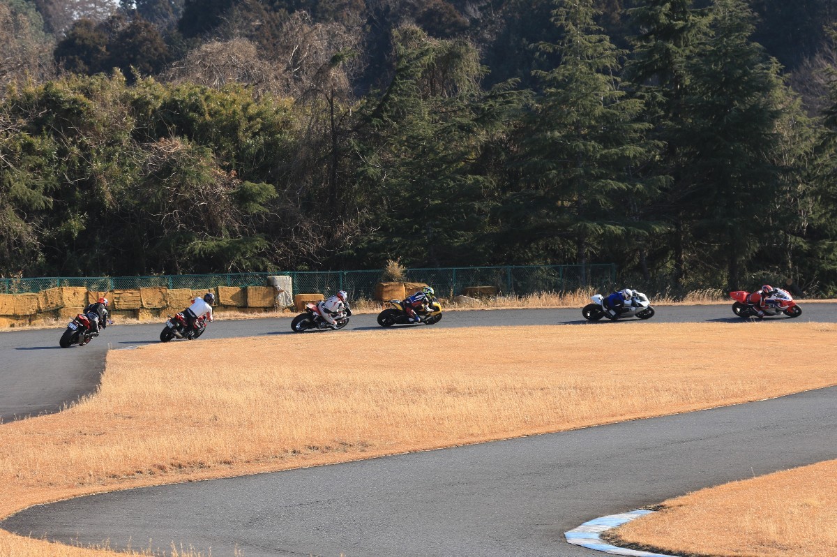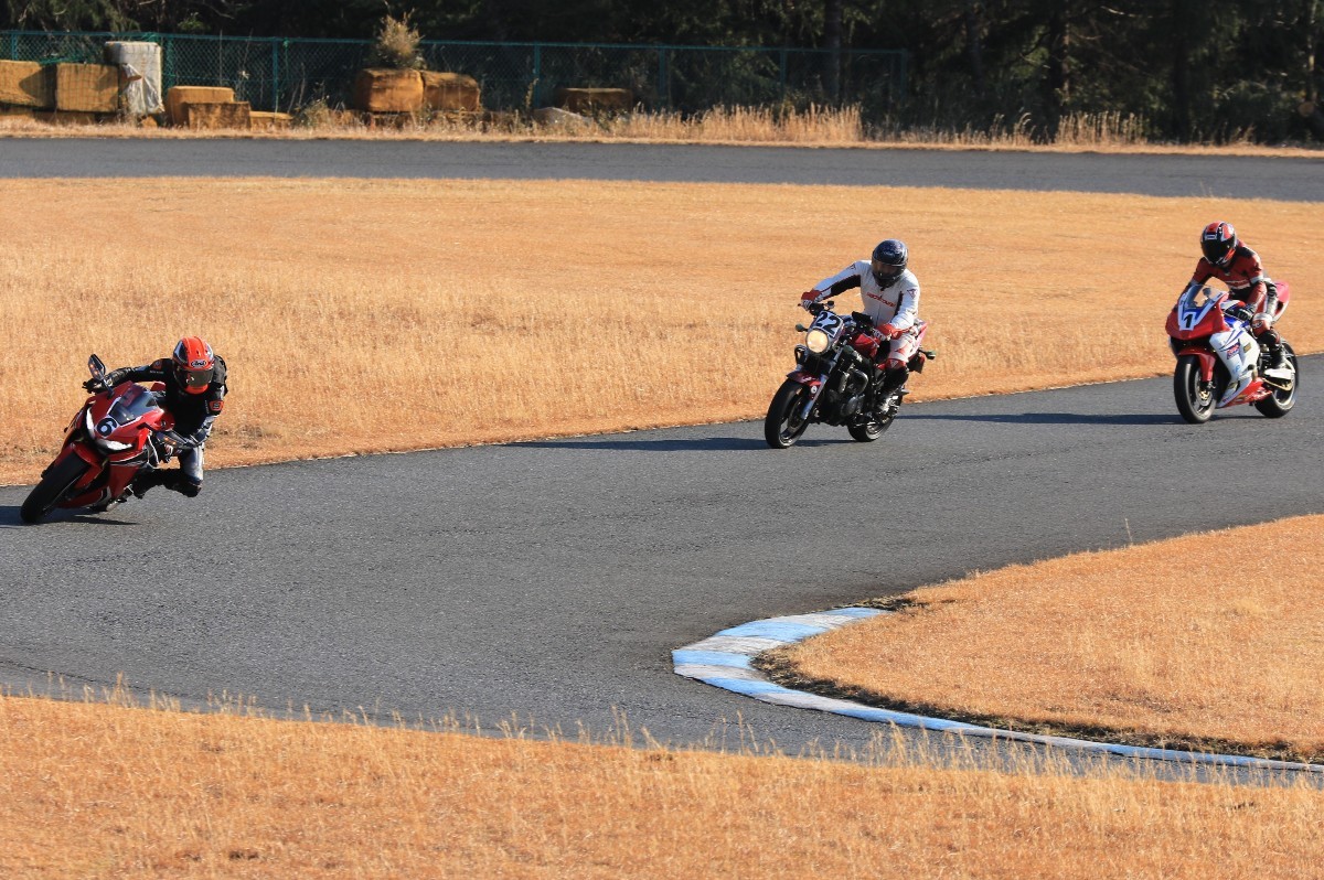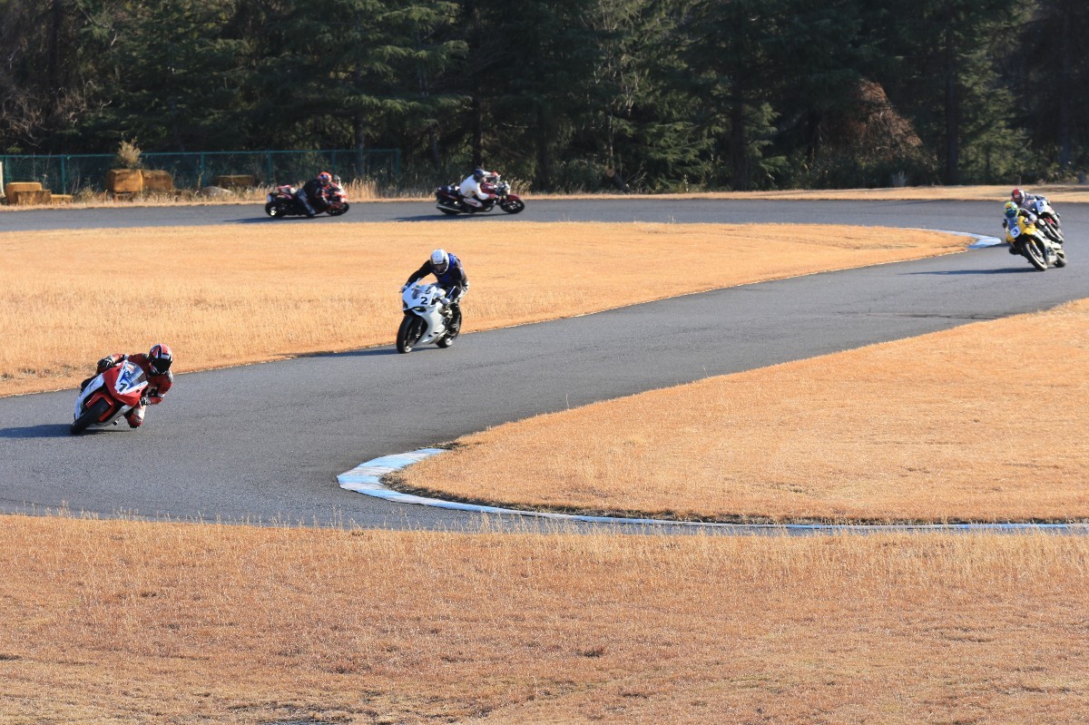 2番手に柴899パニガーレ、3番手に駒澤R1M、4番手に片岡R6、5番手に初めてのAクラス出走となった高坂SV650、6番手に鈴木CBR1000RRと続く。