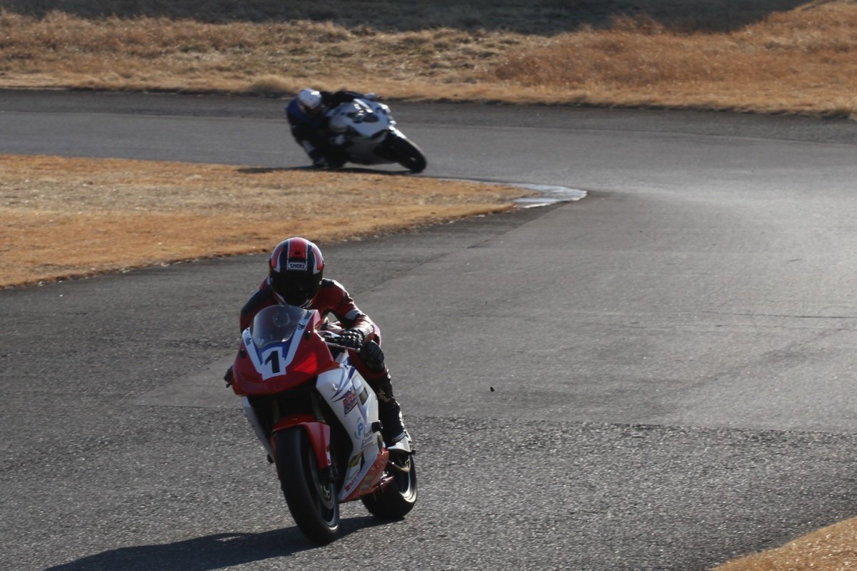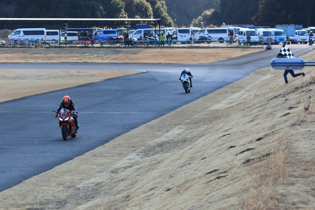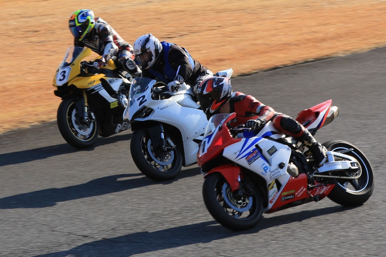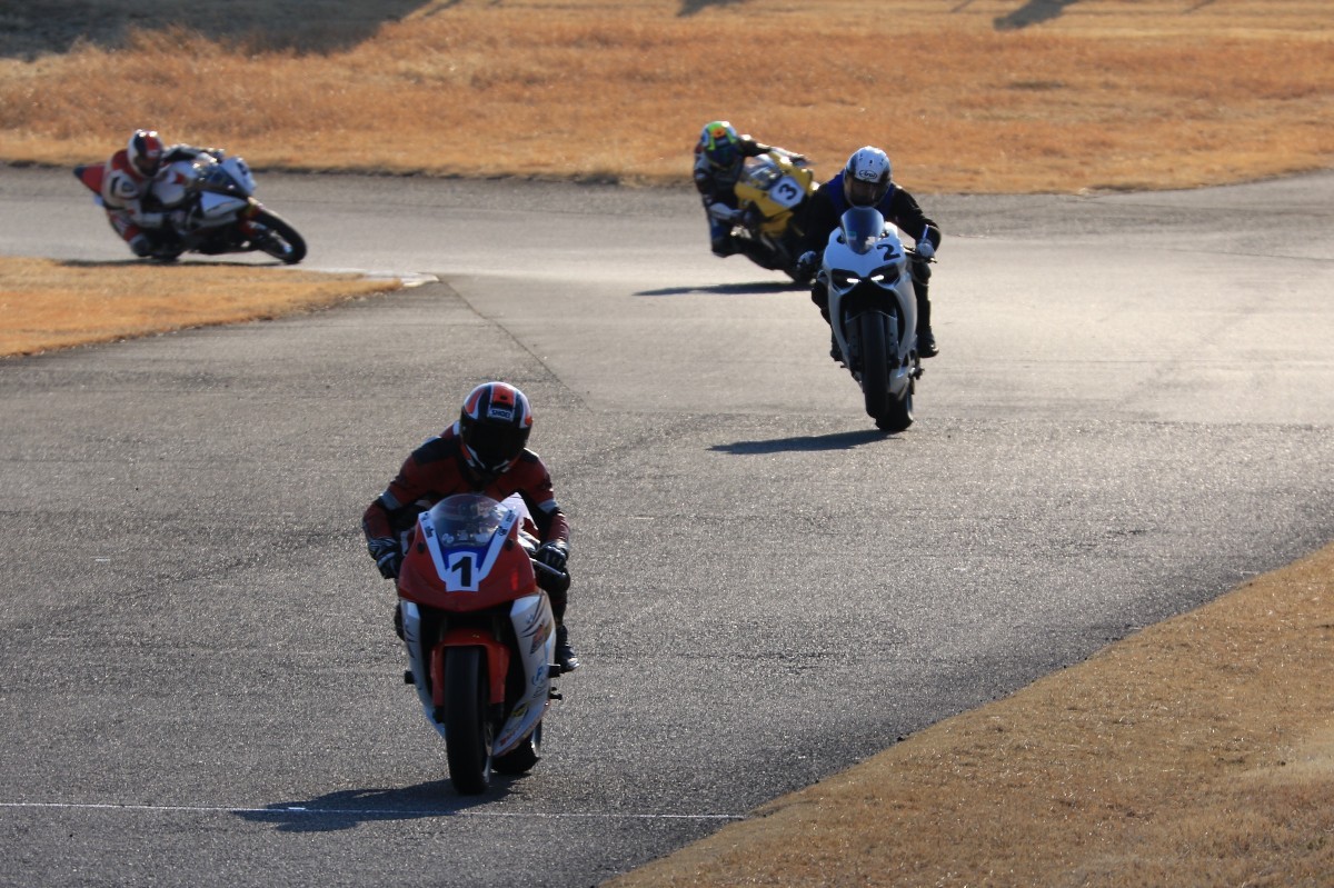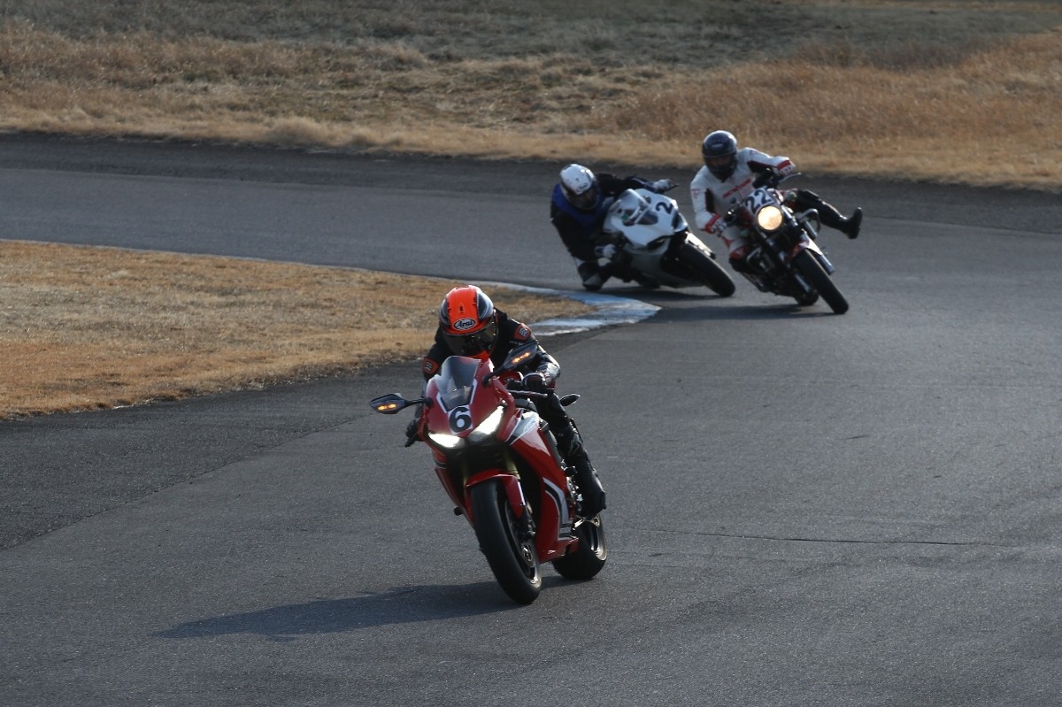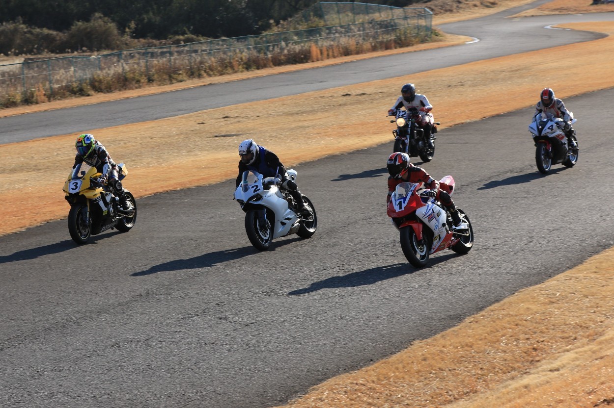2番手に柴899パニガーレ、3番手に駒澤R1M、4番手に片岡R6、5番手に初めてのAクラス出走となった高坂SV650、6番手に鈴木CBR1000RRと続く。