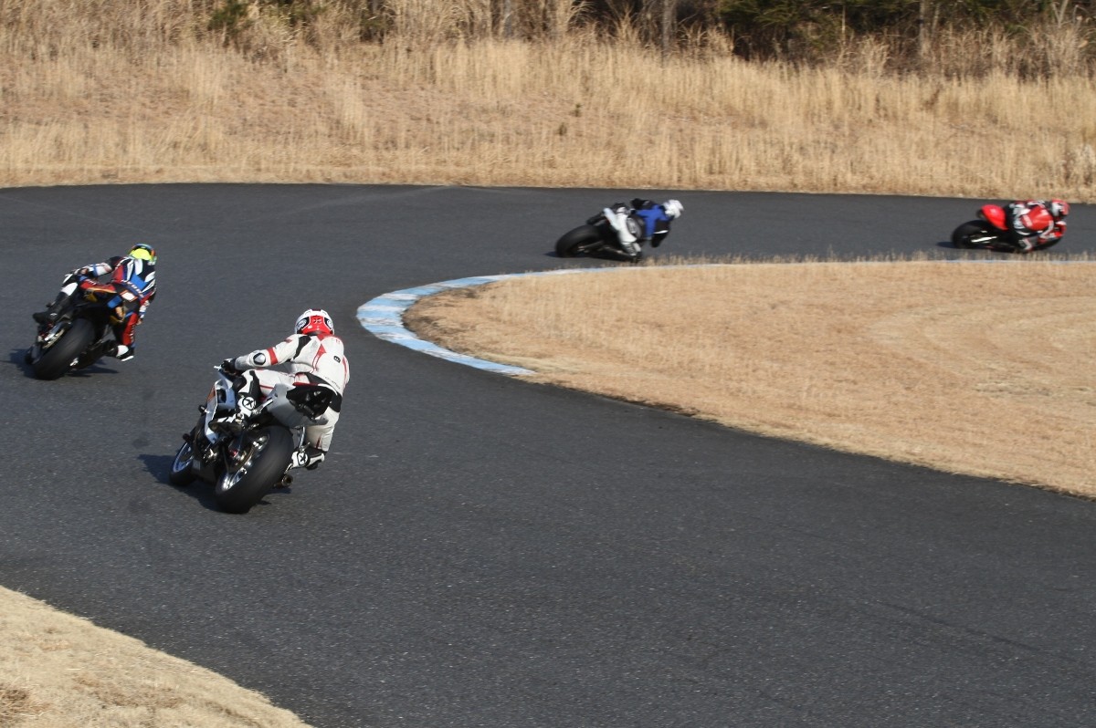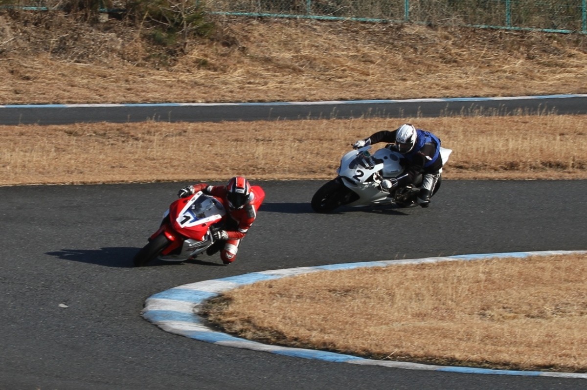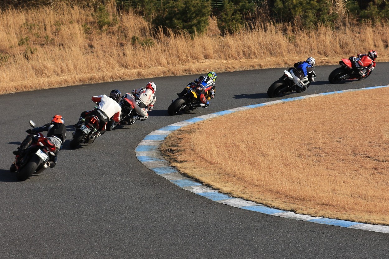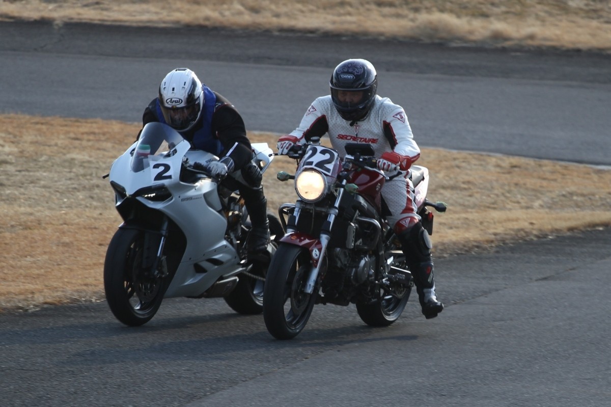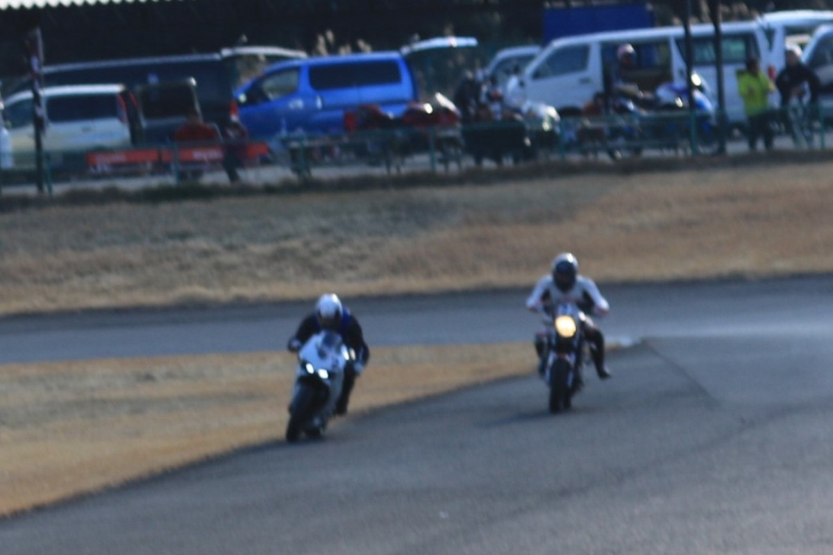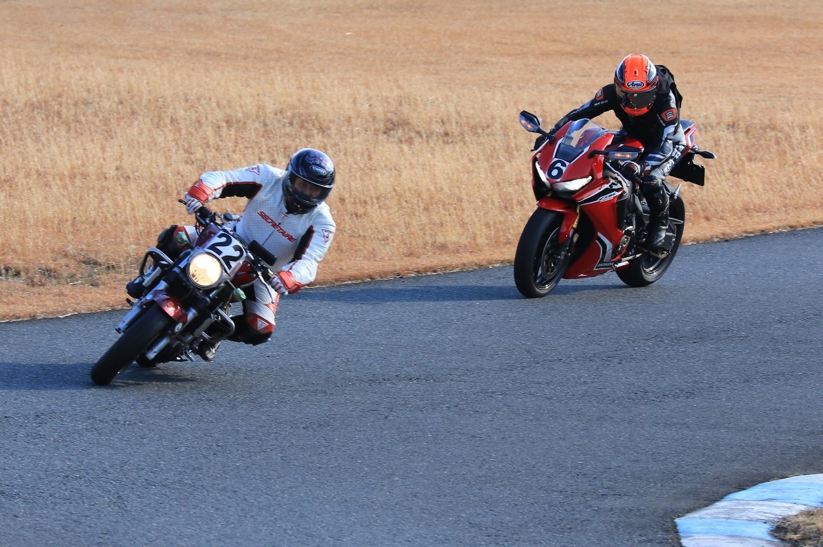 2番手に柴899パニガーレ、3番手に駒澤R1M、4番手に片岡R6、5番手に初めてのAクラス出走となった高坂SV650、6番手に鈴木CBR1000RRと続く。