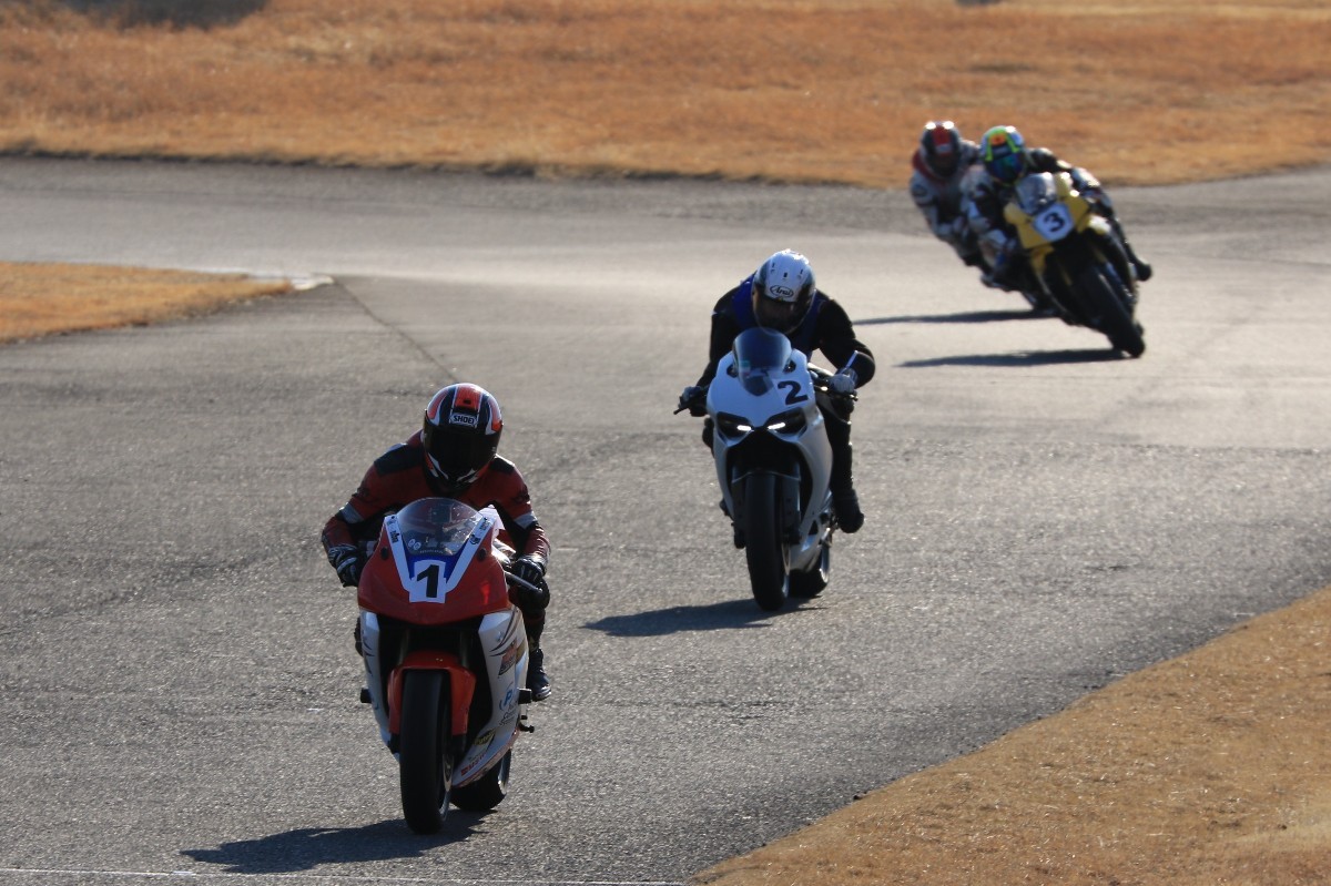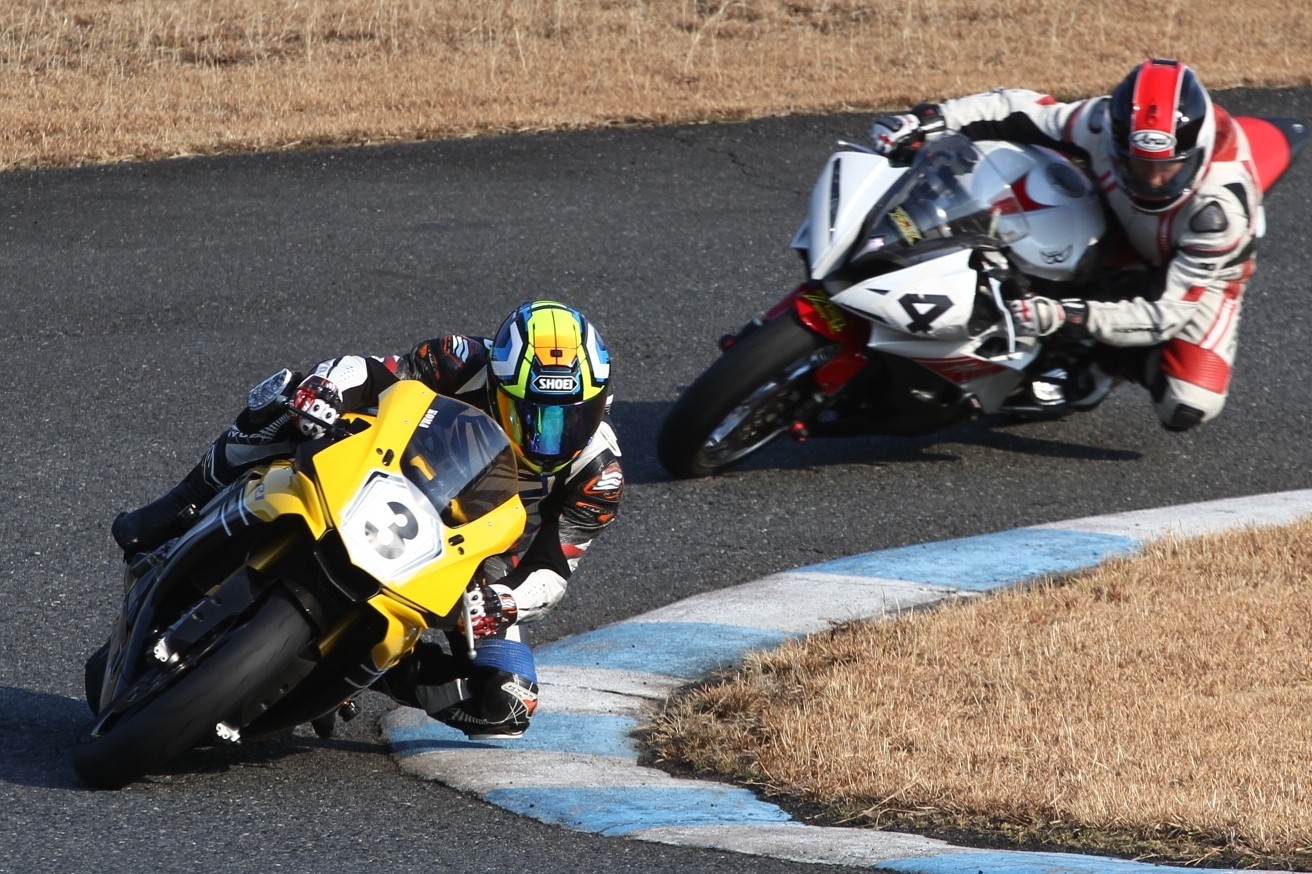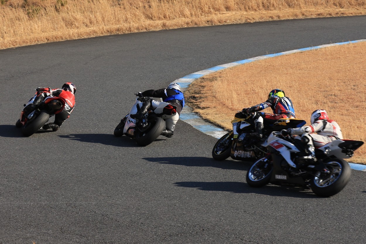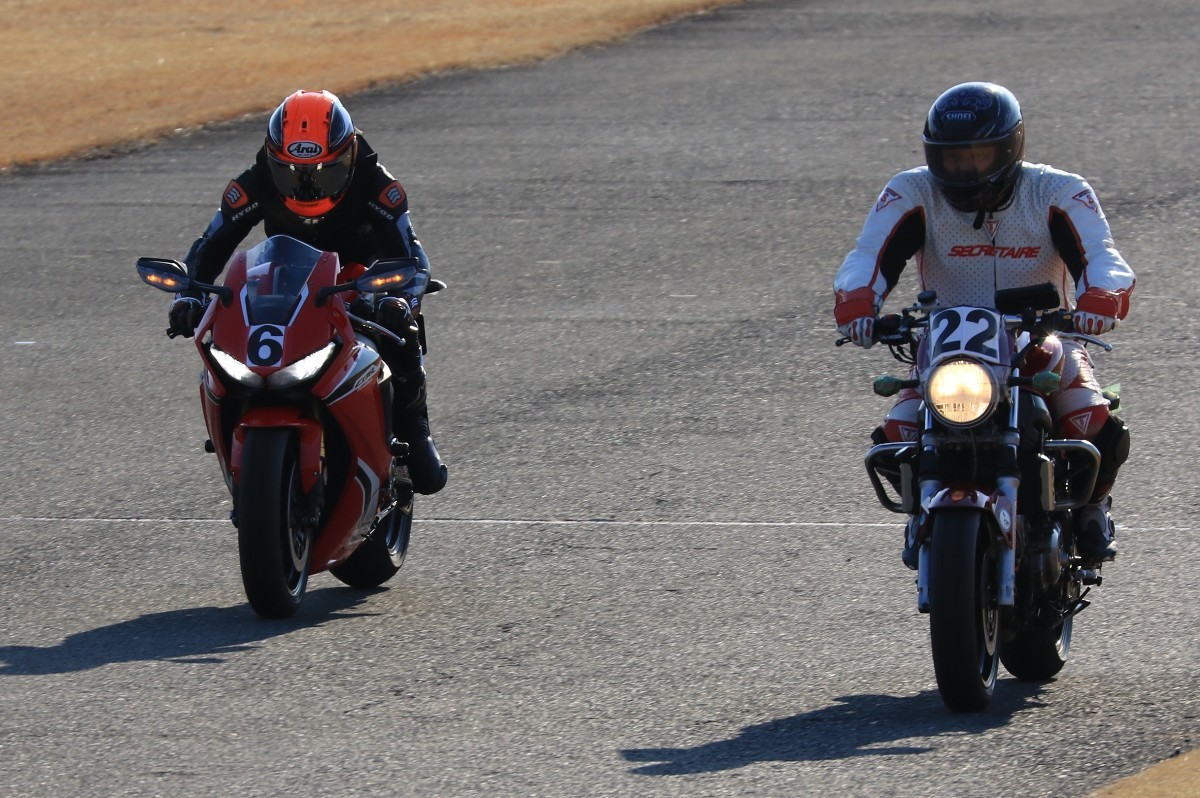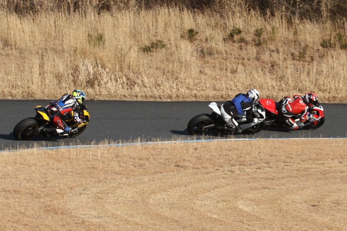 2番手に柴899パニガーレ、3番手に駒澤R1M、4番手に片岡R6、5番手に初めてのAクラス出走となった高坂SV650、6番手に鈴木CBR1000RRと続く。