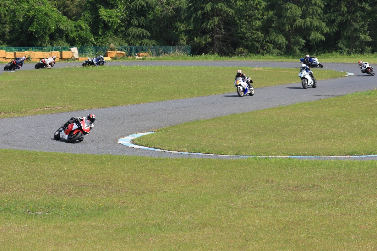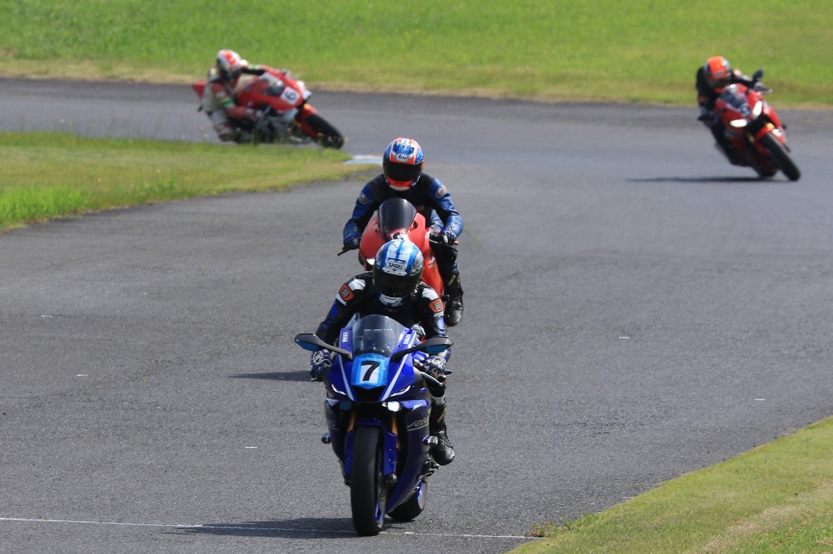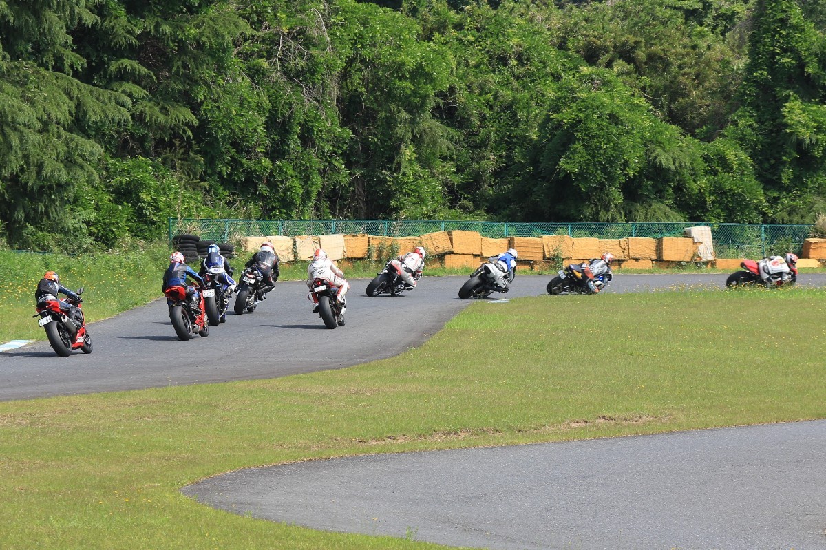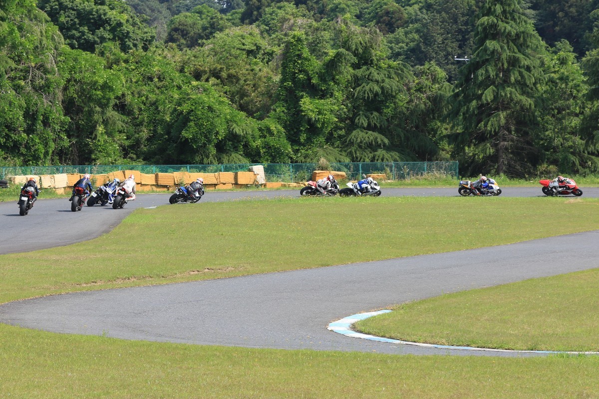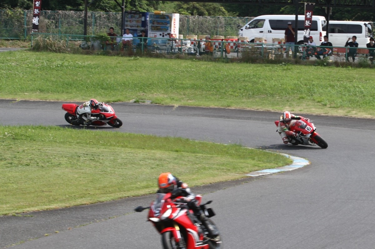 5番手に緒方CBR600RR、6番手に濱R6、7番手に磯山R1、8番手に安野1199パニガーレS、9番手に鈴木CBR1000RRと続く。