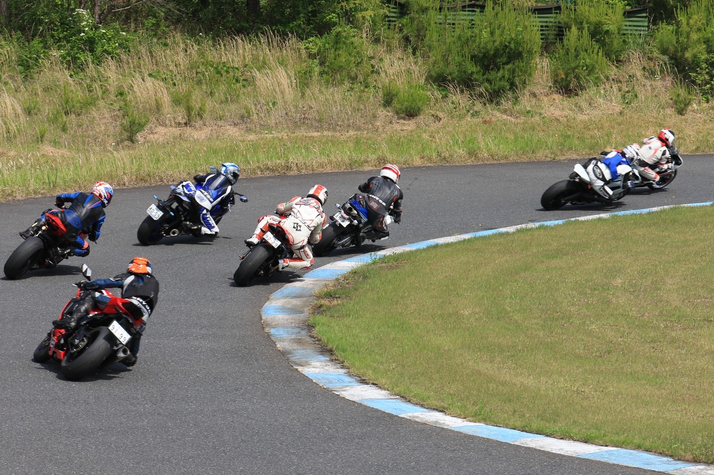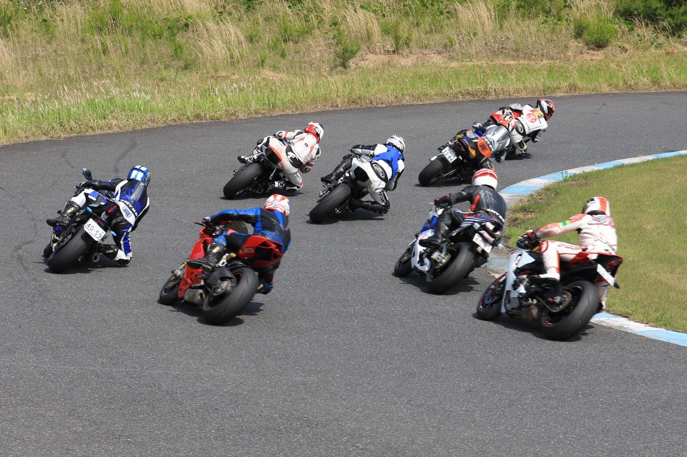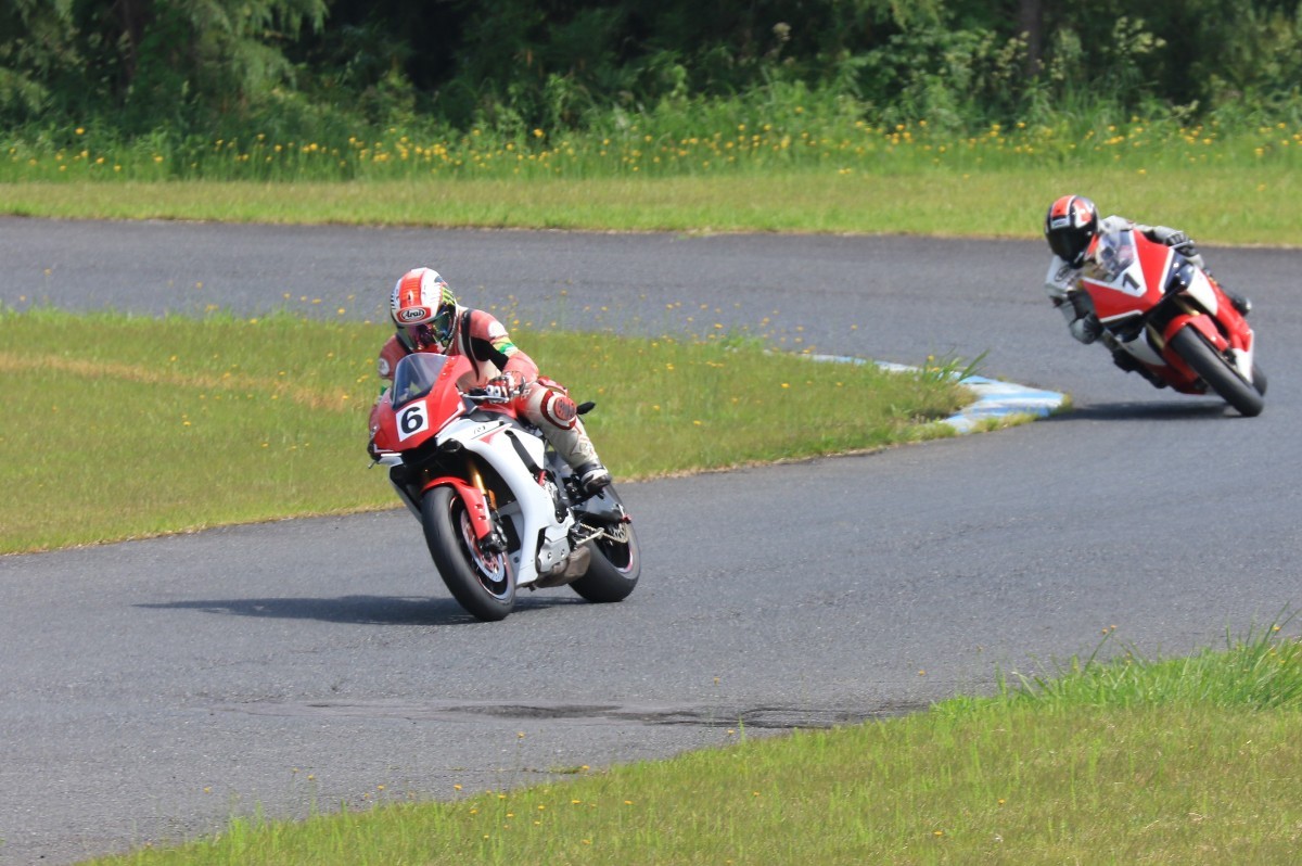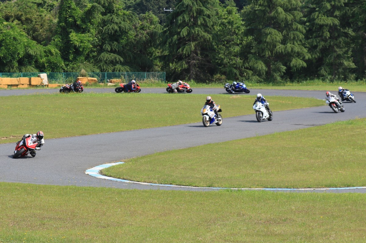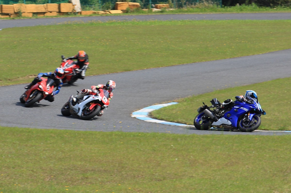 5番手に緒方CBR600RR、6番手に濱R6、7番手に磯山R1、8番手に安野1199パニガーレS、9番手に鈴木CBR1000RRと続く。
