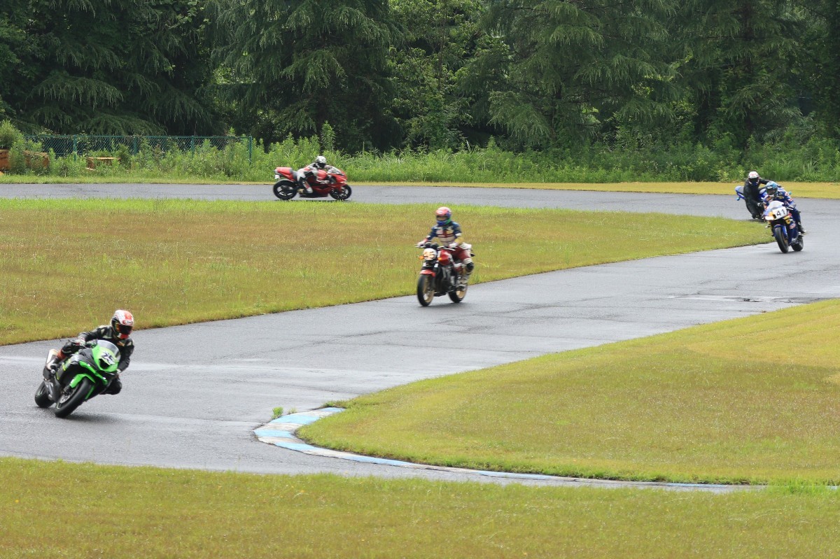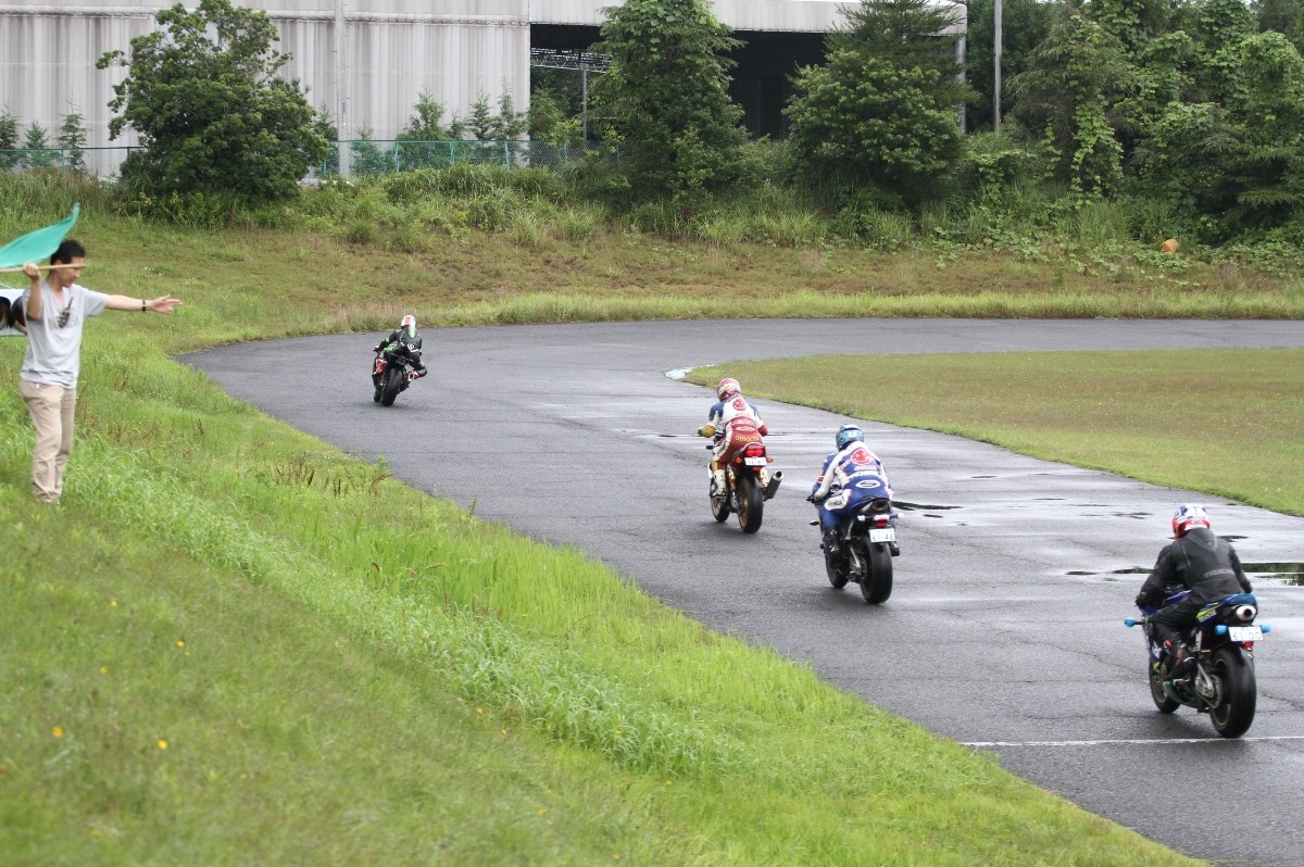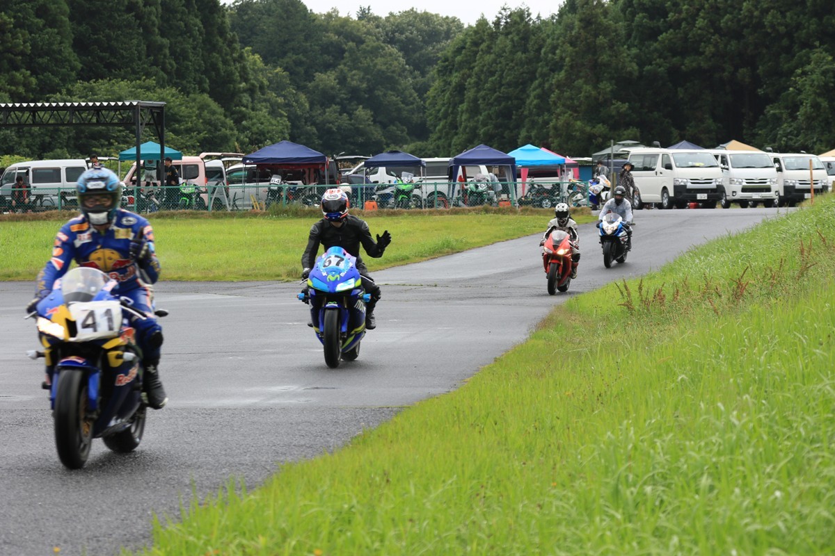 2番手に皆藤CB400SF、3番手に西村CBR600RR、4番手には初参加の高田CBR600RR、5番手には工藤デイトナ675、6番手には山田GSXR1000と続く。