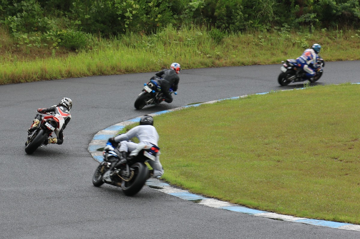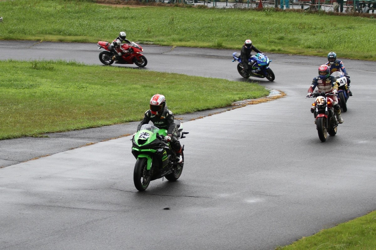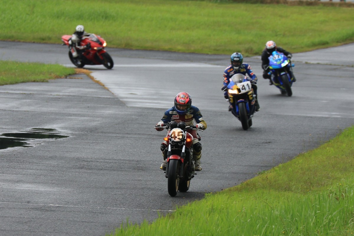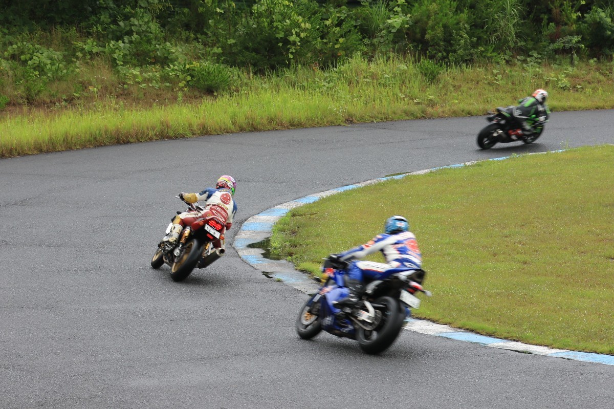 2番手に皆藤CB400SF、3番手に西村CBR600RR、4番手には初参加の高田CBR600RR、5番手には工藤デイトナ675、6番手には山田GSXR1000と続く。
