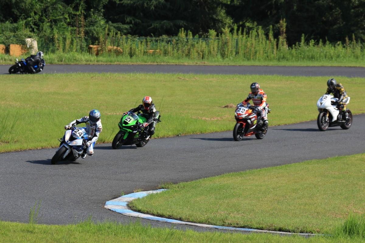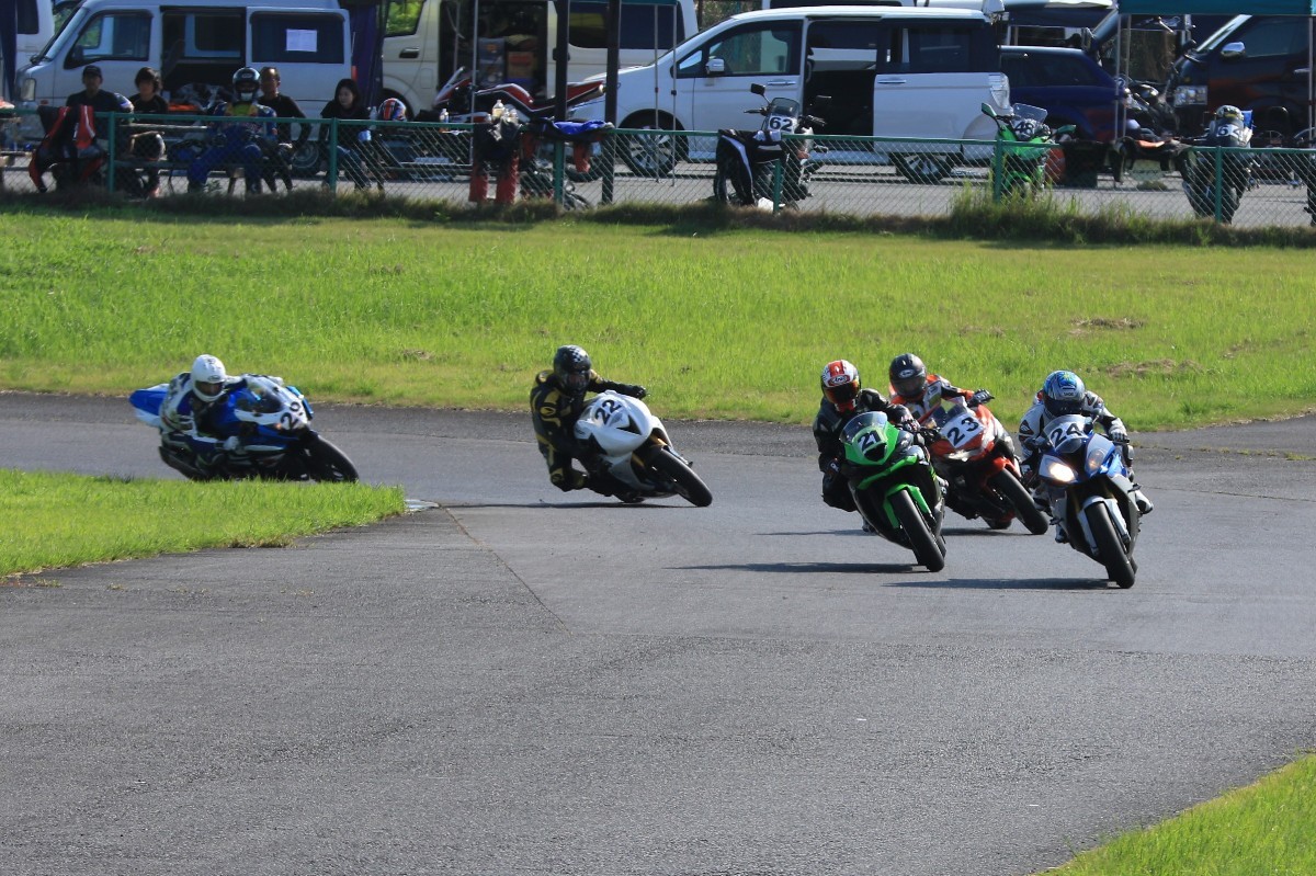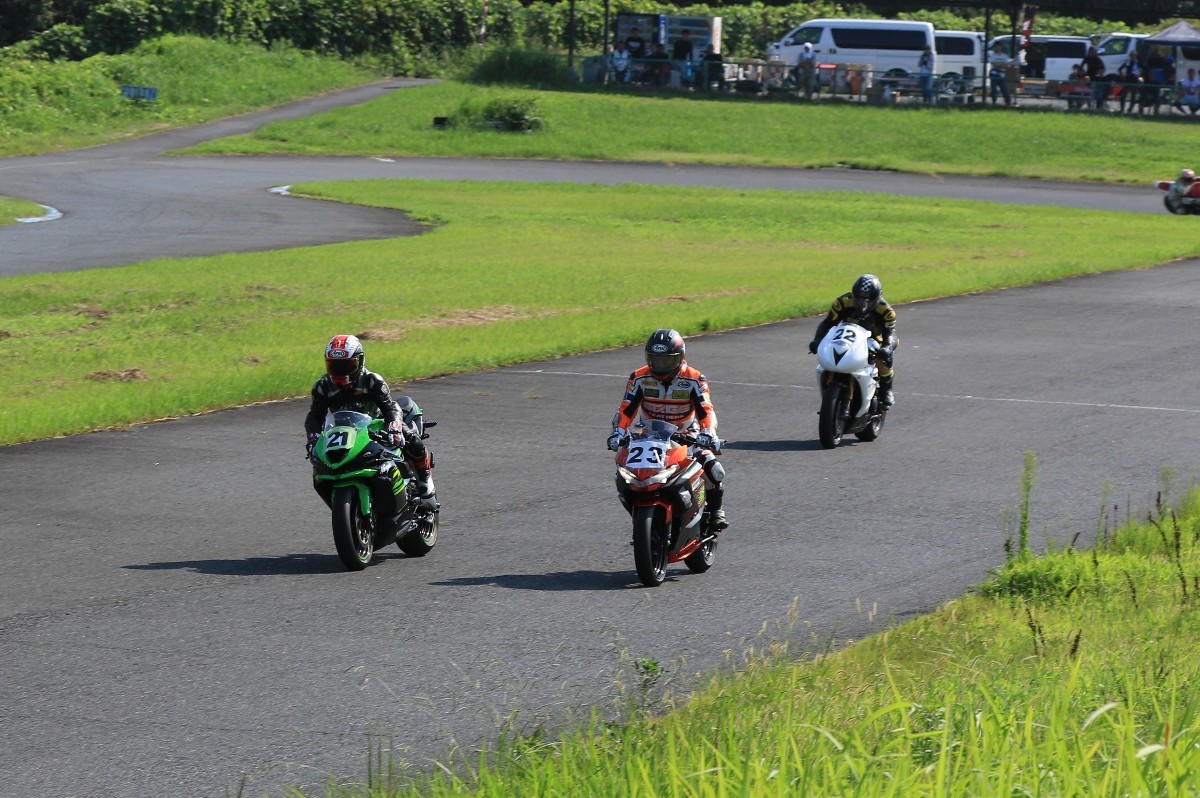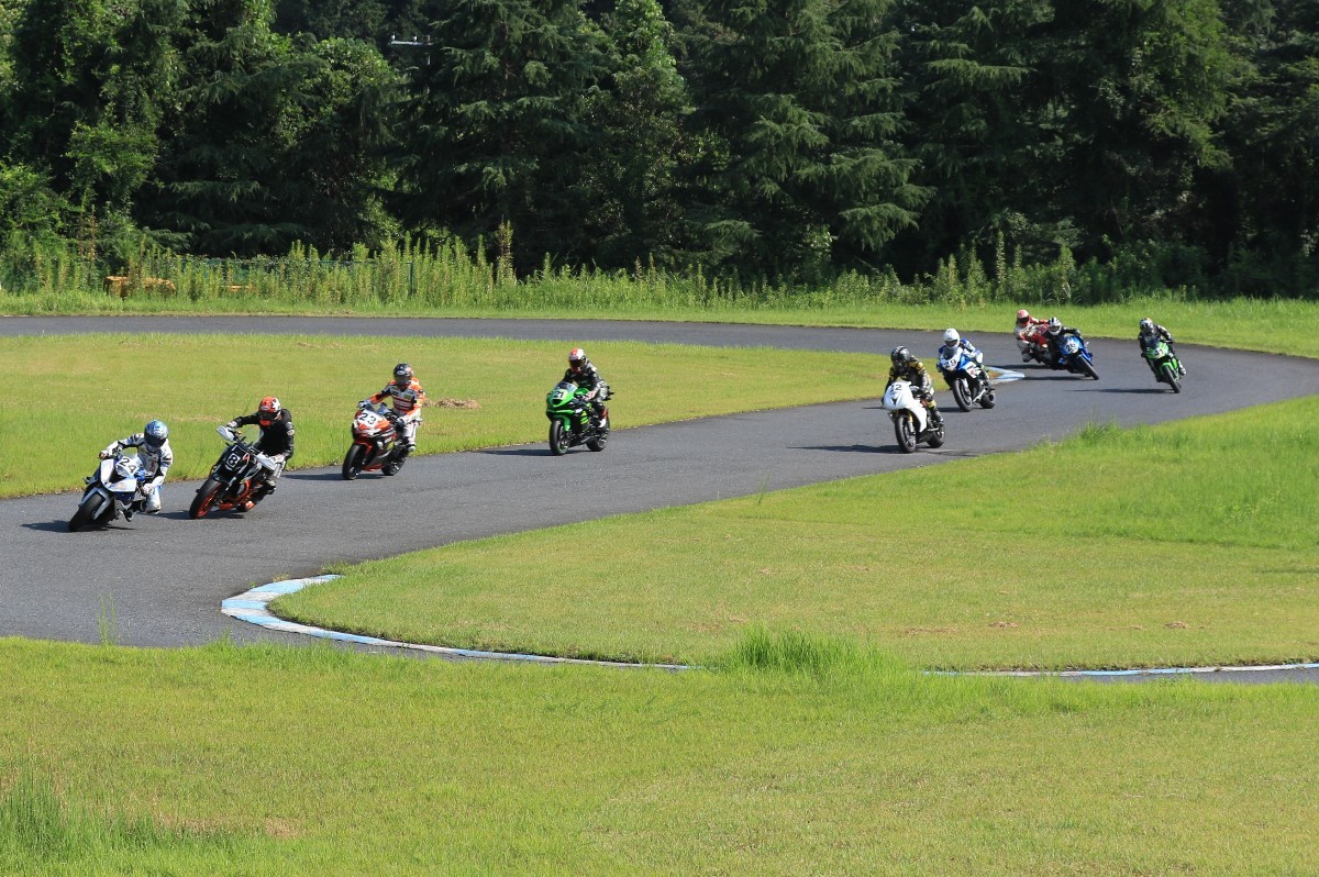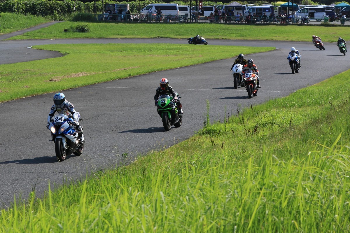 6番手に山田GSXR1000、7番手に慶野Ninja250SL、8番手に田中Ninja250SL、9番手に佐藤CBR600RRと続く。