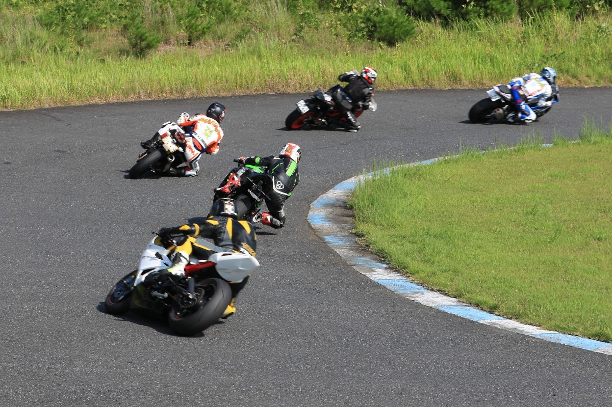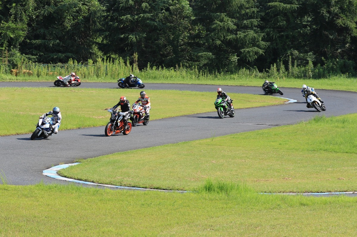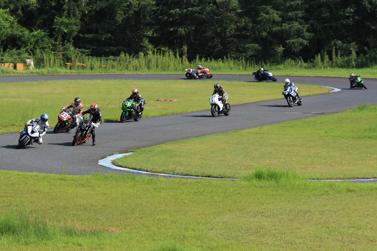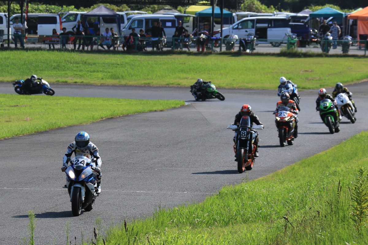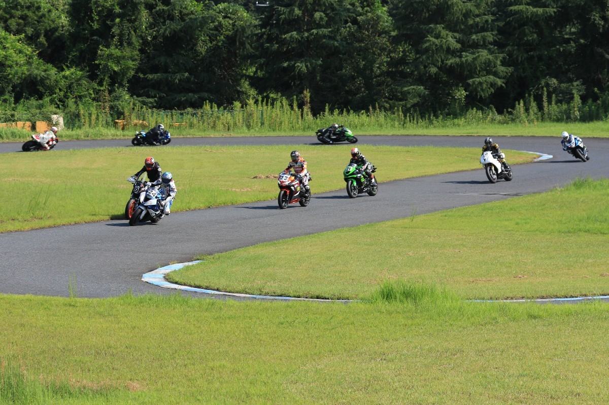 6番手に山田GSXR1000、7番手に慶野Ninja250SL、8番手に田中Ninja250SL、9番手に佐藤CBR600RRと続く。