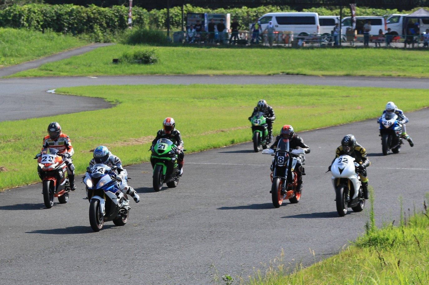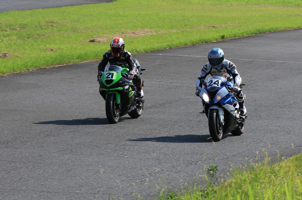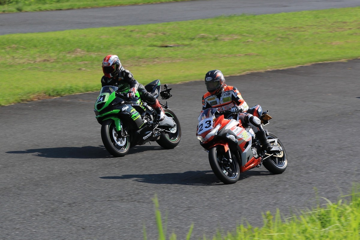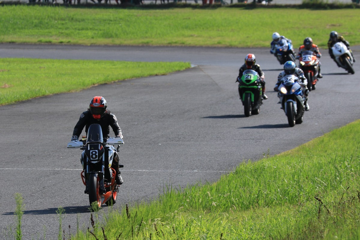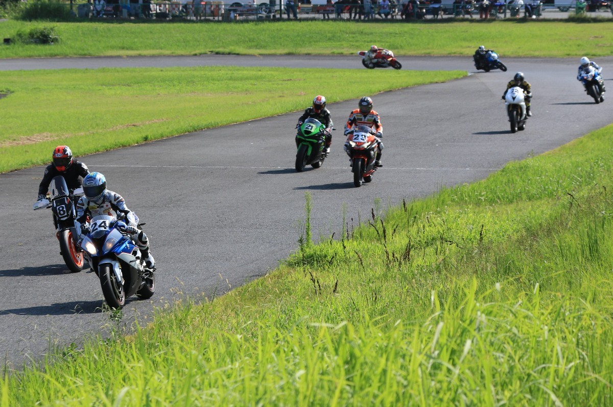 6番手に山田GSXR1000、7番手に慶野Ninja250SL、8番手に田中Ninja250SL、9番手に佐藤CBR600RRと続く。