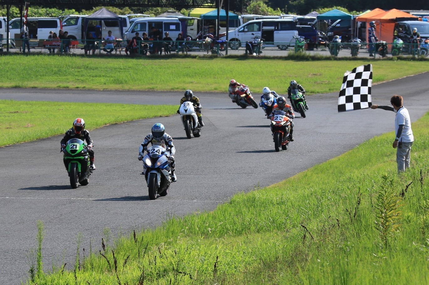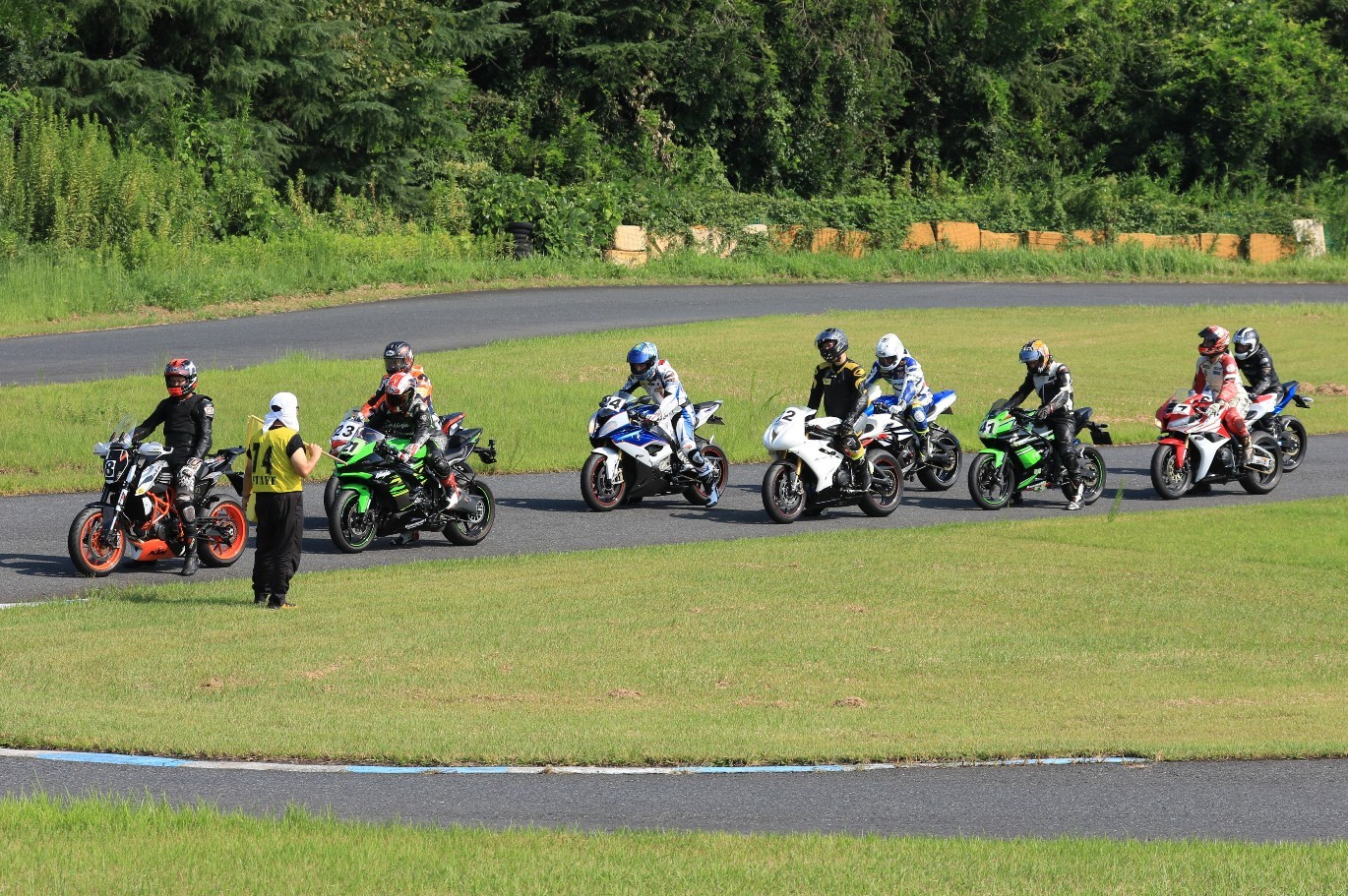 出走全9台中、4台がカワサキ車とBクラスは緑色率高し。