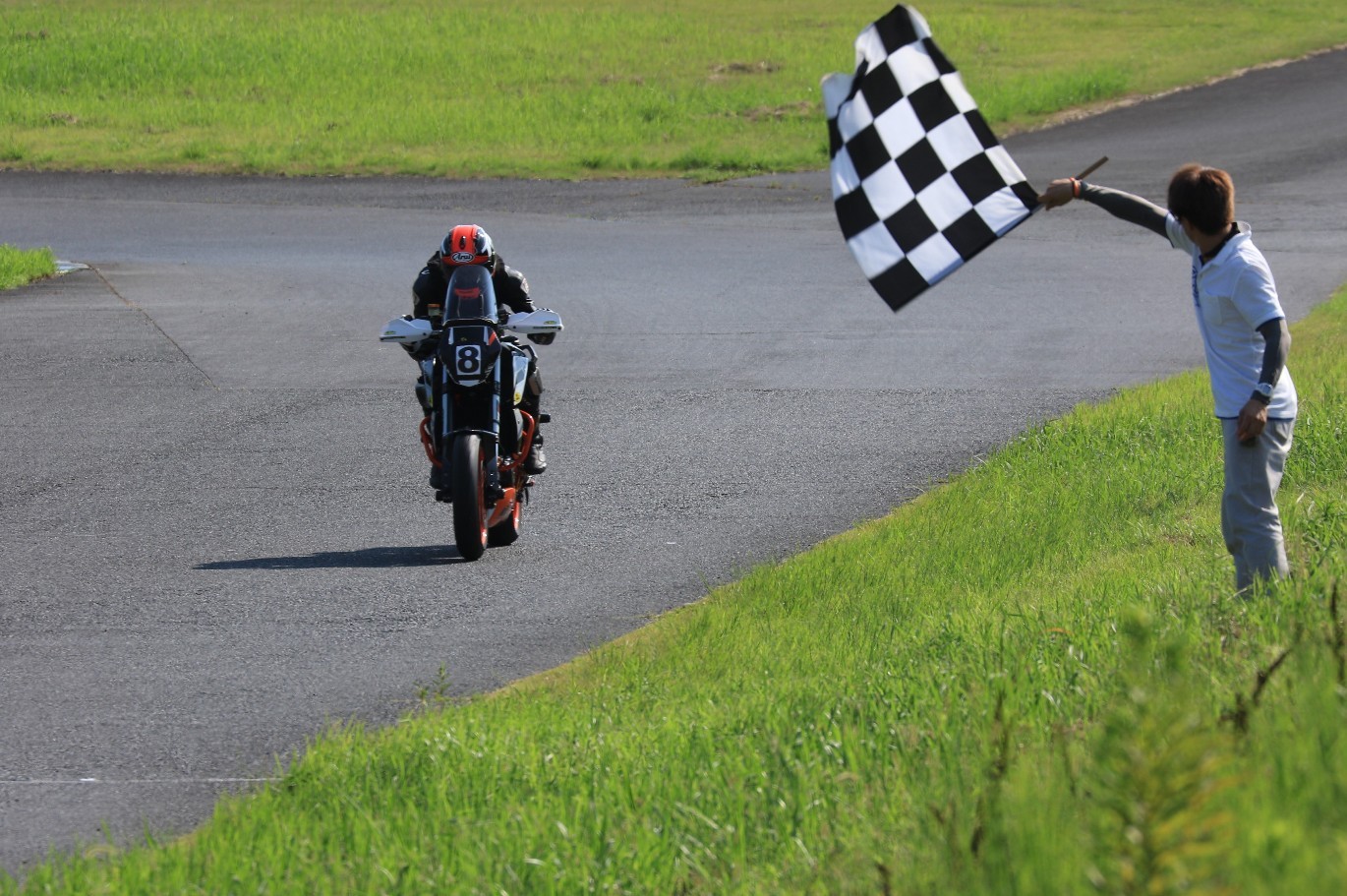 下田を抜き去ってからは独走し、そのままトップチェッカーとなった坂平。