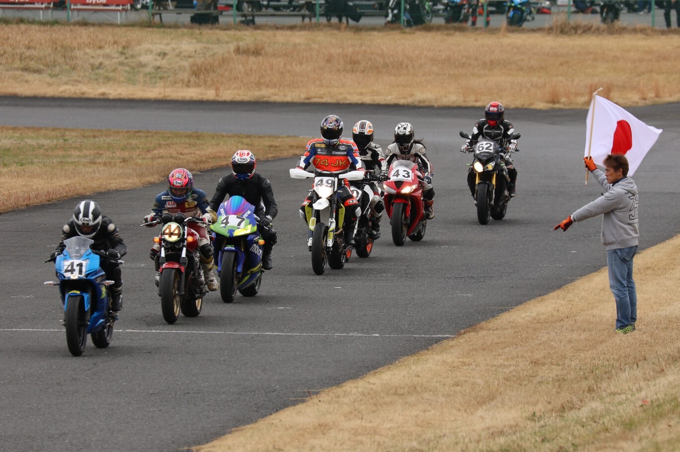 ローリングスタート。予選トップ田中がイン寄りのラインを取ったため、後続もこれに続く格好に(基本的にはローリングスタートでもレコードライン遵守)。