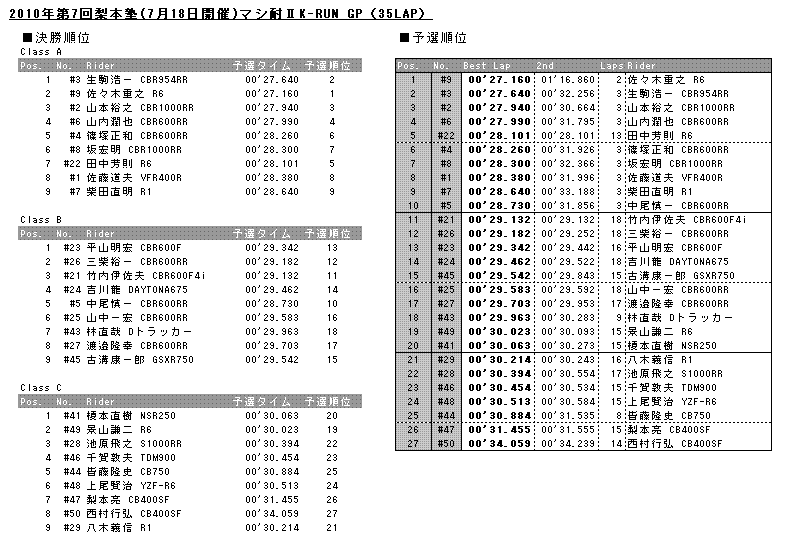 但しこのときは気温が低くタイムアタック後に雨が降ってきたためK-RUN-GPは中止となった。