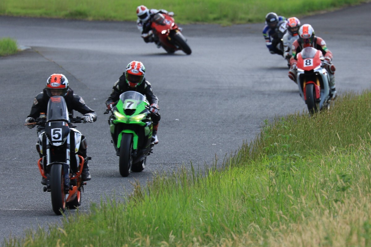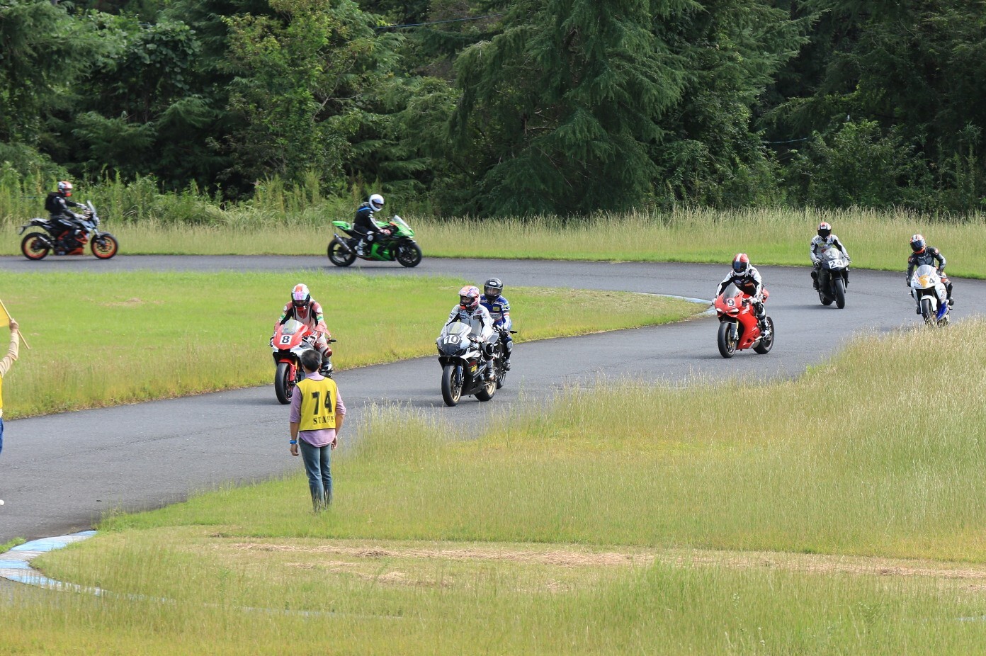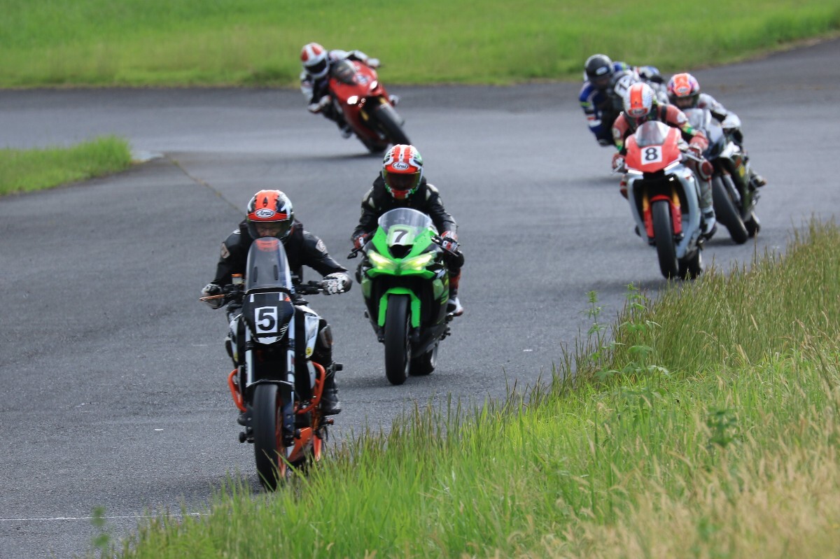 5番手に尾崎ZX10R、6番手に坂平690DUKE R、7番手に吉田ZX6R、8番手に磯山R1、9番手に渡辺GSXR1000K6………