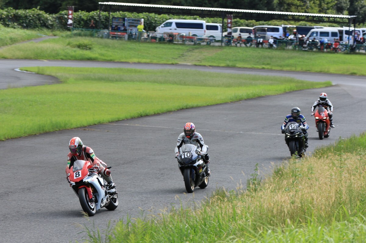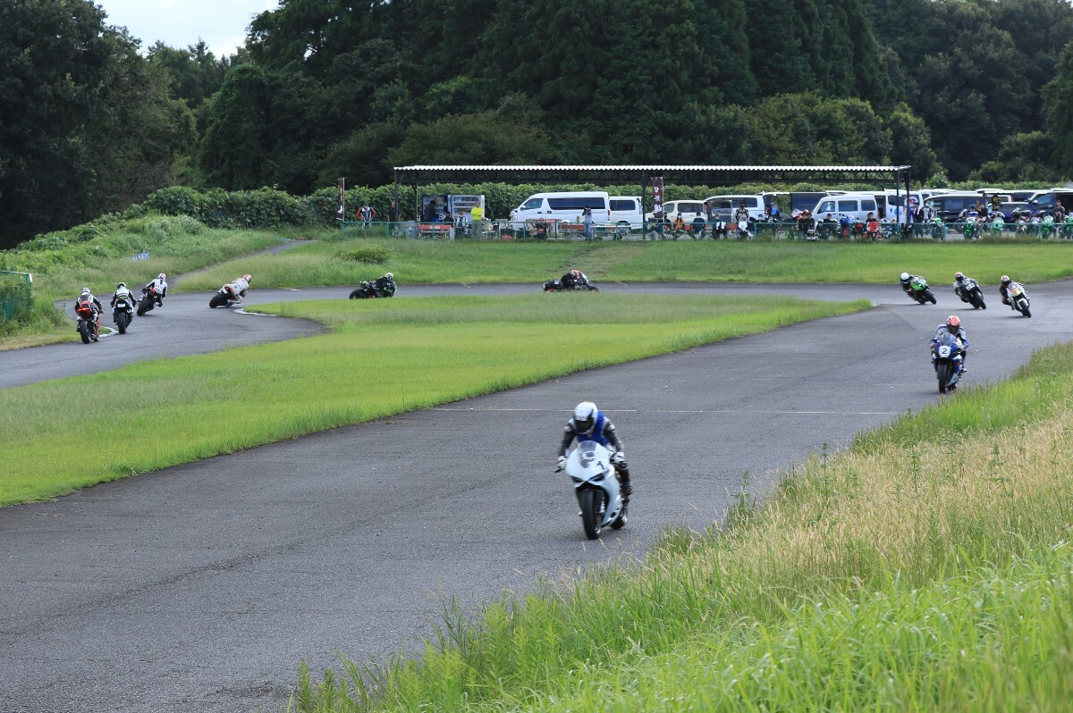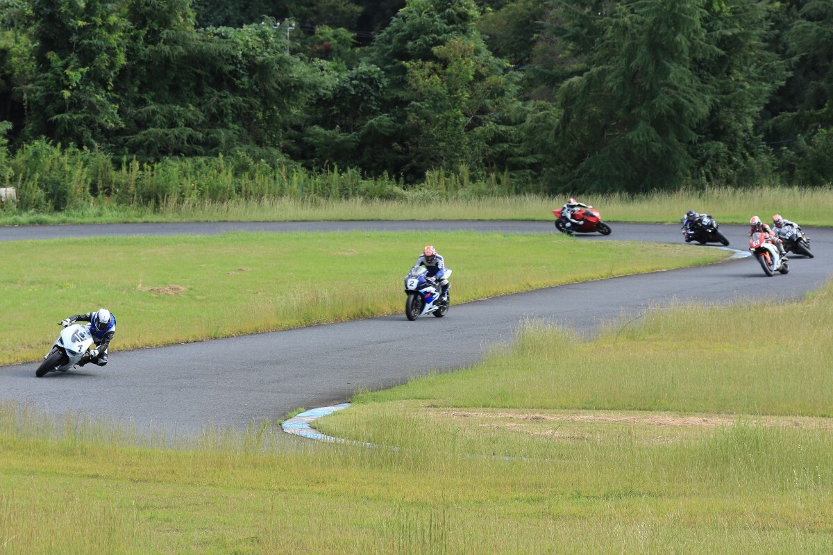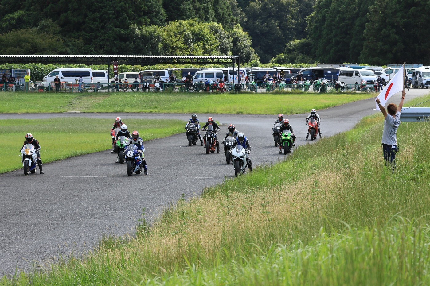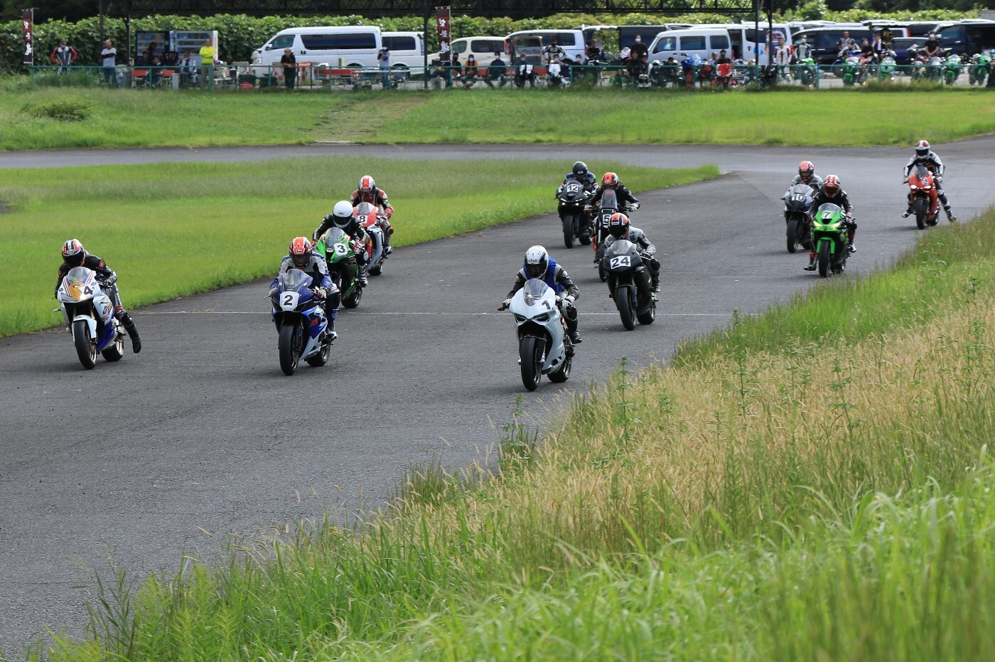 ホールショットを奪ったのは柴。そして山中の鼻先を抑えて2番手には片岡GSXR1000K6。