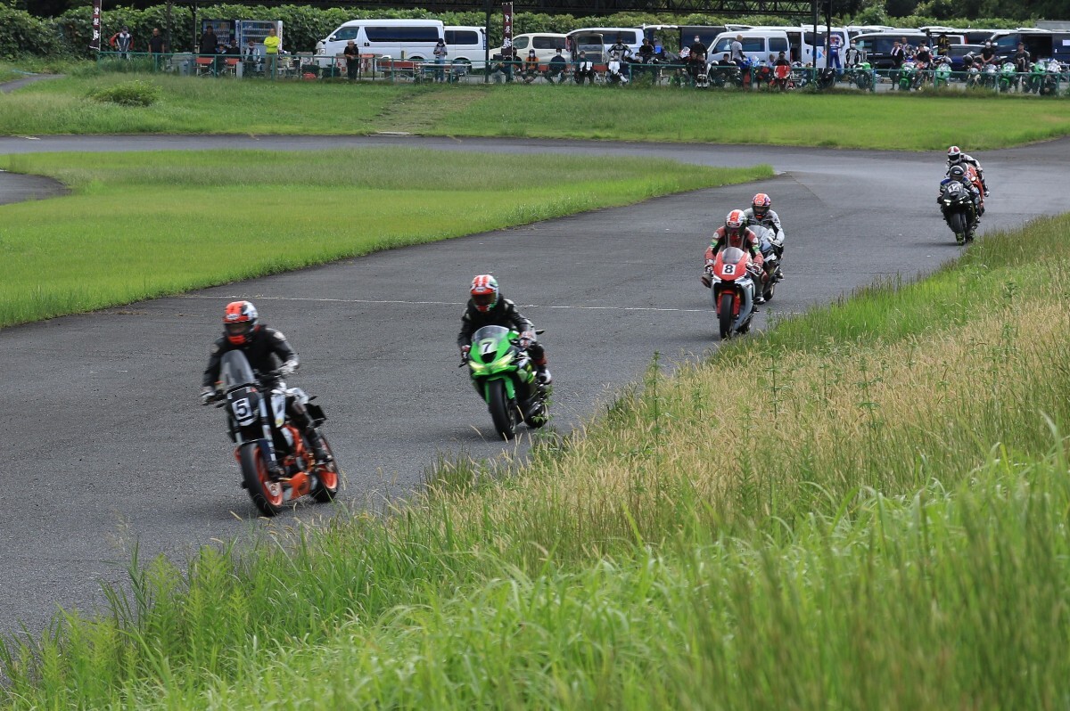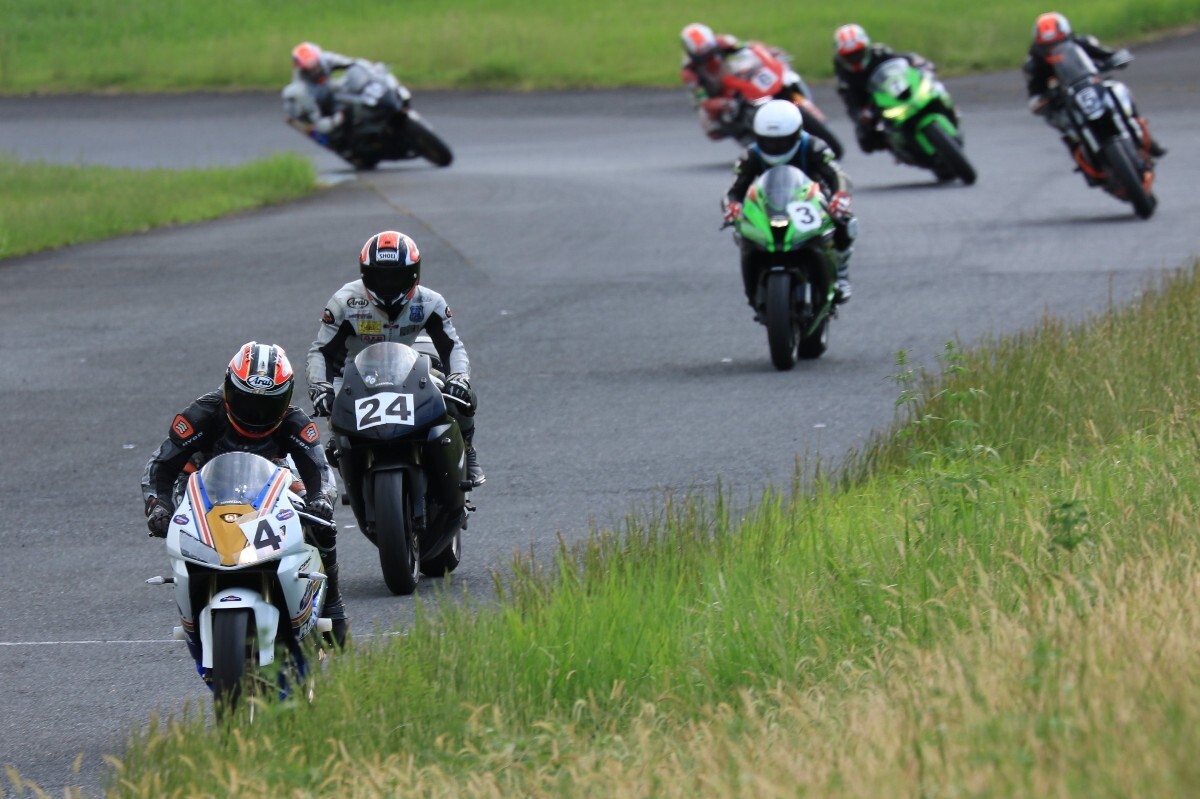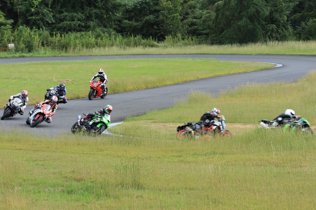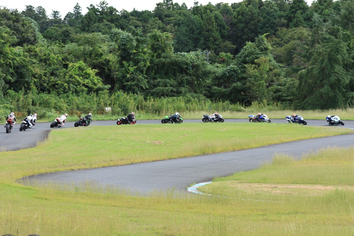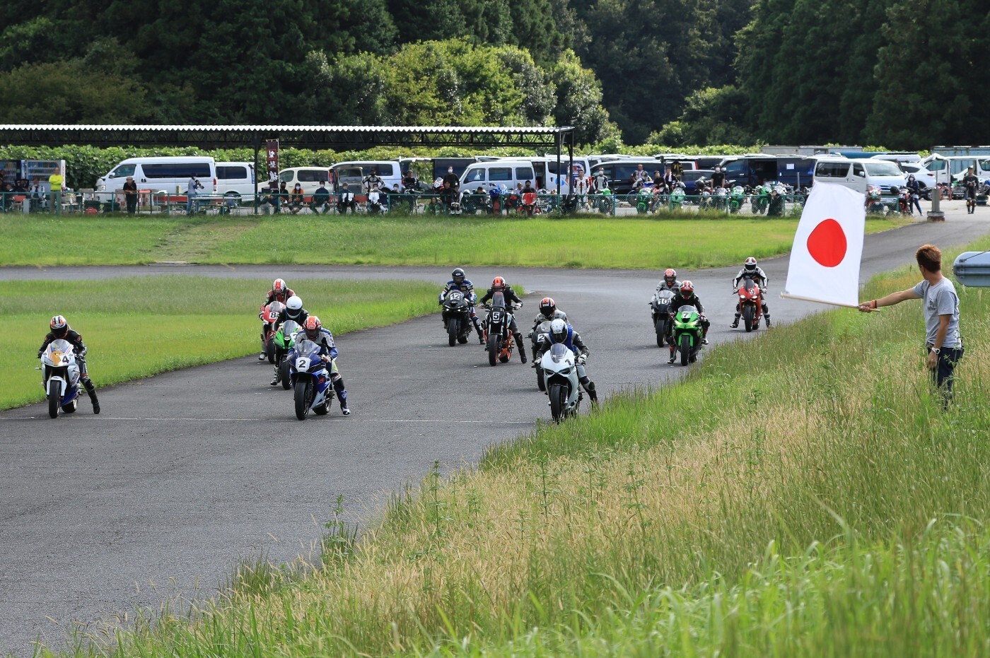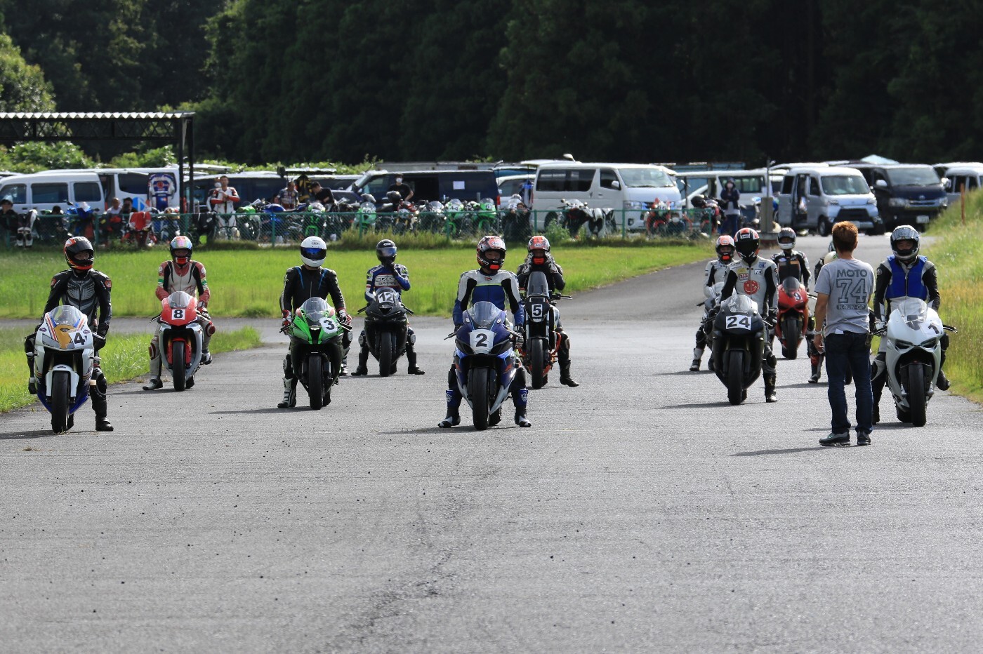 ホールショットを奪ったのは柴。そして山中の鼻先を抑えて2番手には片岡GSXR1000K6。