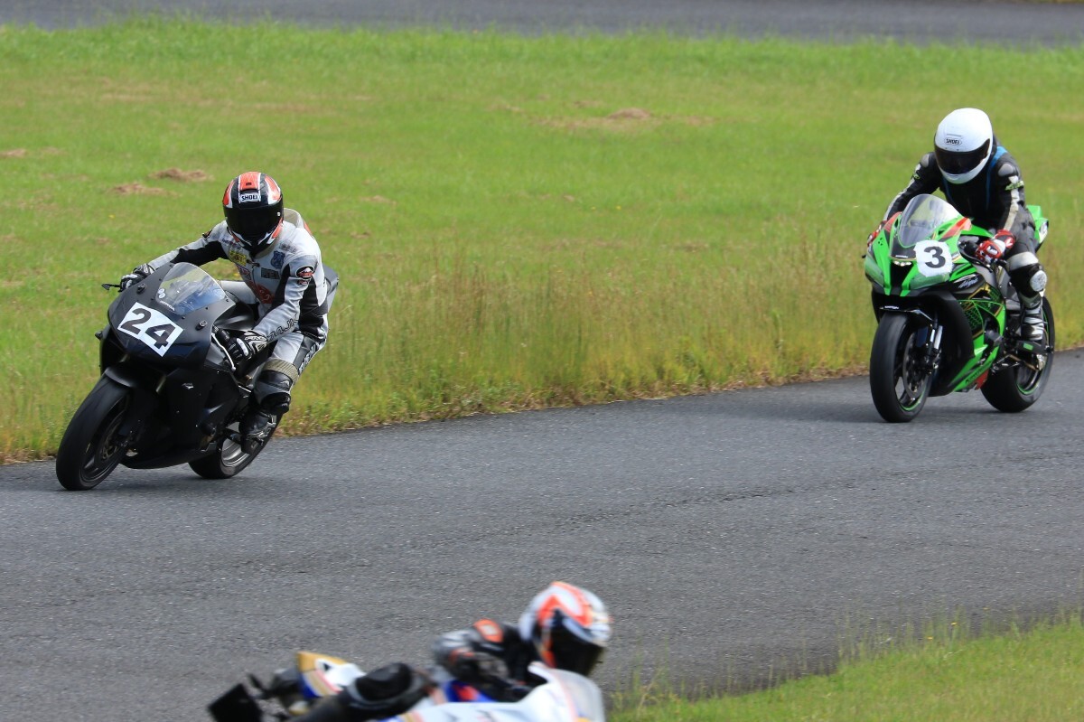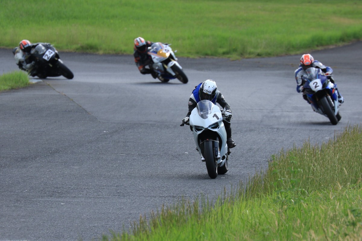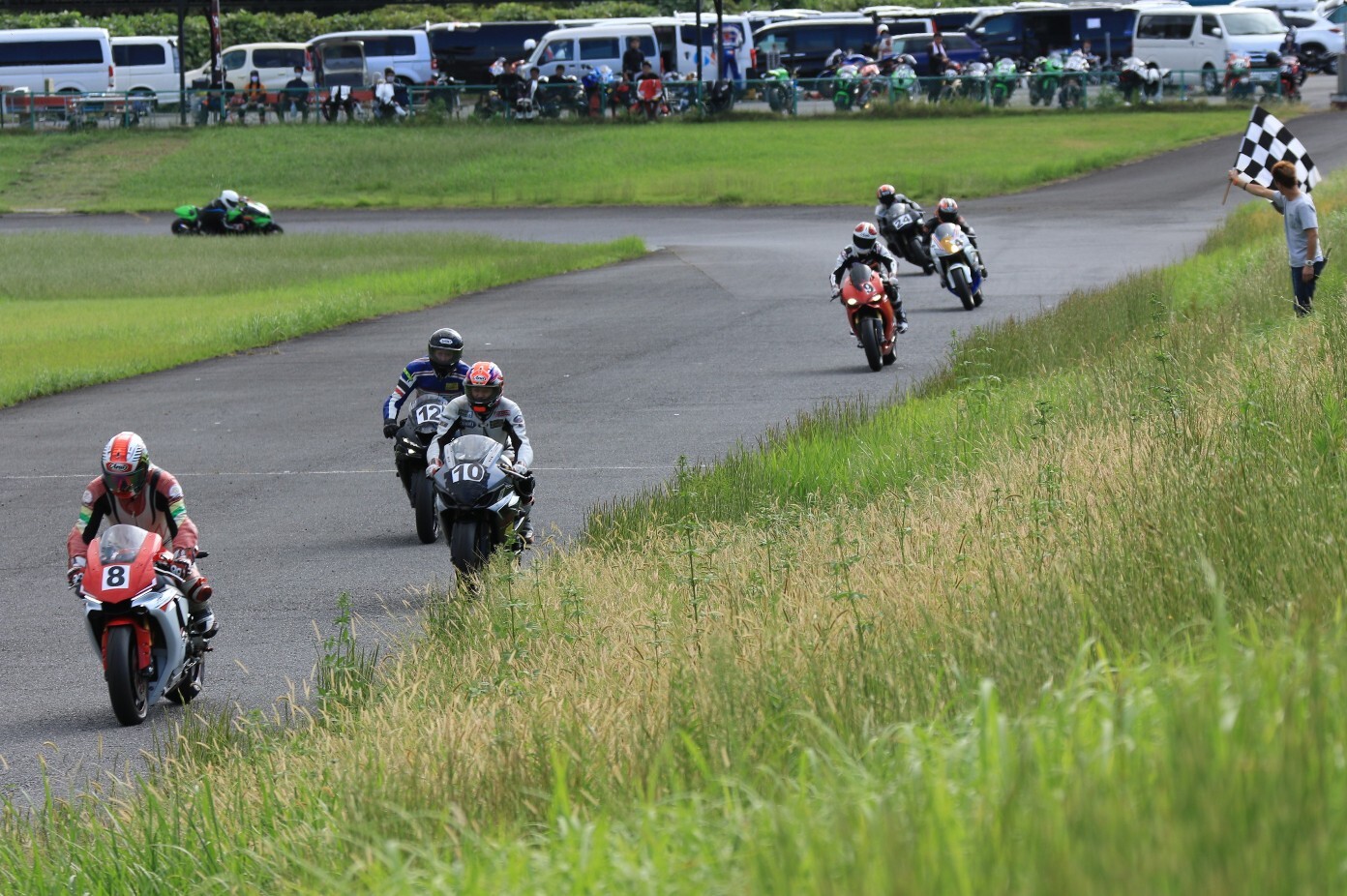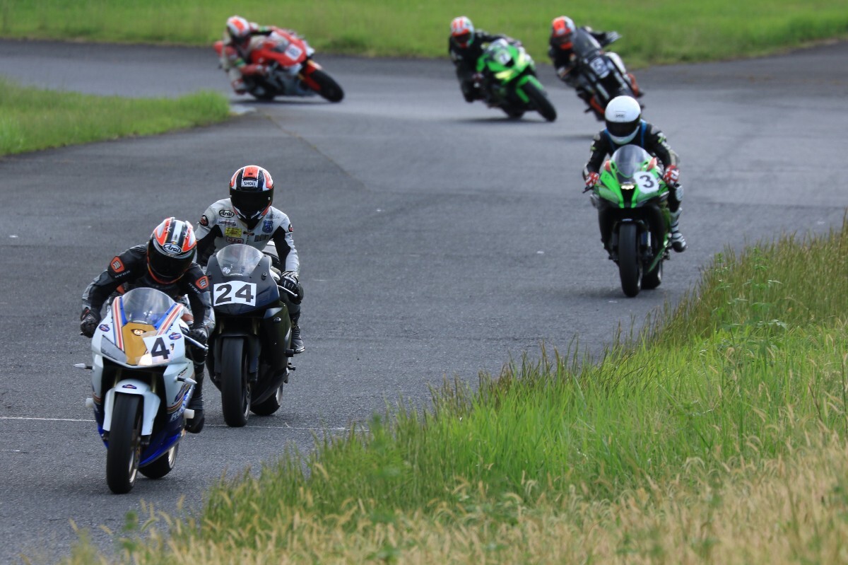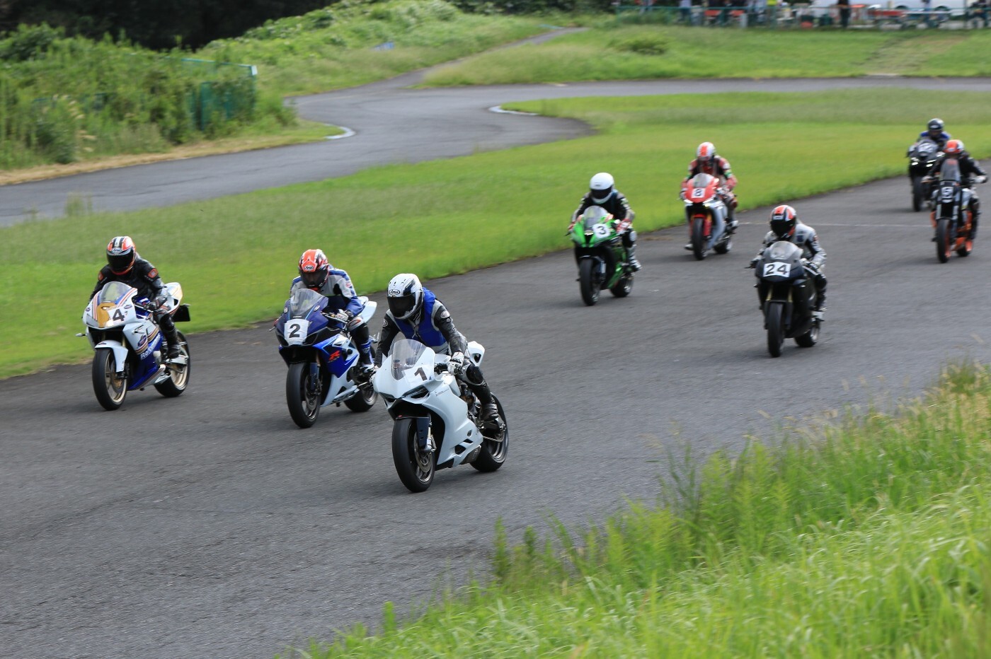 ホールショットを奪ったのは柴。そして山中の鼻先を抑えて2番手には片岡GSXR1000K6。