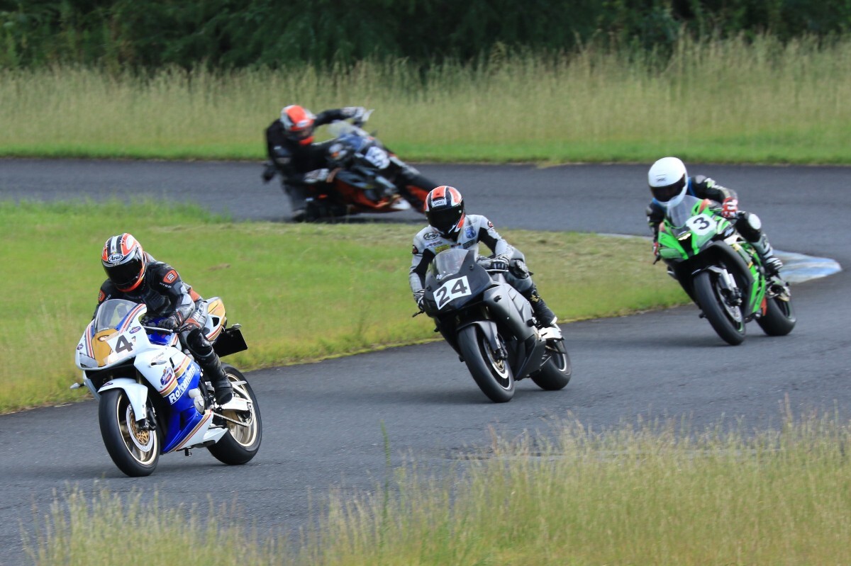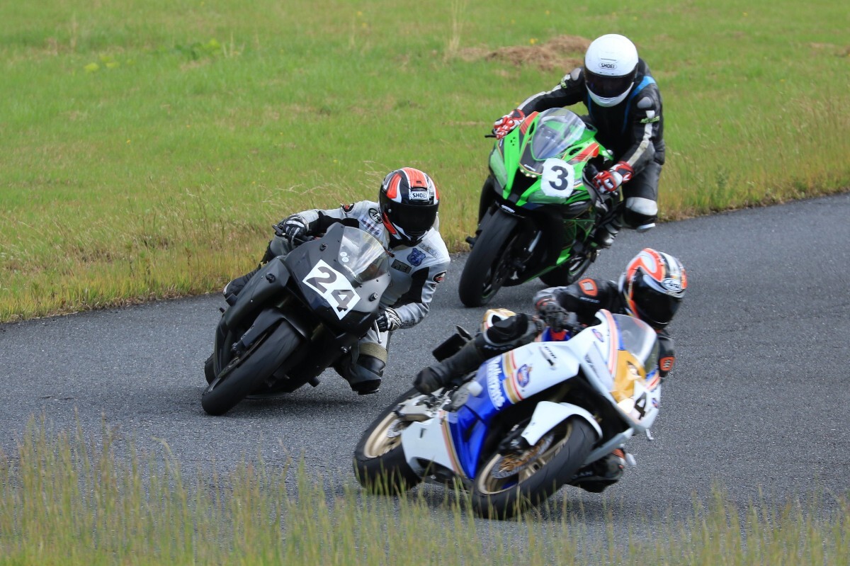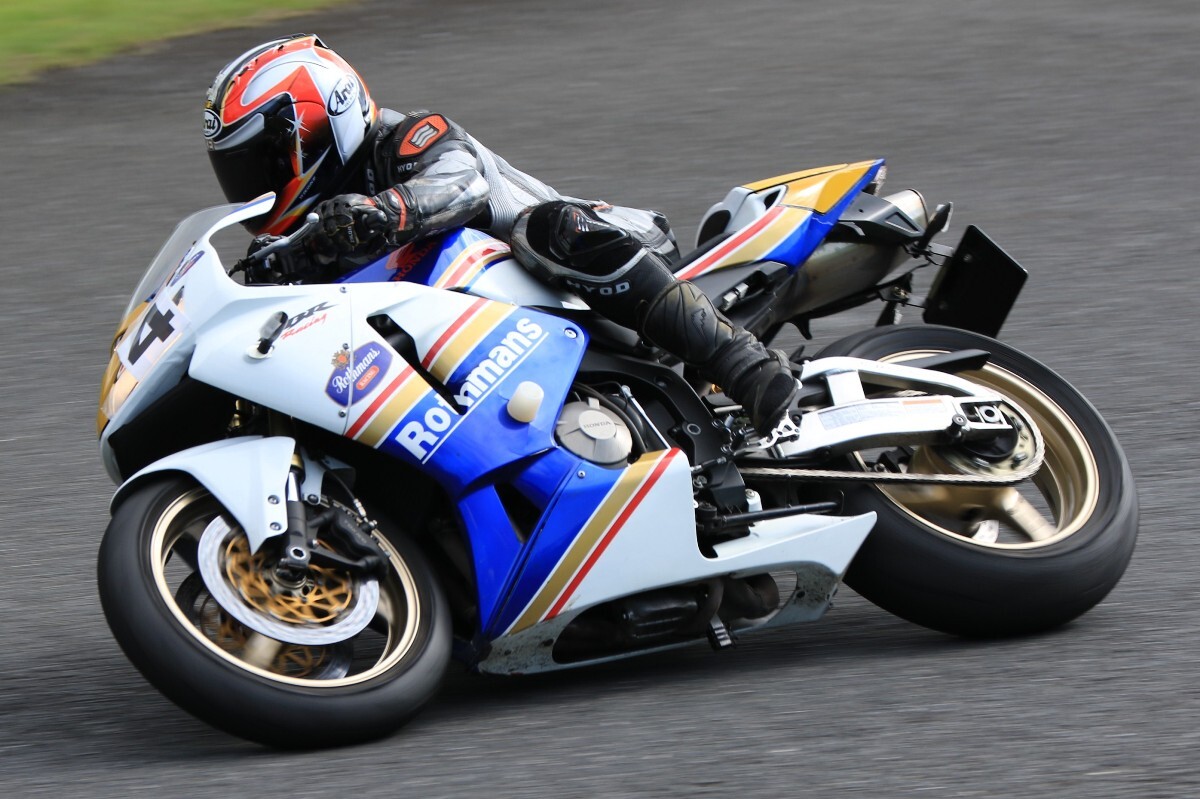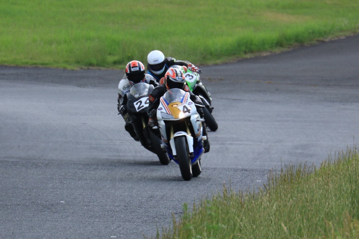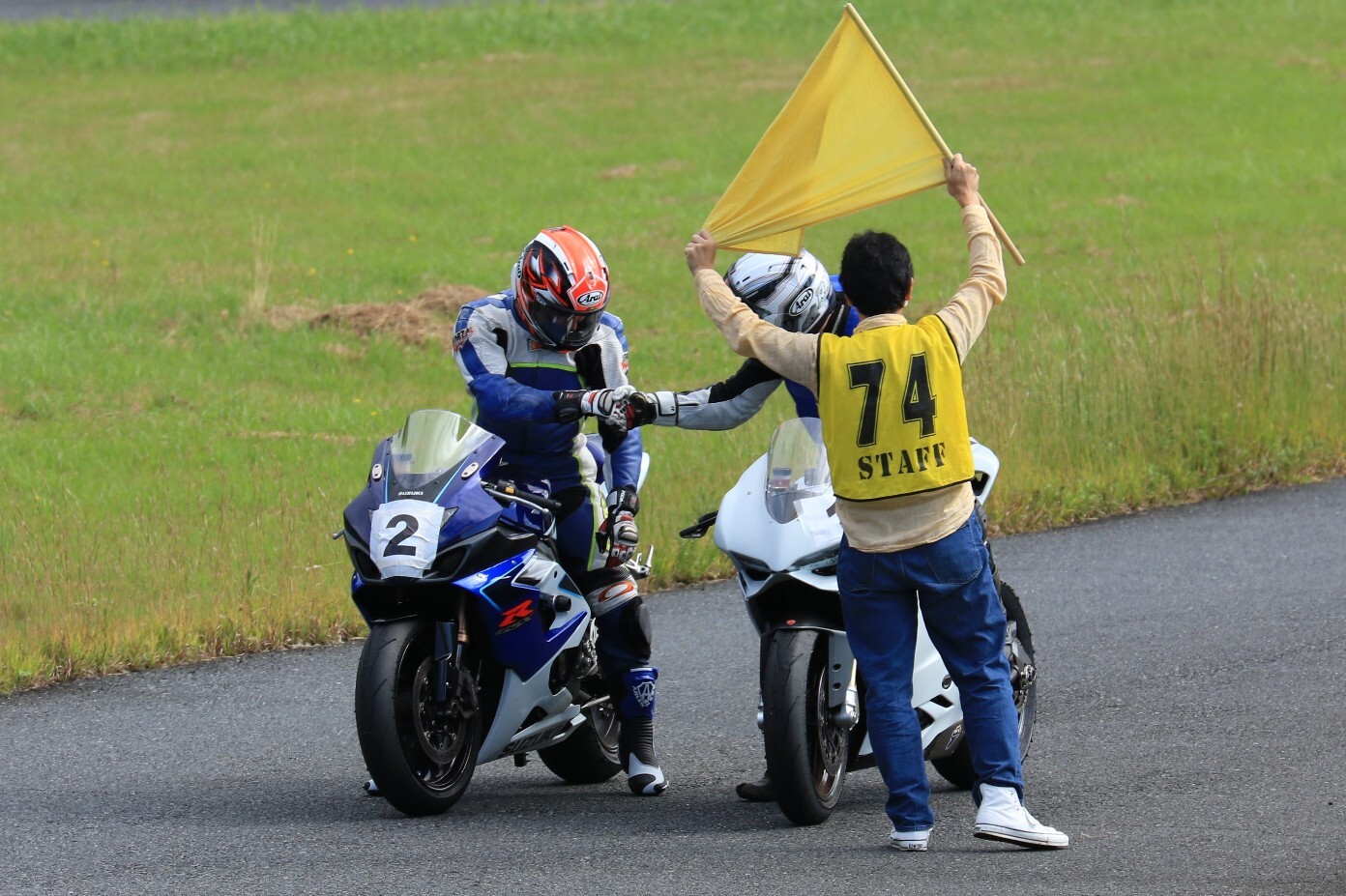 ホールショットを奪ったのは柴。そして山中の鼻先を抑えて2番手には片岡GSXR1000K6。