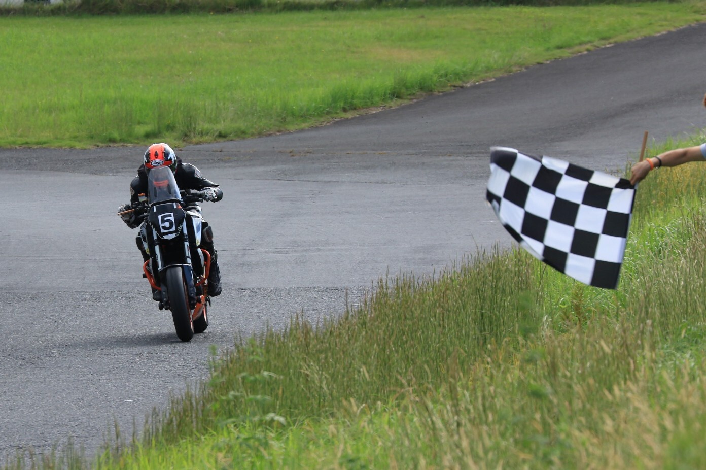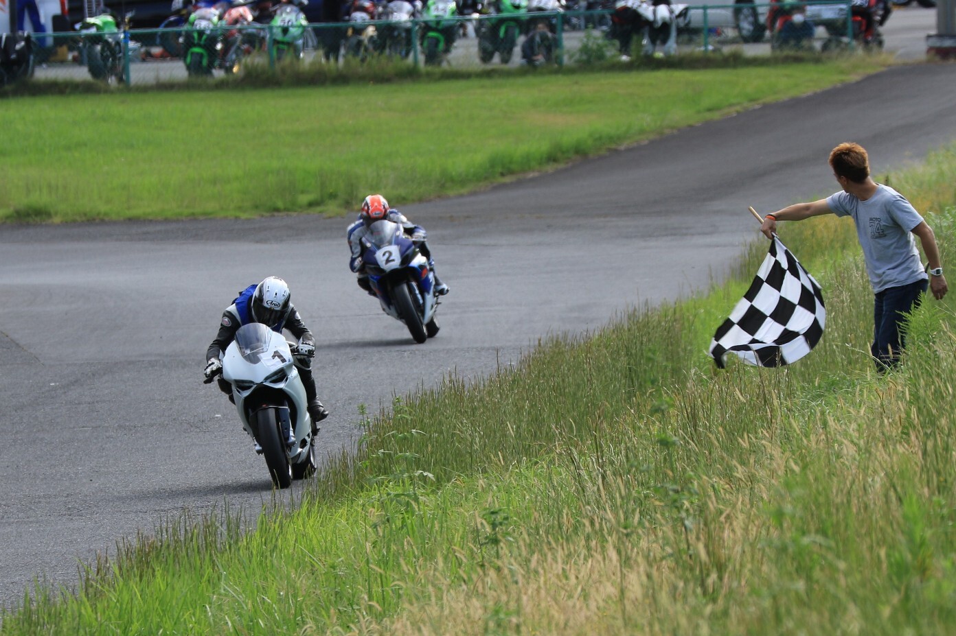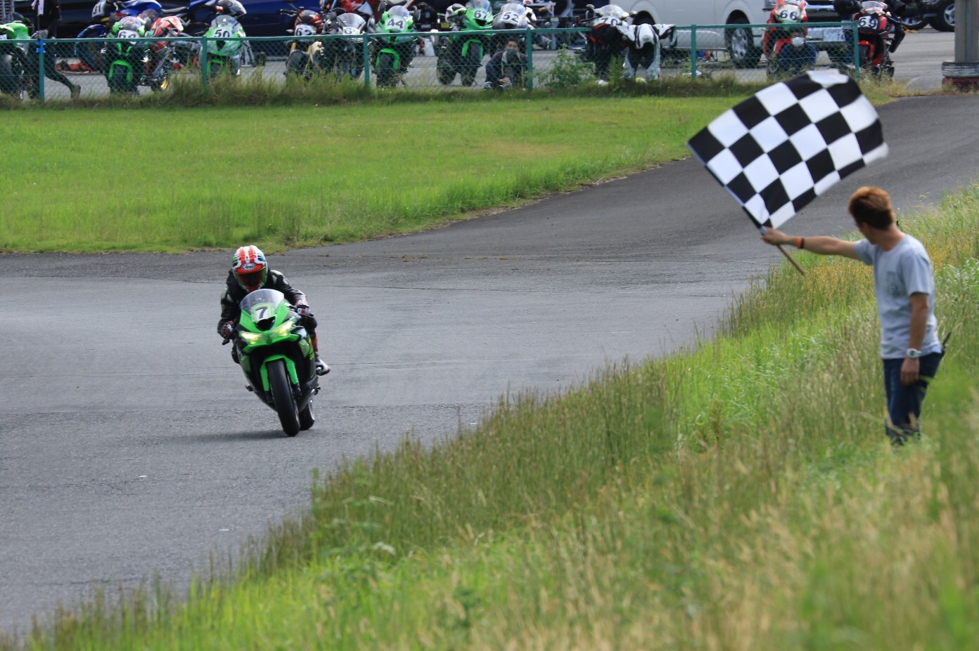 チェッカーへ。1位には柴、健闘の2位に片岡。