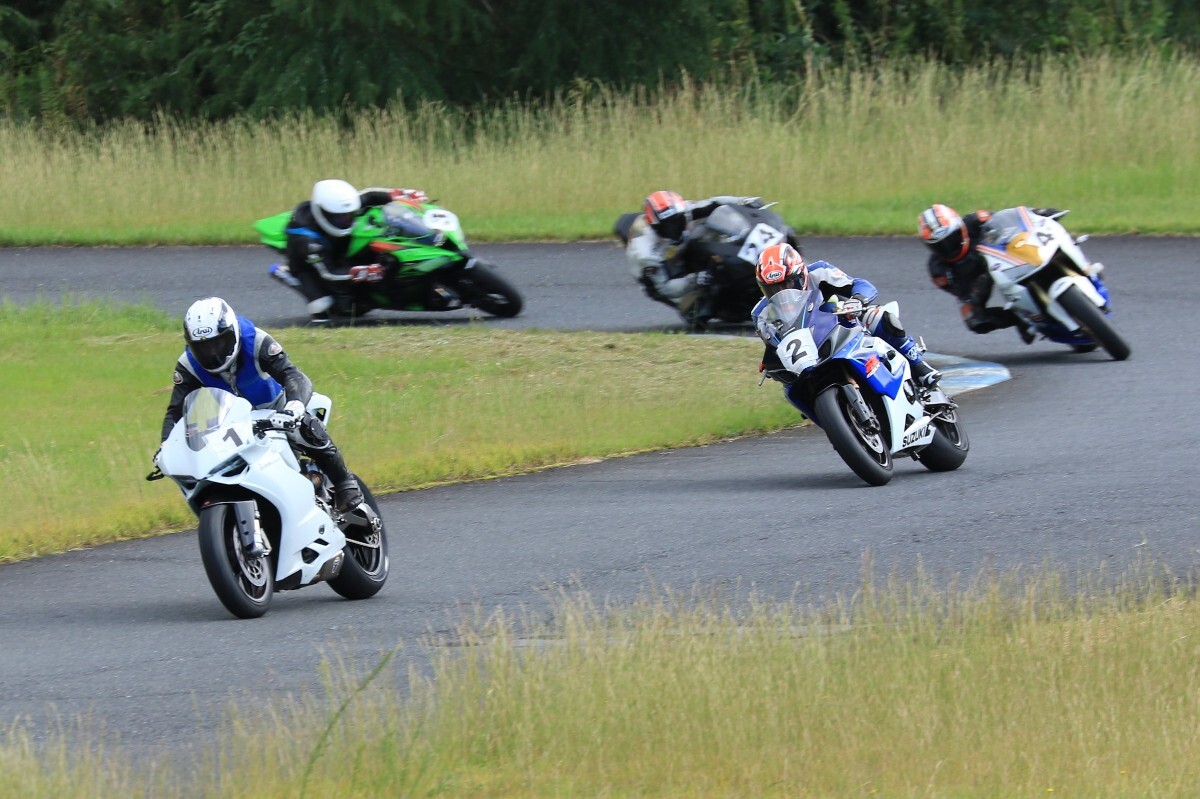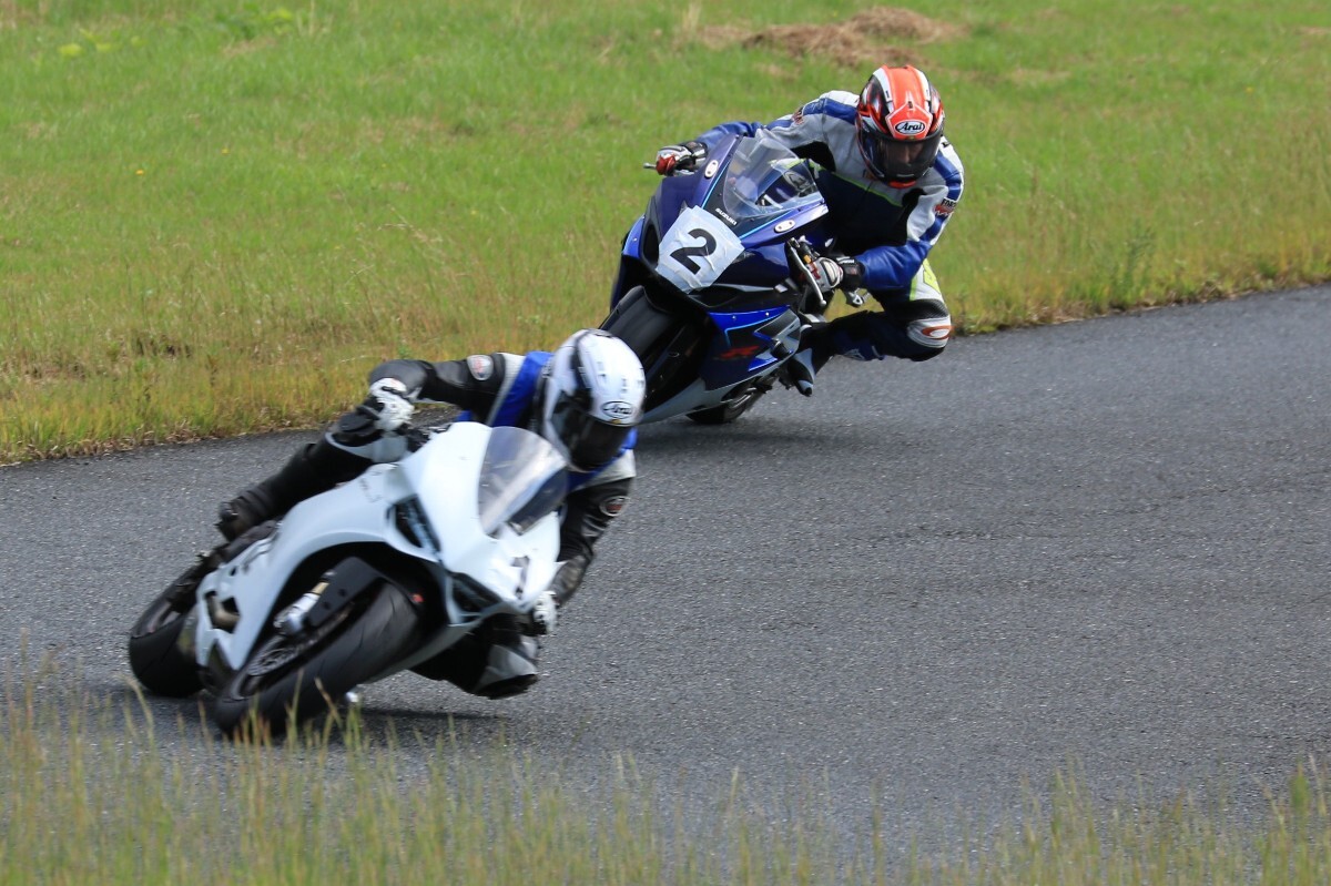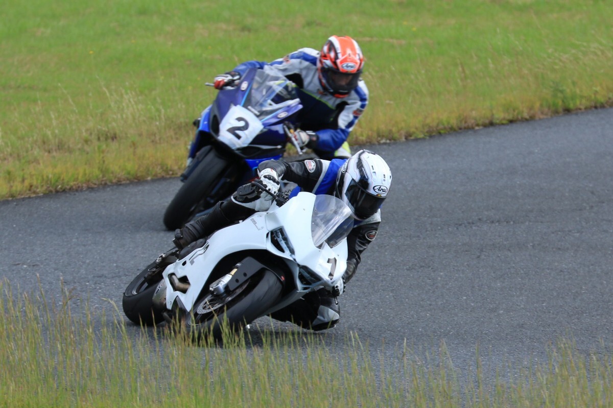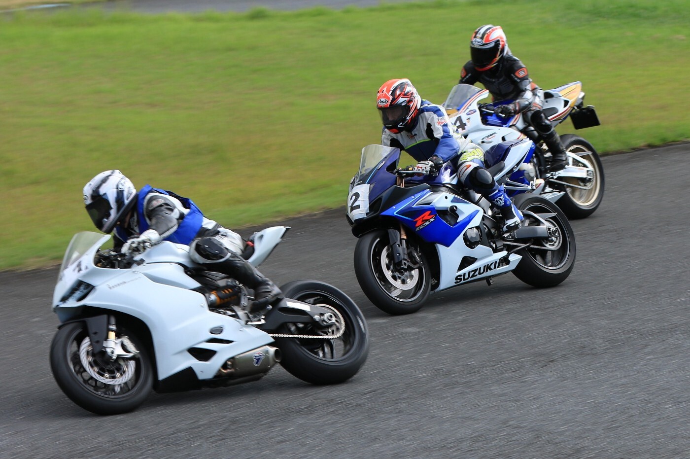 ポールポジションから出た柴899パニガーレと、3番手スタートの山中CBR600RR。