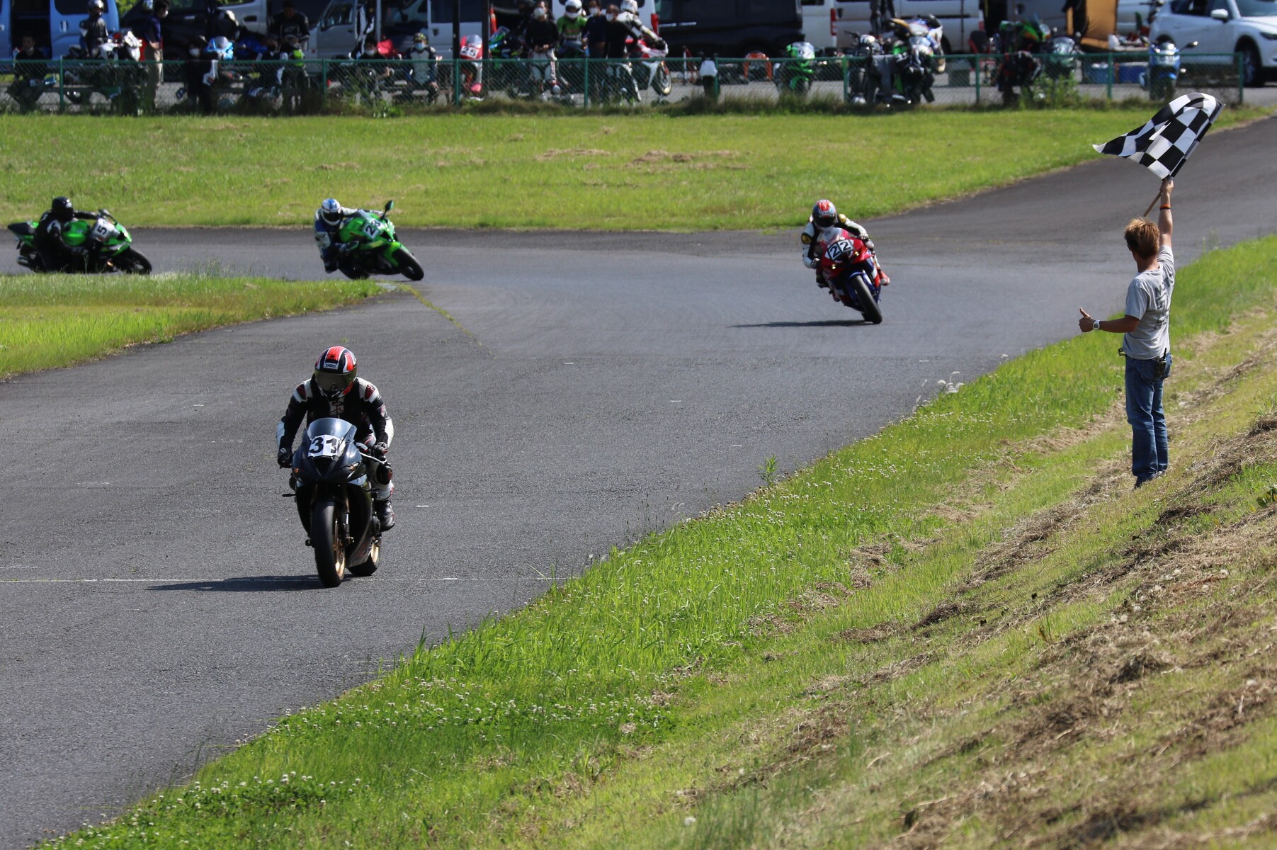11位に八木、12位に清川の順で全員無事にチェッカー。
