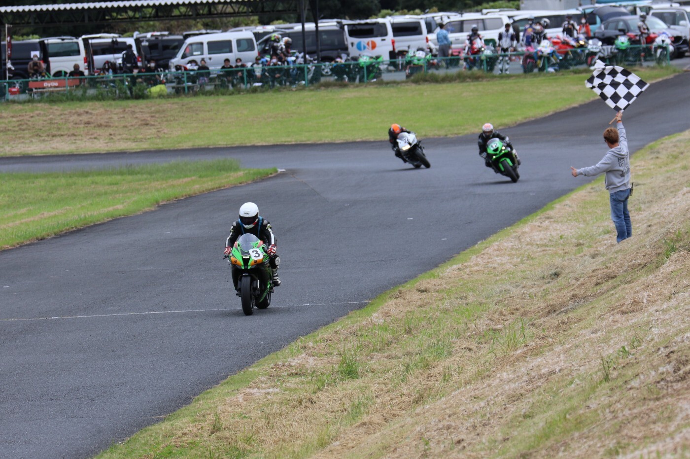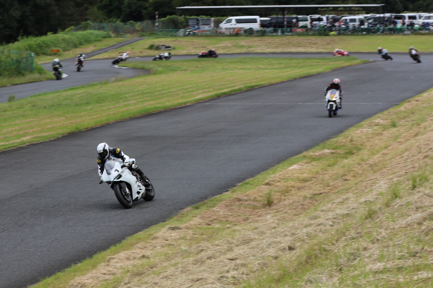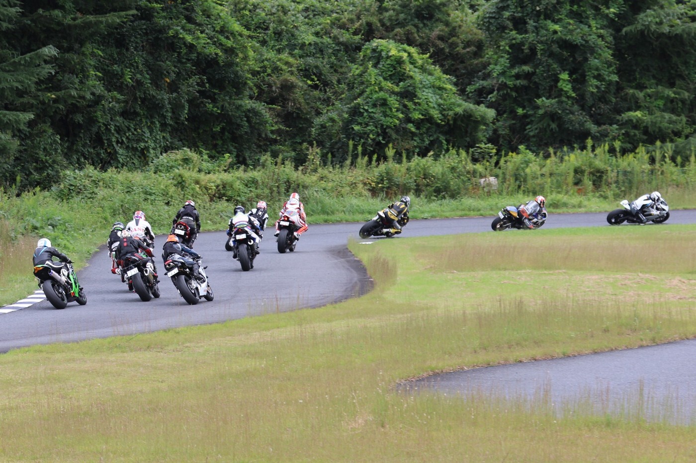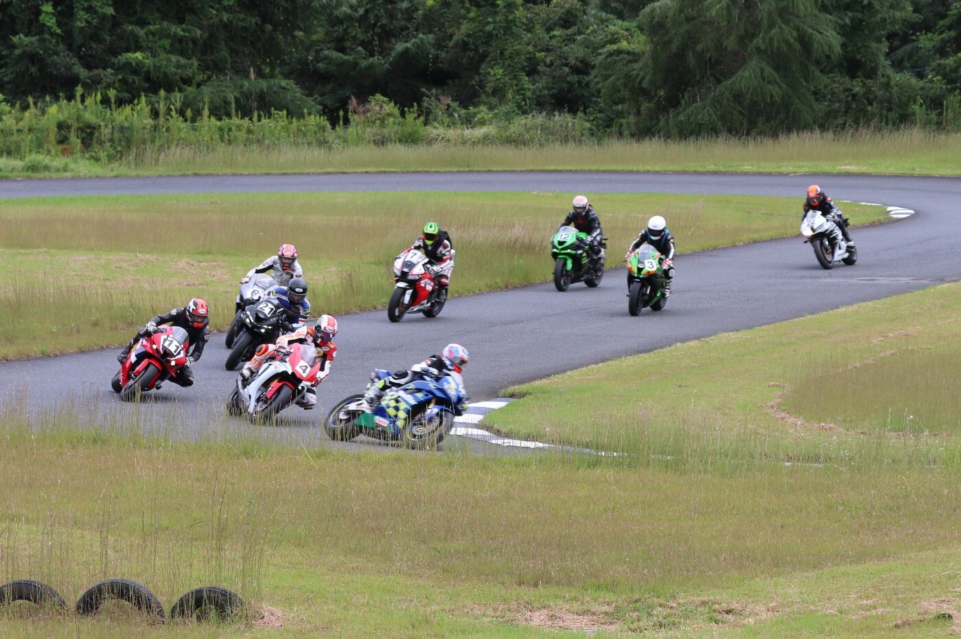 6番手に坂平CBR600RR、7番手に伊藤ZX6R、8番手に渡辺GSXR1000K6、9番手に阿部CBR600RR、10番手に亀田ZX6R、11番に尾崎ZX10R、12番手に鈴木CBR600RRと続く。