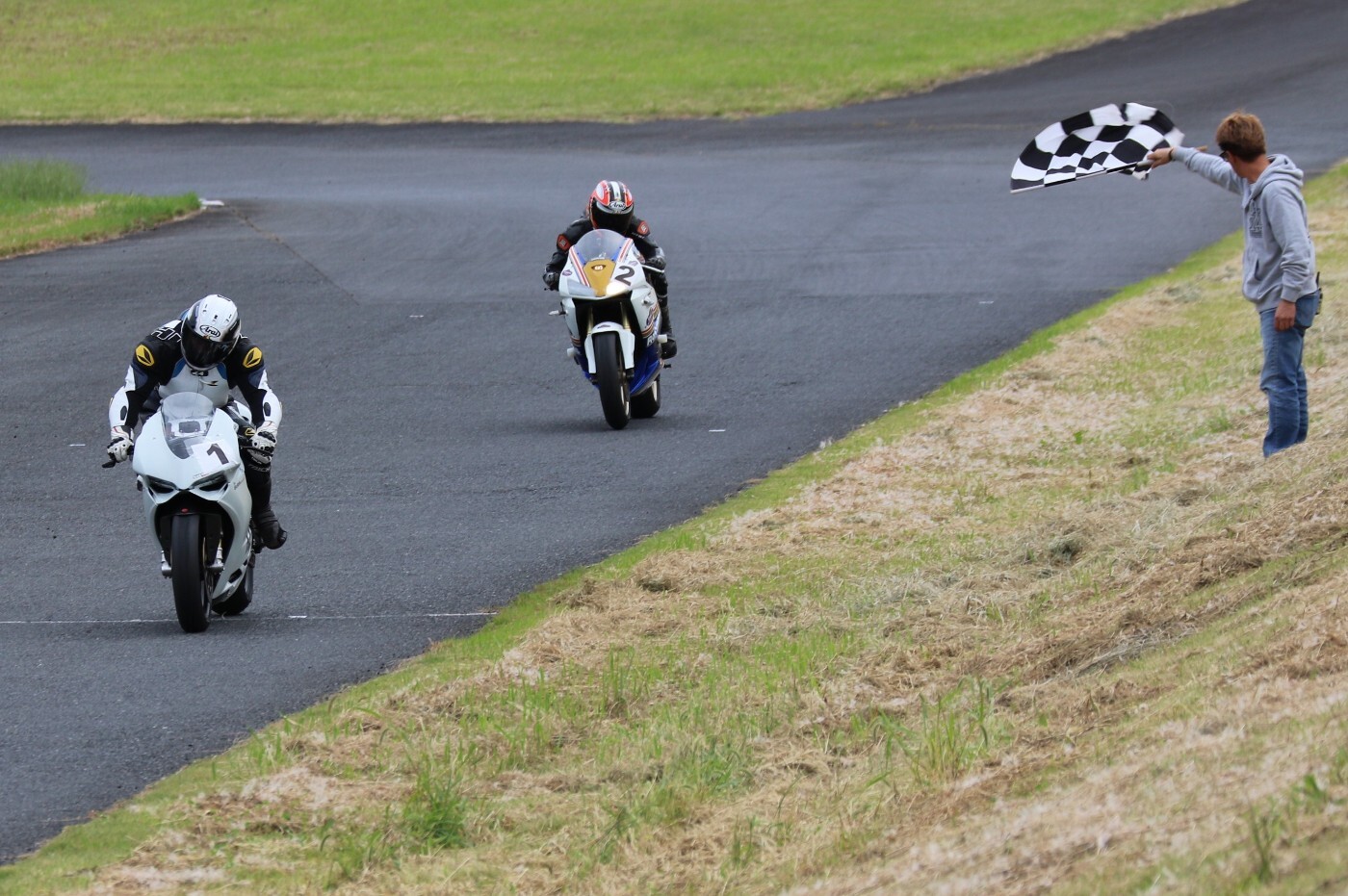ベテラン2人が後続を振り切って、危なげなくチェッカー。優勝は柴、2位に山中。