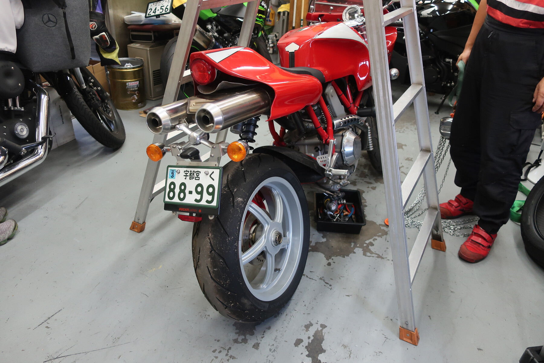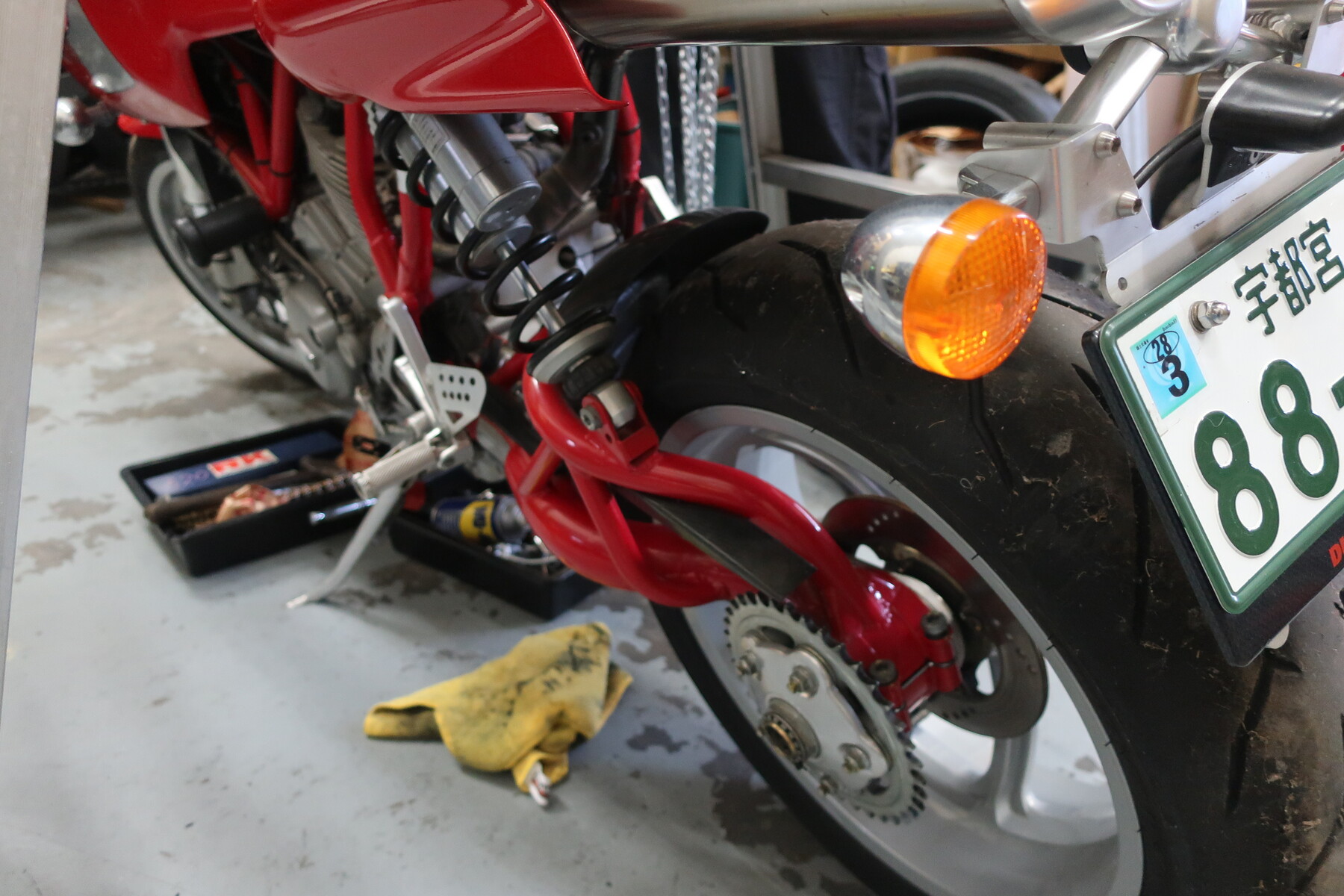 なんていう声も。もちろんマフラーもカムもノーマルのまま。梨塾ガレージでは、カッコだけの扱いにくいセットアップは絶対に行いません。