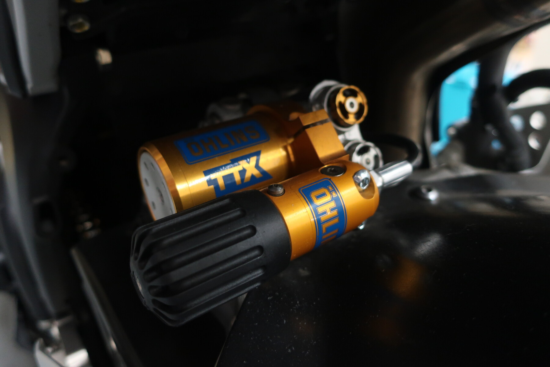 A:後々のセットアップが二重になってしまうのと、対費用効果の両面から、先にJBマグタンを入れてから、前後オーリンズという順番にします。いずれかひとつなら、JBマグタンですね。ストレートスピードも激変しますから。