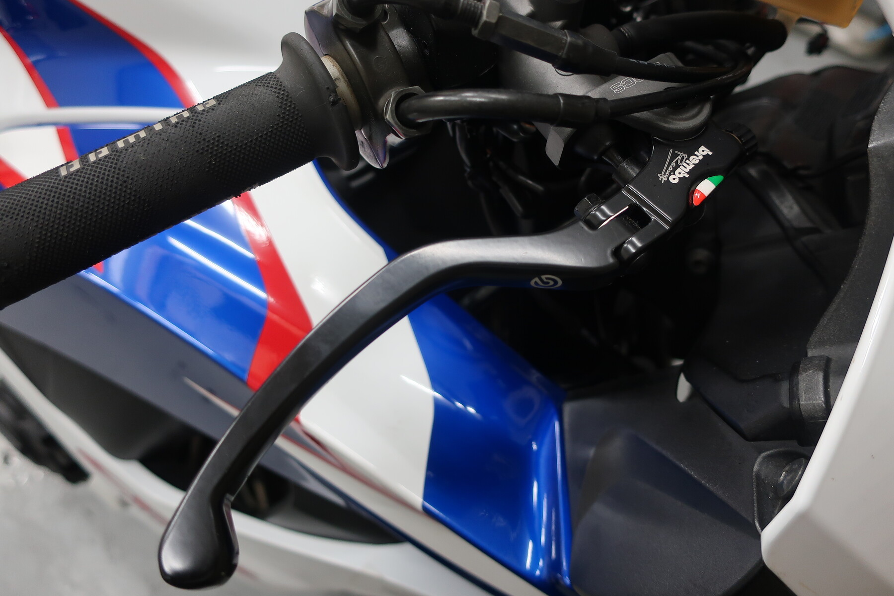 ジャダーの出始めていた梨塾ガレージPC40にてテスト開始。なんとジャダーが収まりました。ノーマルディスクはもちろん、ブレンボディスクとの相性も良く、制動力、安定感もバッチリ。S1000RRにも装着し、すでに梨塾号全車両の「エースパット」となりました。ぜひご相談下さい!※ディスクの状態によっては、ジャダー解消しないこともございます。