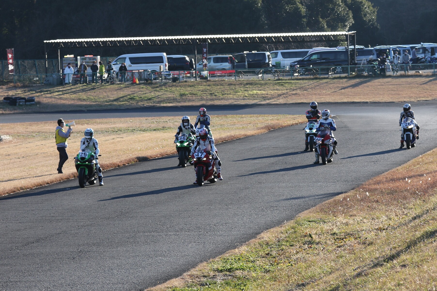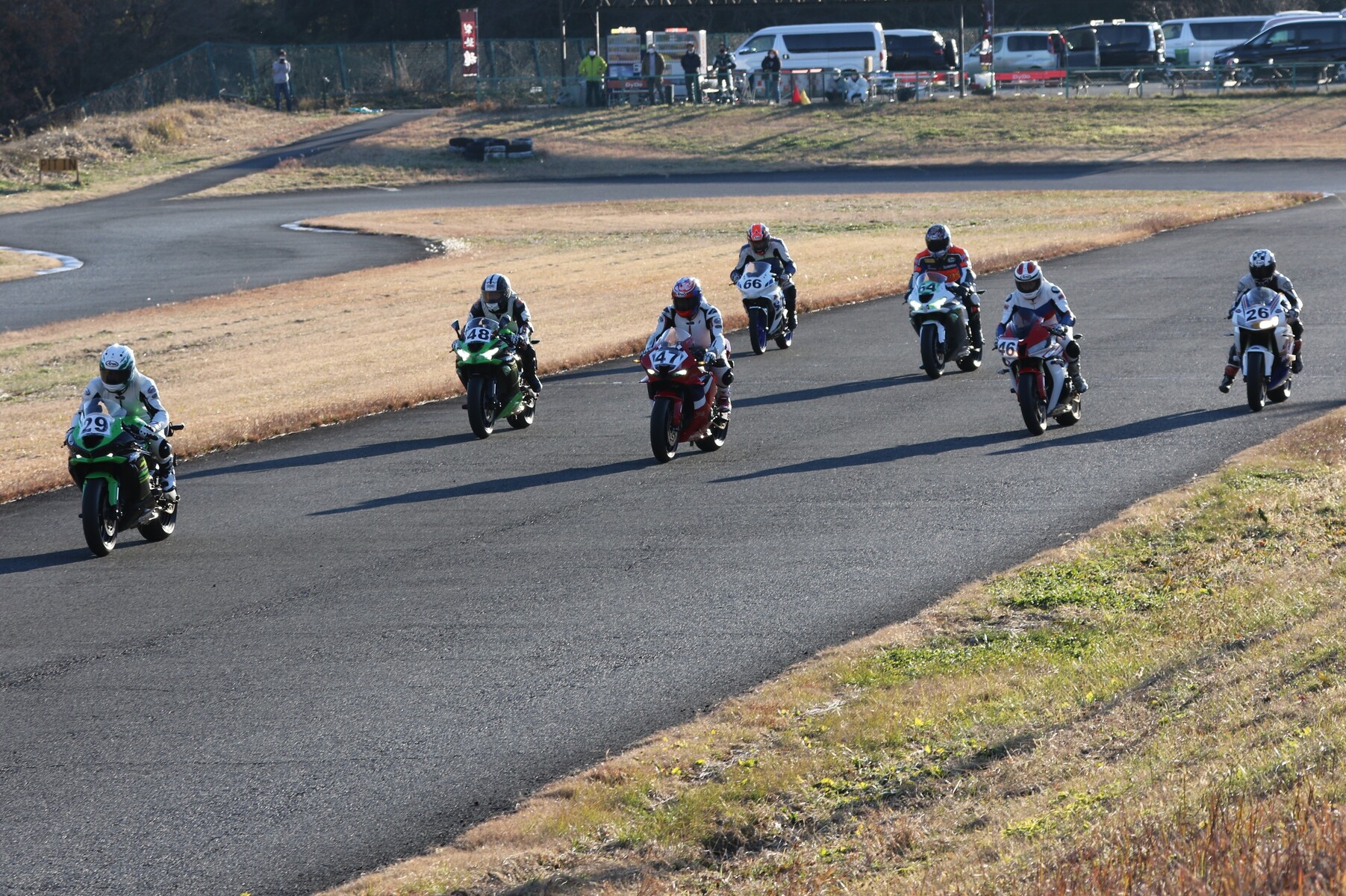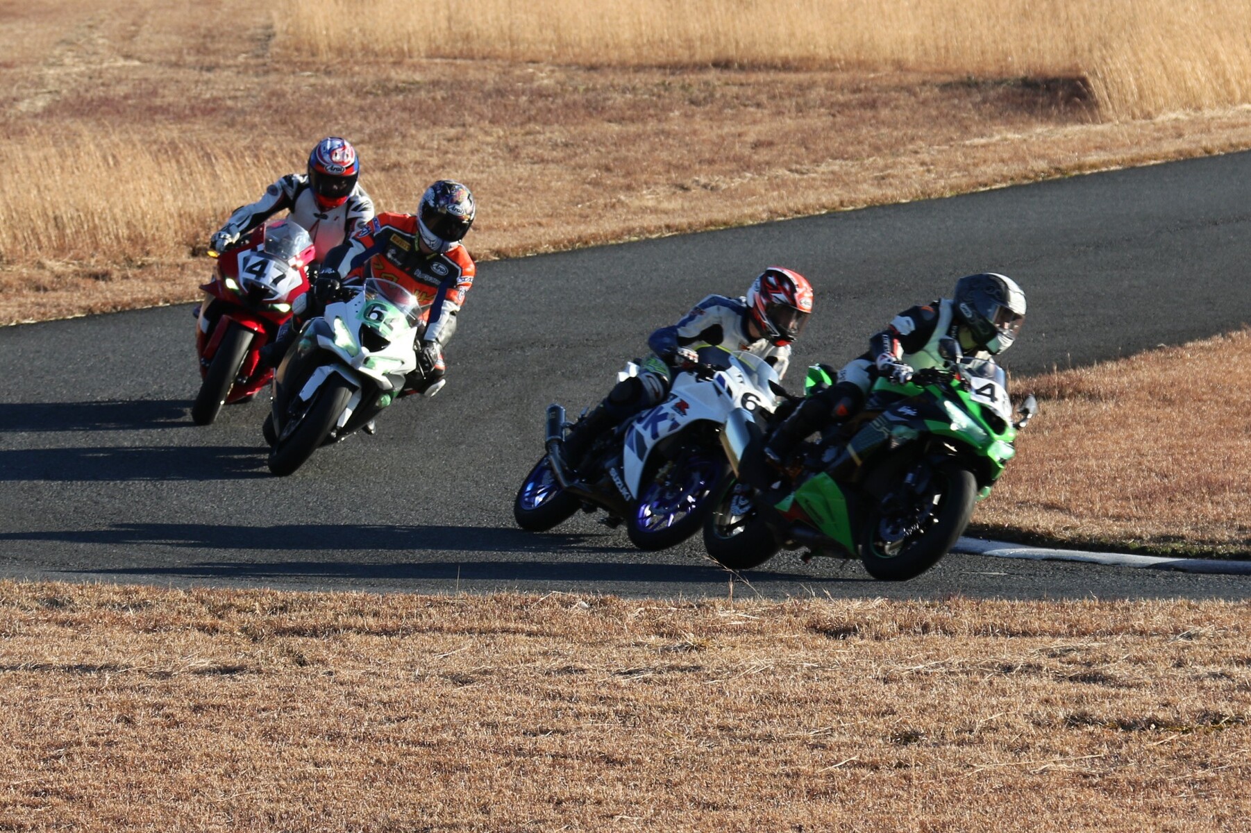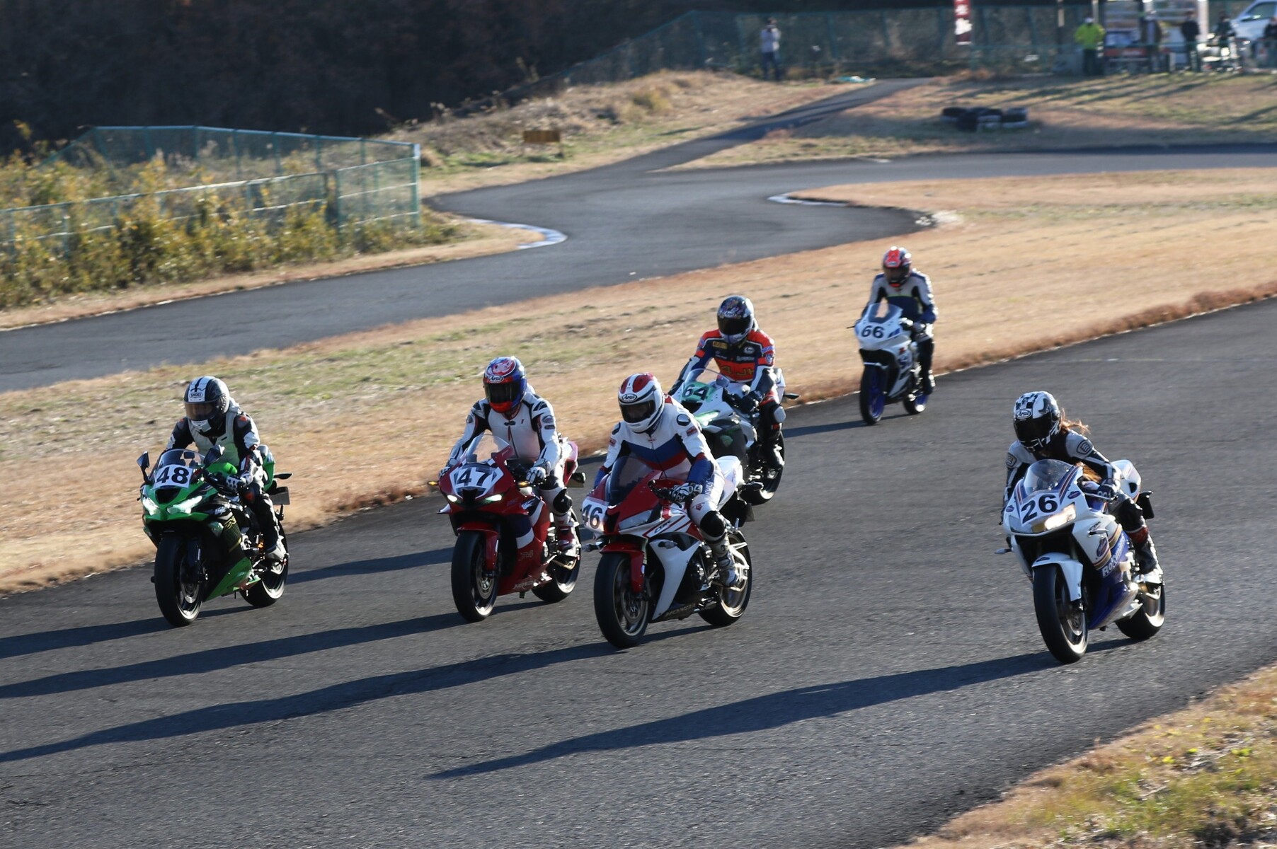 4番手に矢後ZX6R、フロントロースタートだった白土は5番手、6番手に菅原ZX6R、7番手に片岡GSXR125。