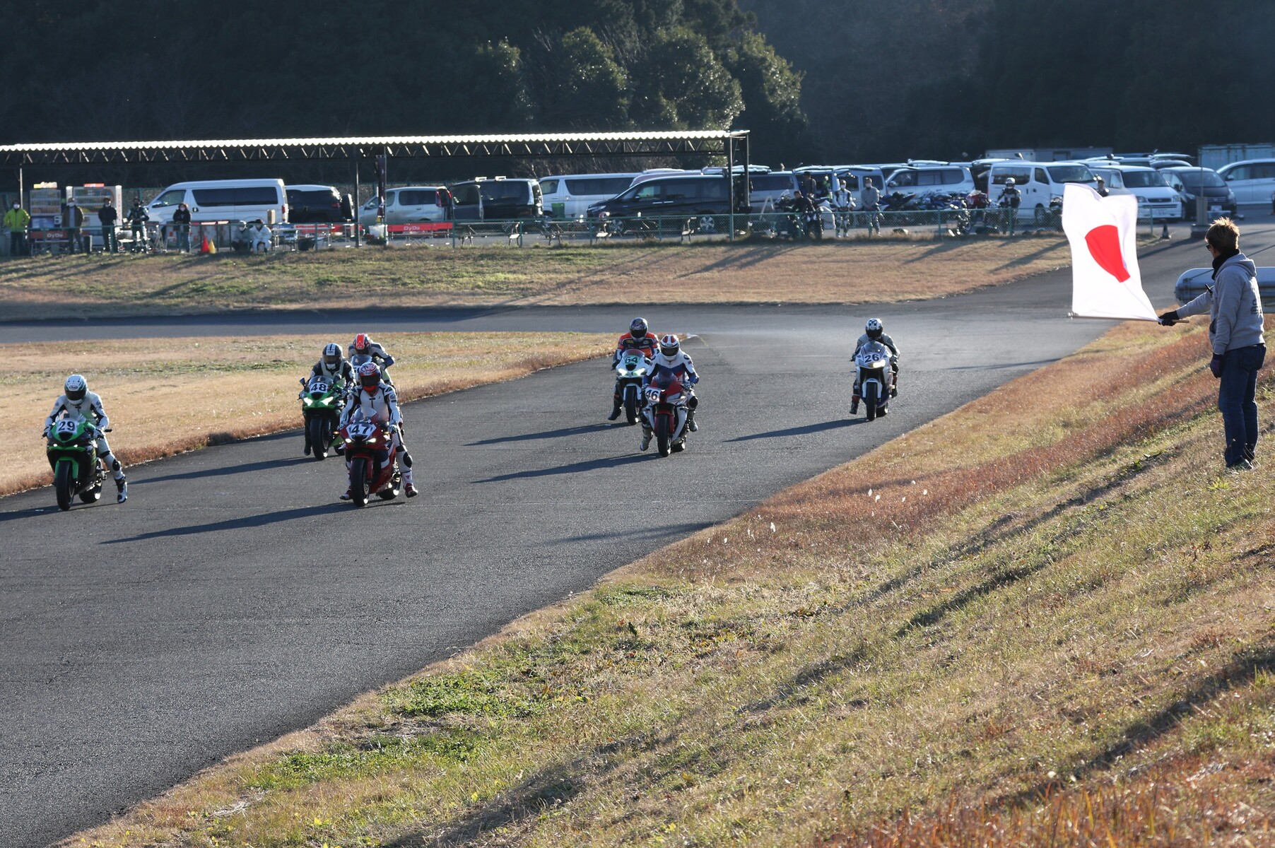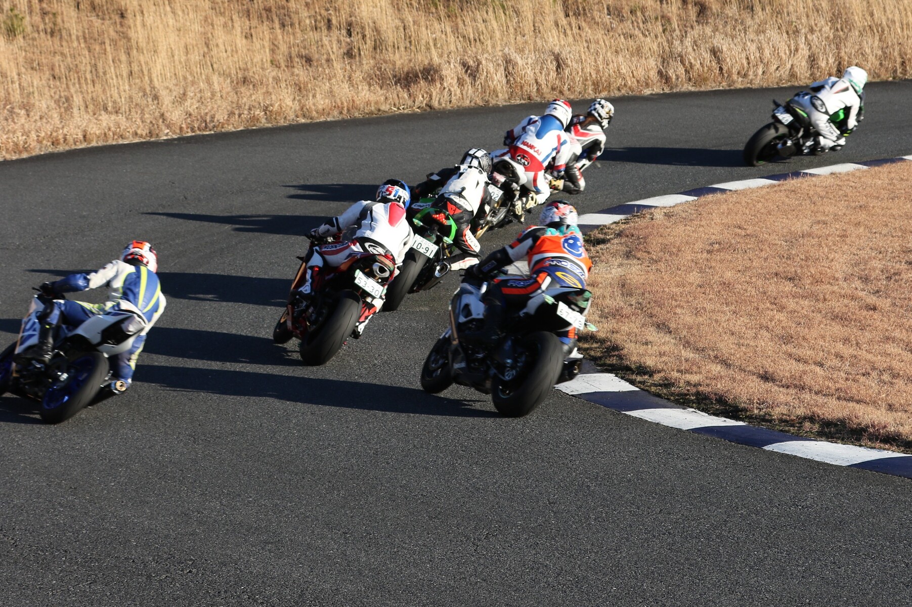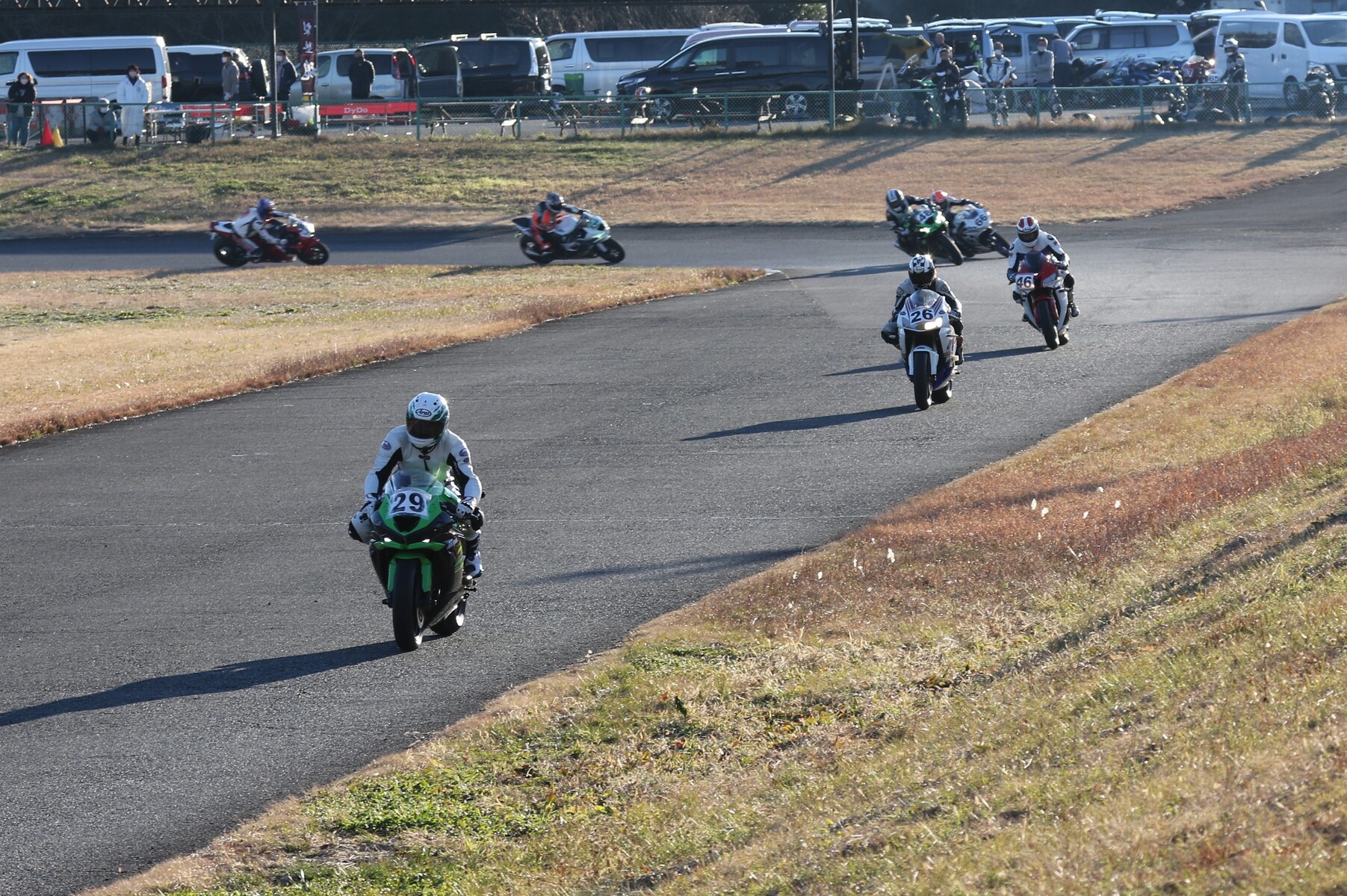 4番手に矢後ZX6R、フロントロースタートだった白土は5番手、6番手に菅原ZX6R、7番手に片岡GSXR125。