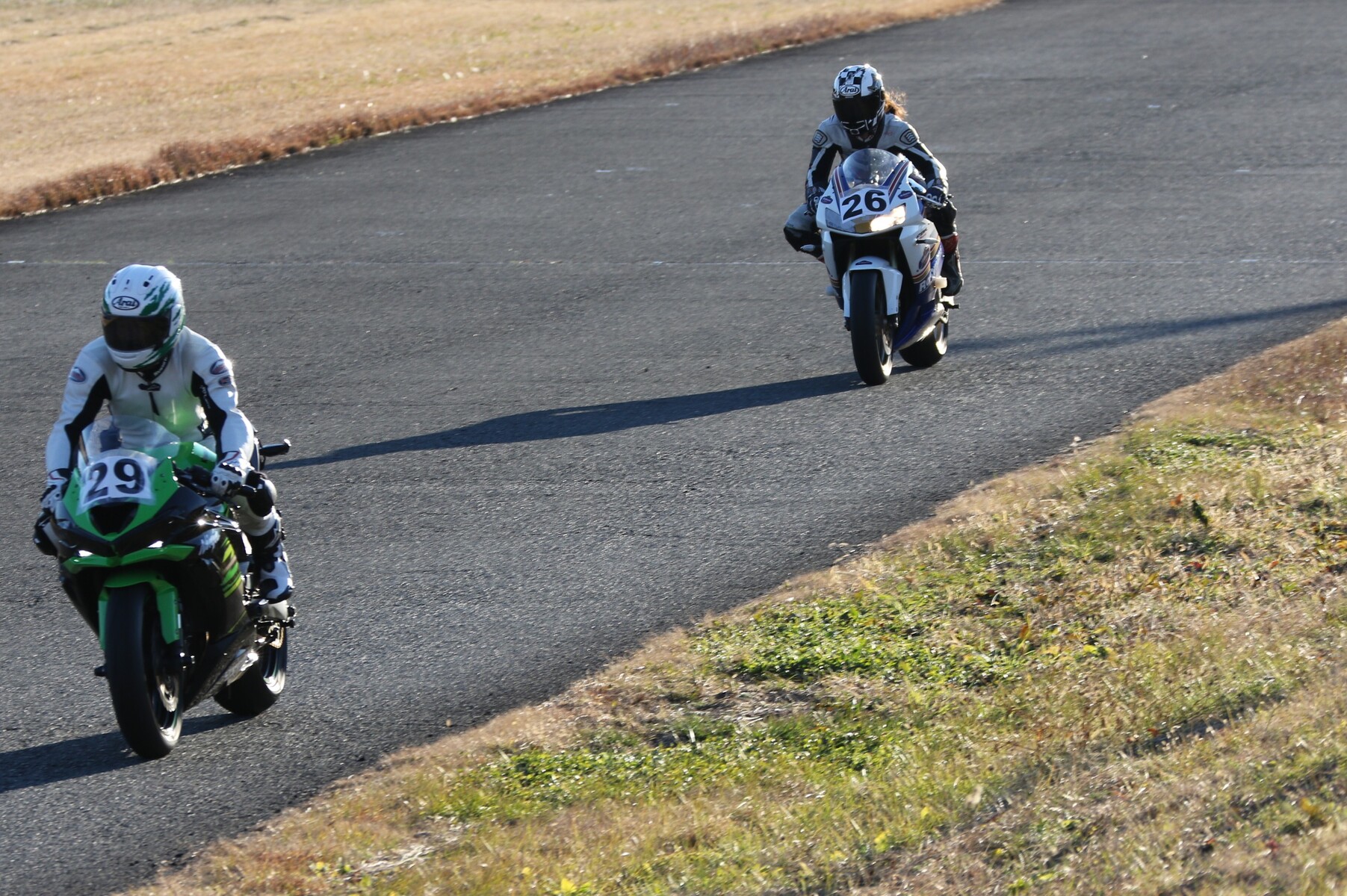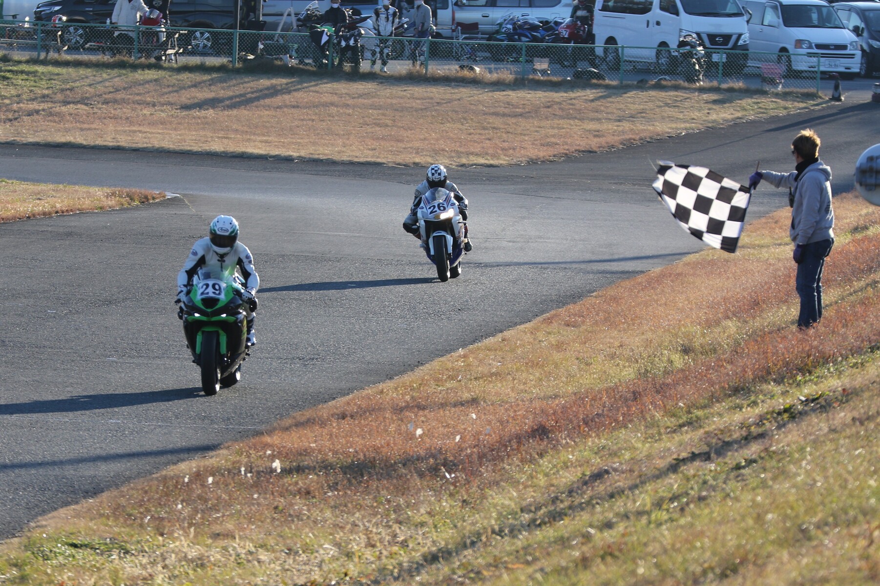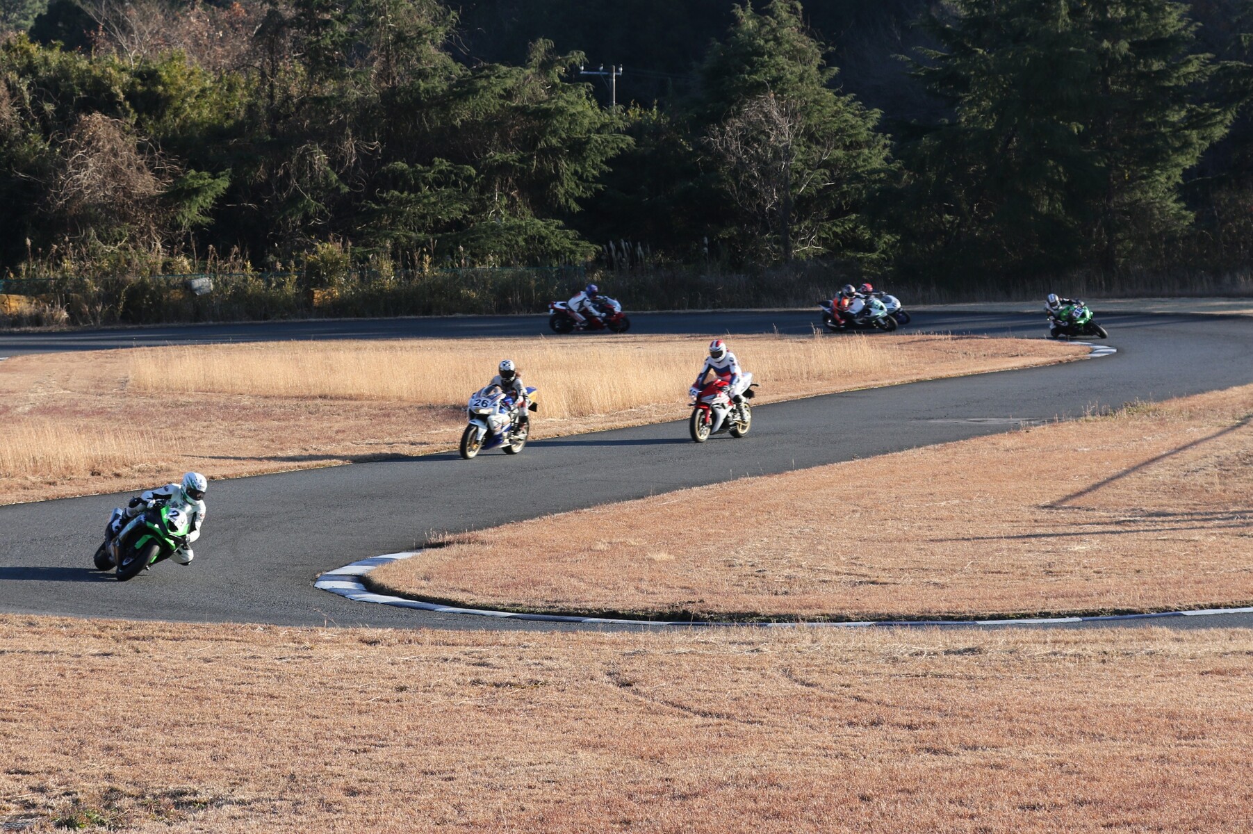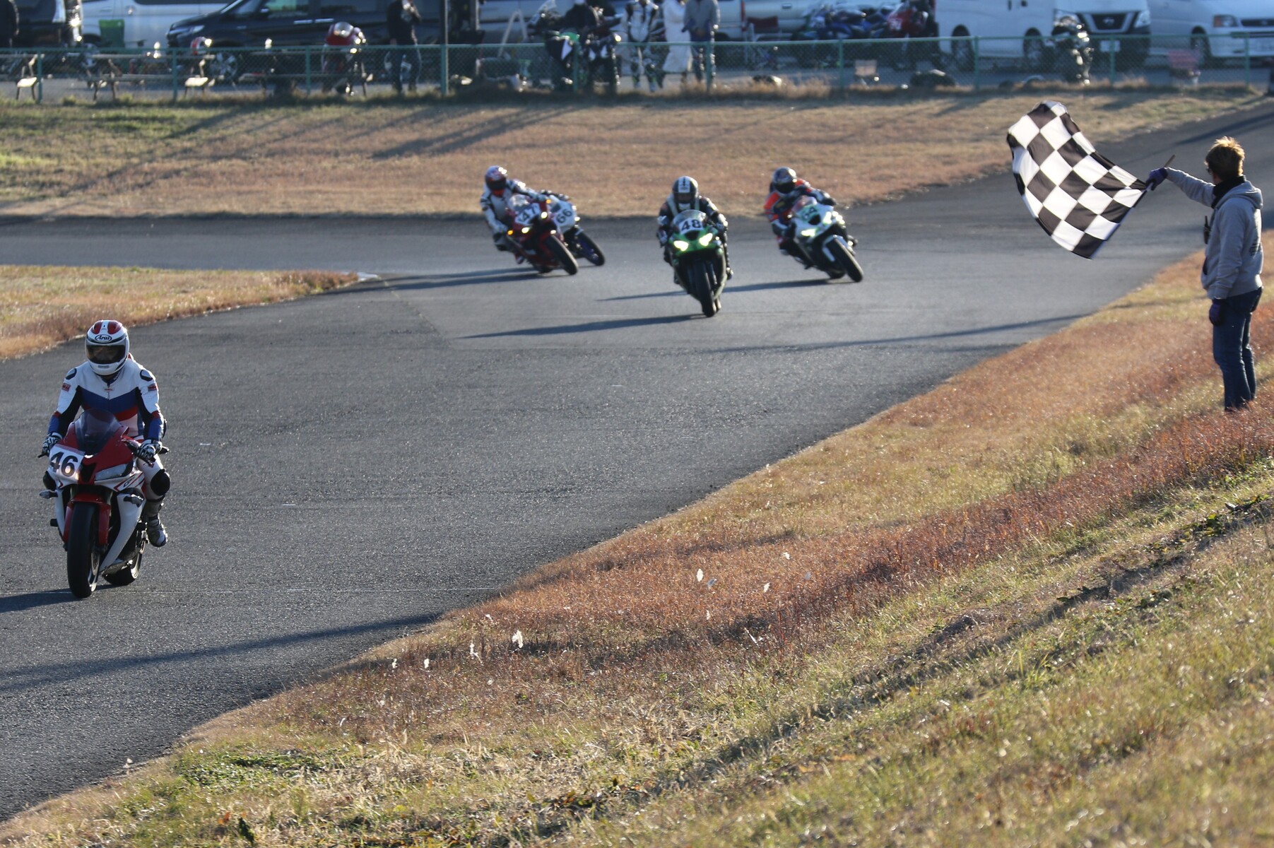 4番手に矢後ZX6R、フロントロースタートだった白土は5番手、6番手に菅原ZX6R、7番手に片岡GSXR125。
