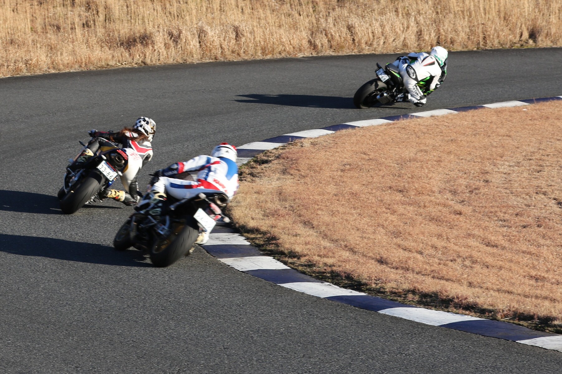 3位争いは、2台のZX6RとCBR600RR。