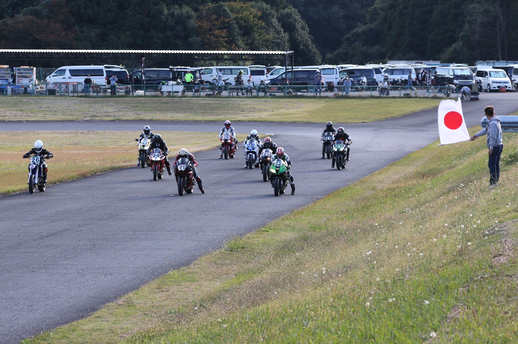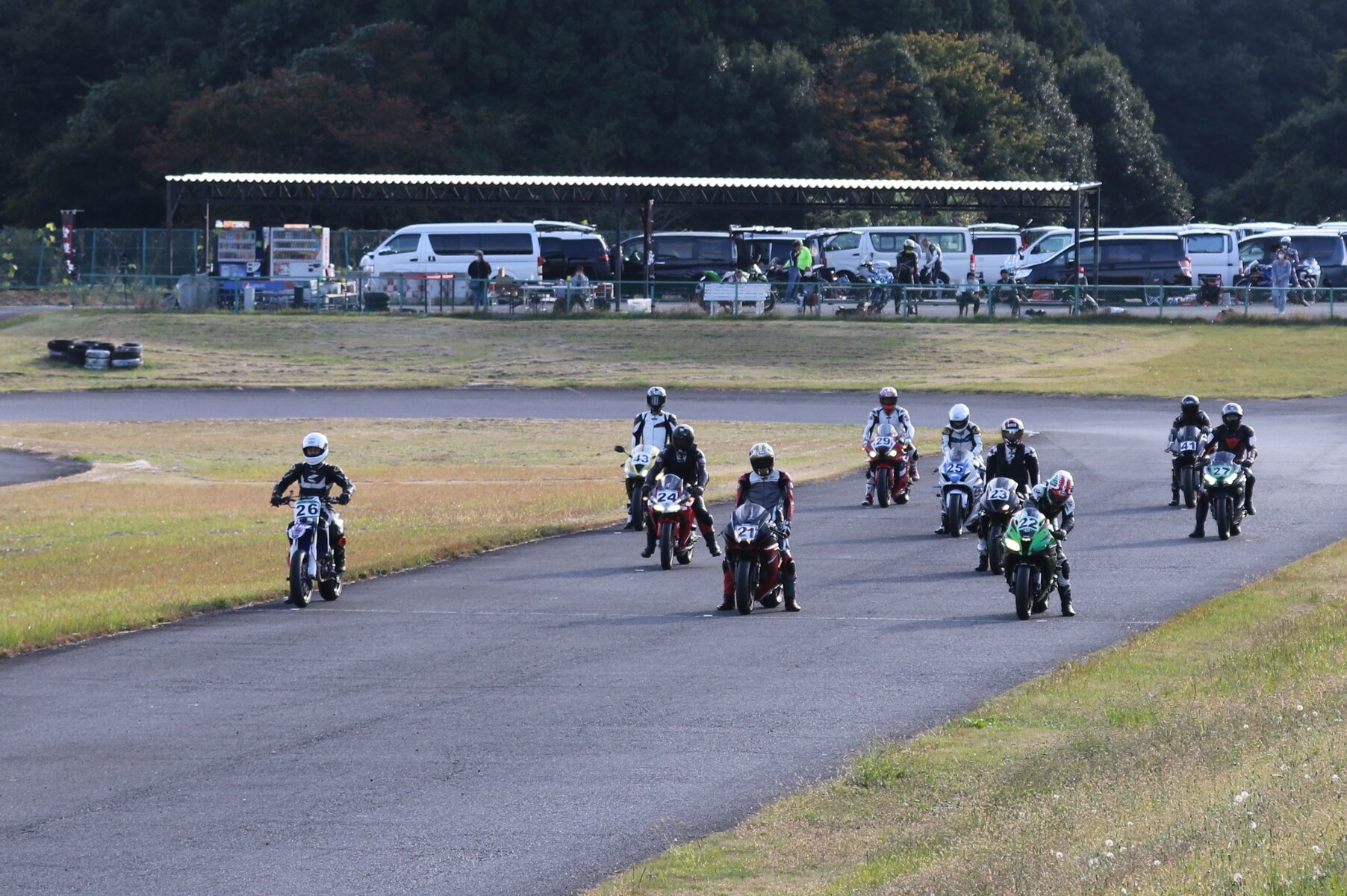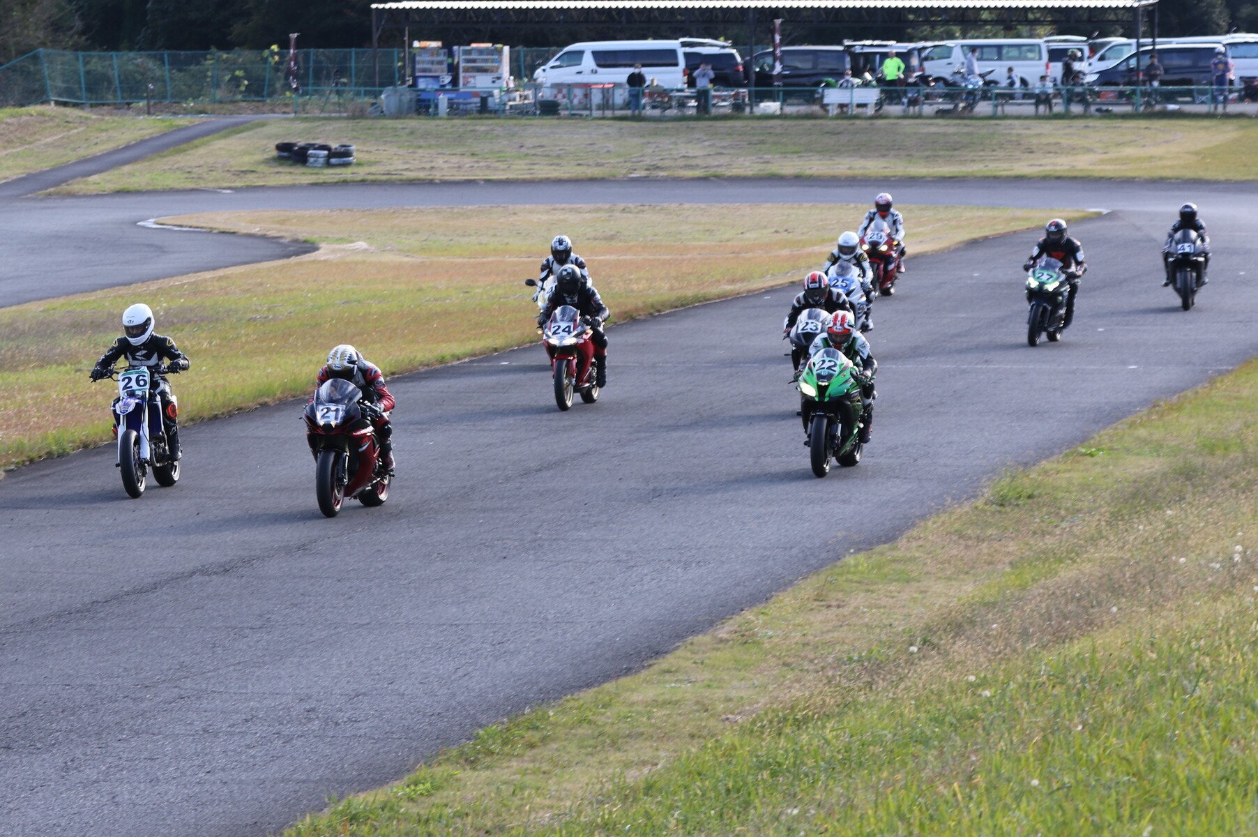 250ccから1000ccまでが集うK-RUN-GP Bクラス。フリー走行を経てグリッドに整列。