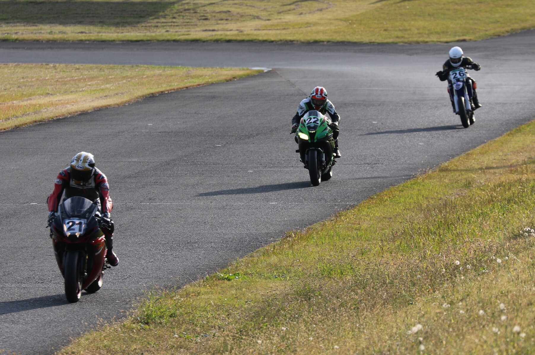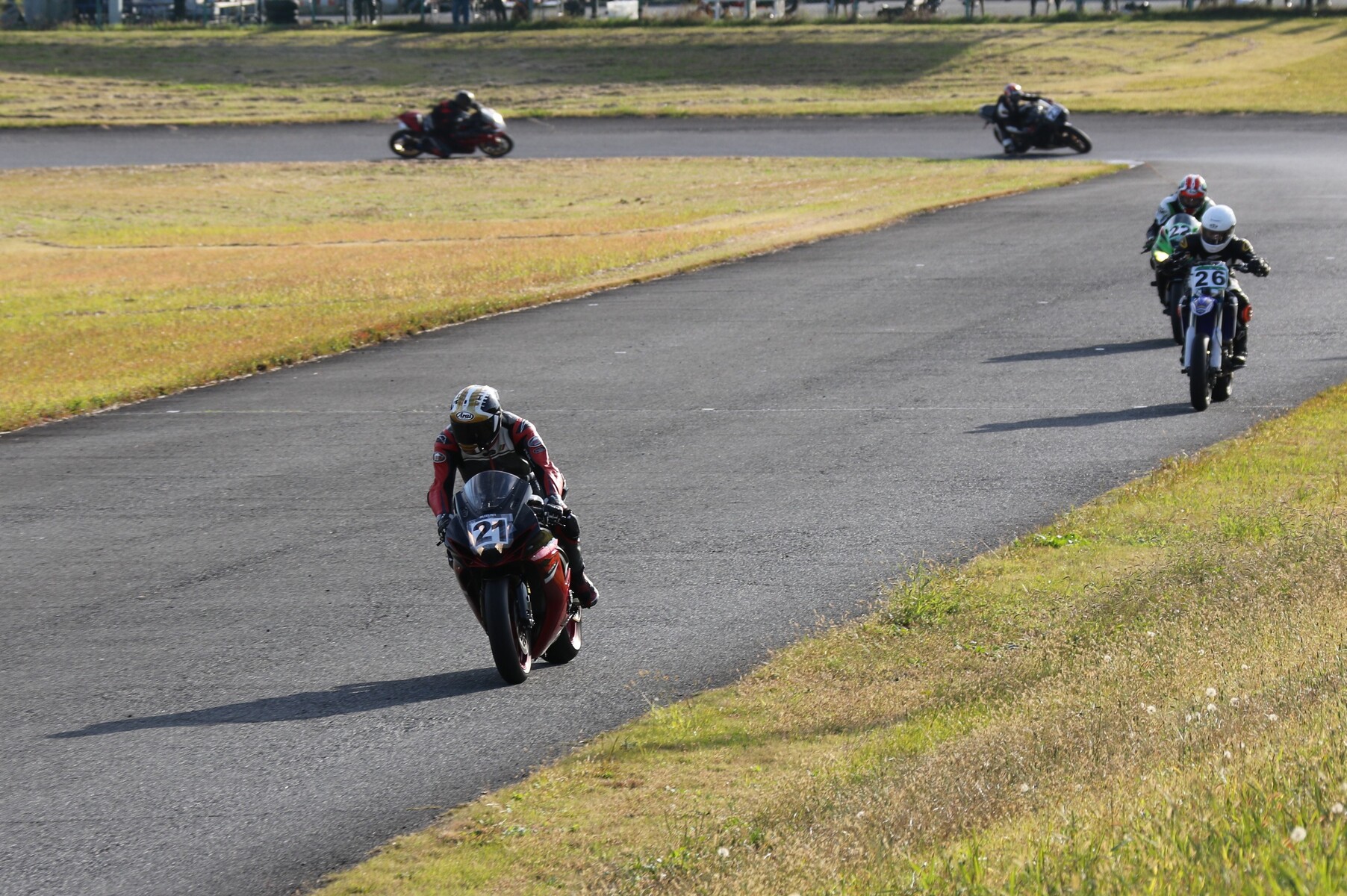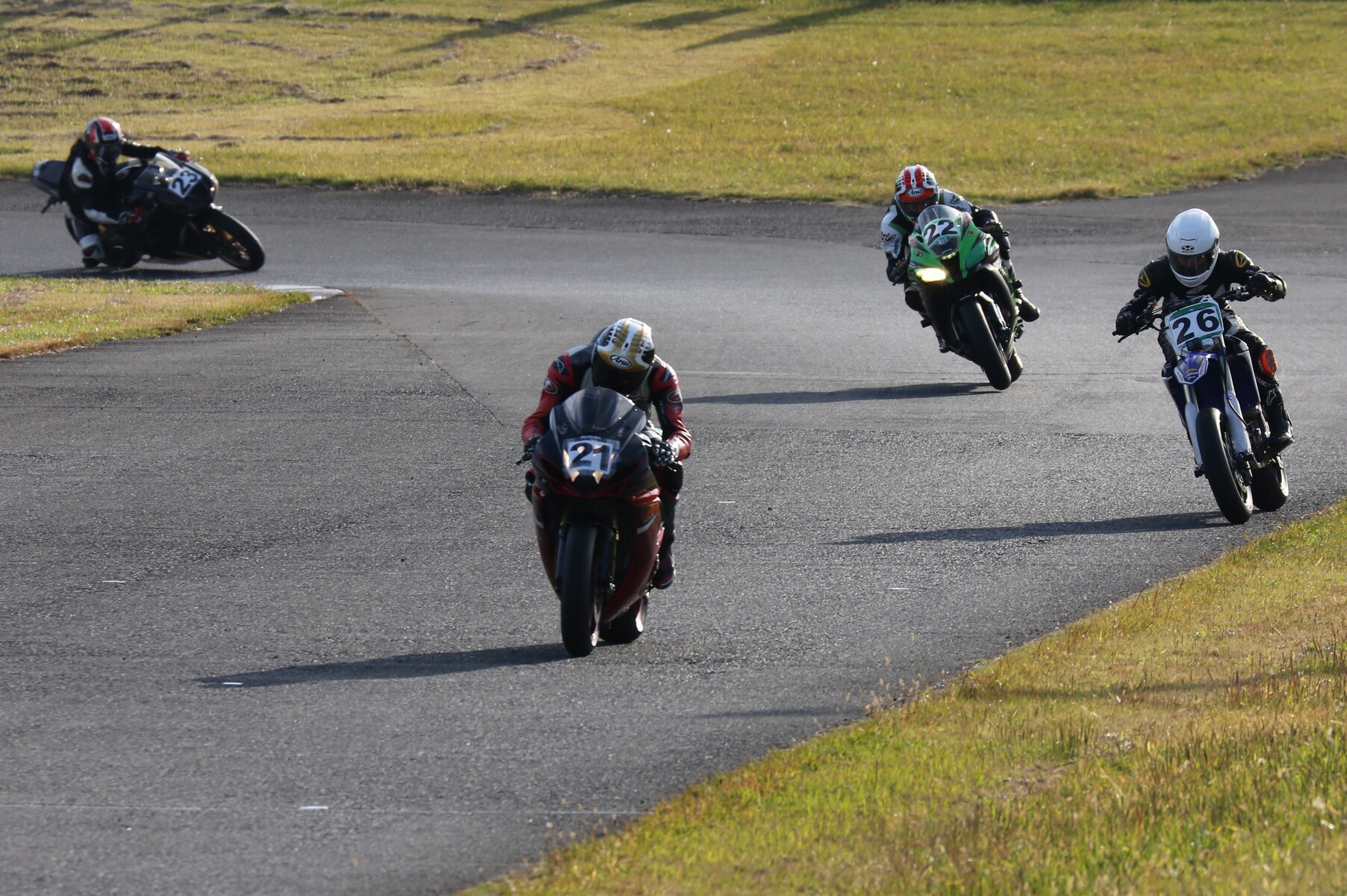 250ccから1000ccまでが集うK-RUN-GP Bクラス。フリー走行を経てグリッドに整列。