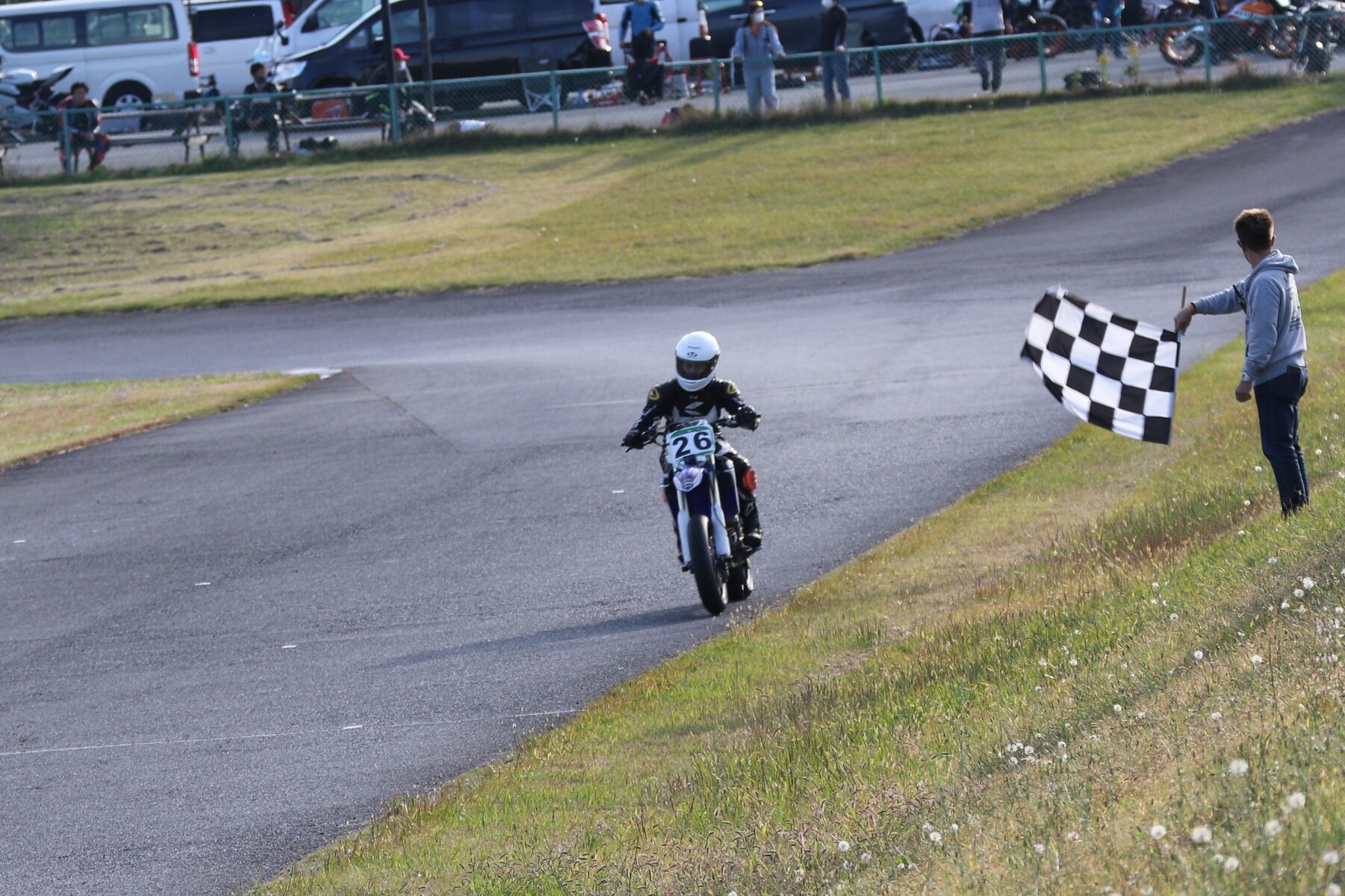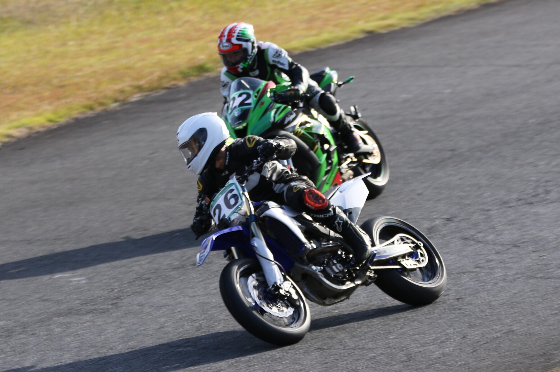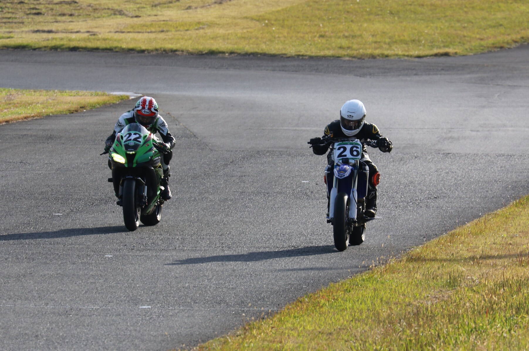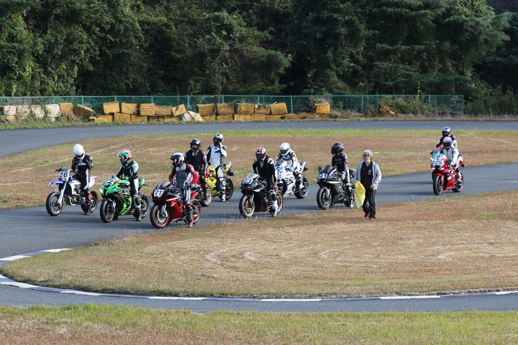 フロントローにはZX10R、GSXR750、そしてYZ250Fが並ぶ。 ポールポジションタイムは27秒860、ボーダータイムは29秒313。