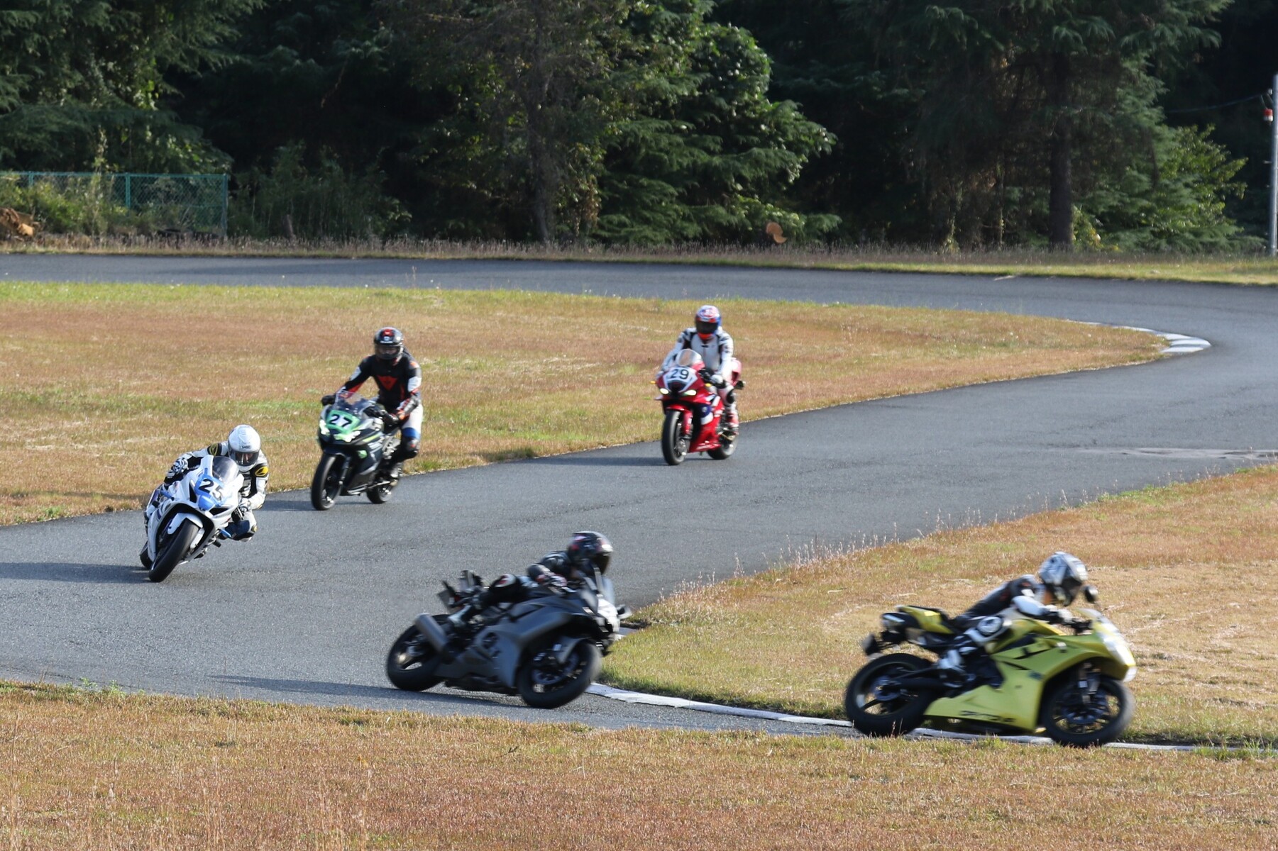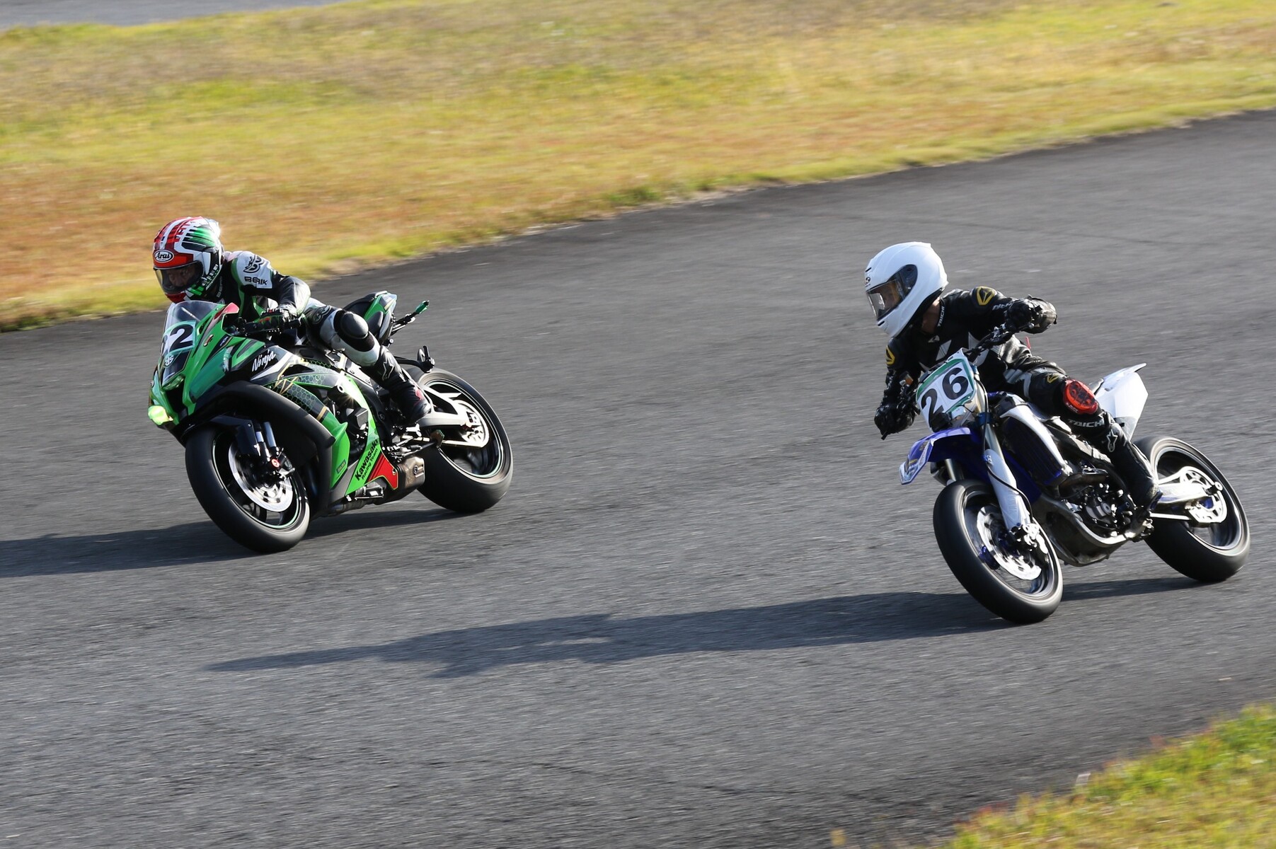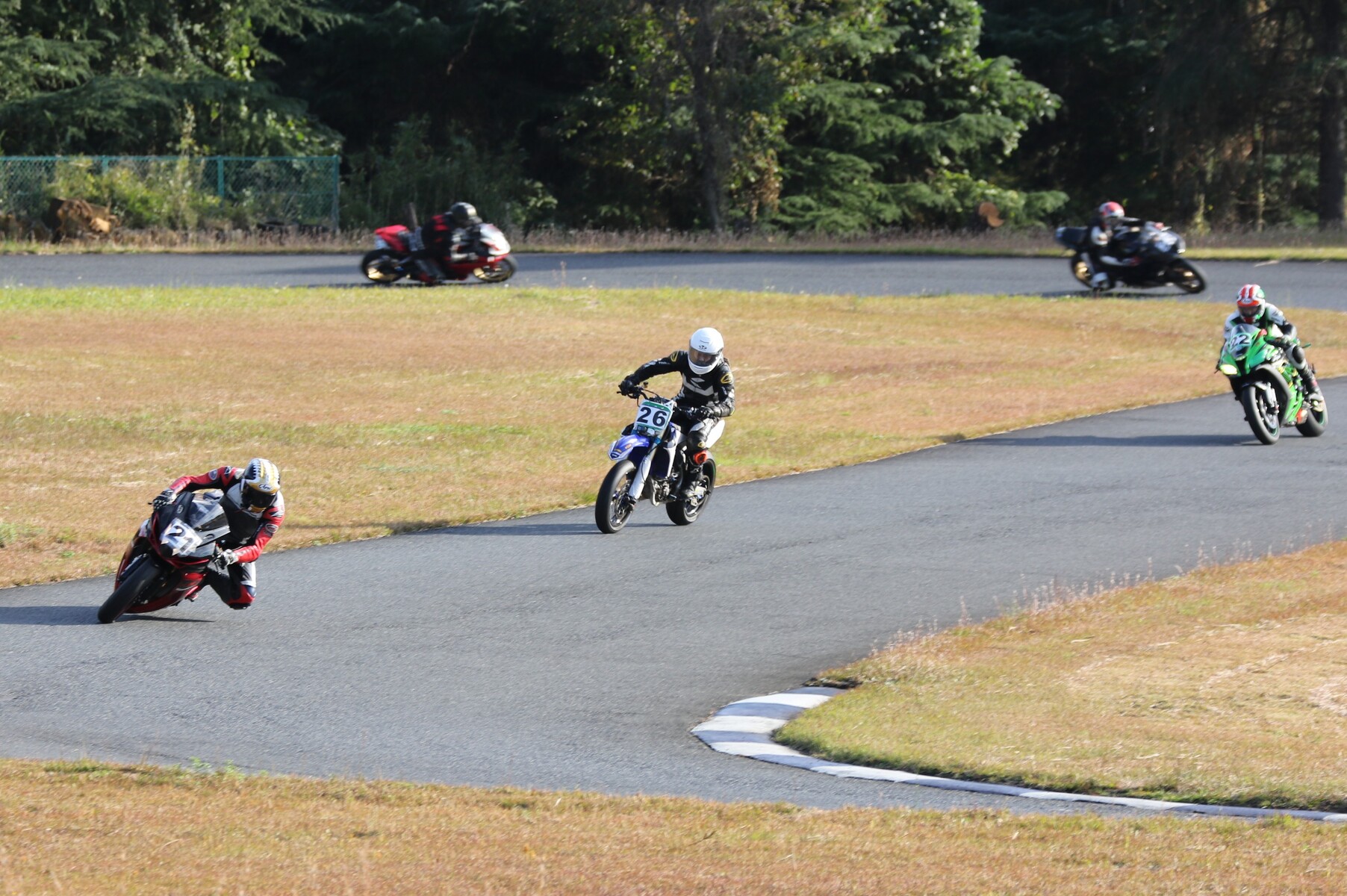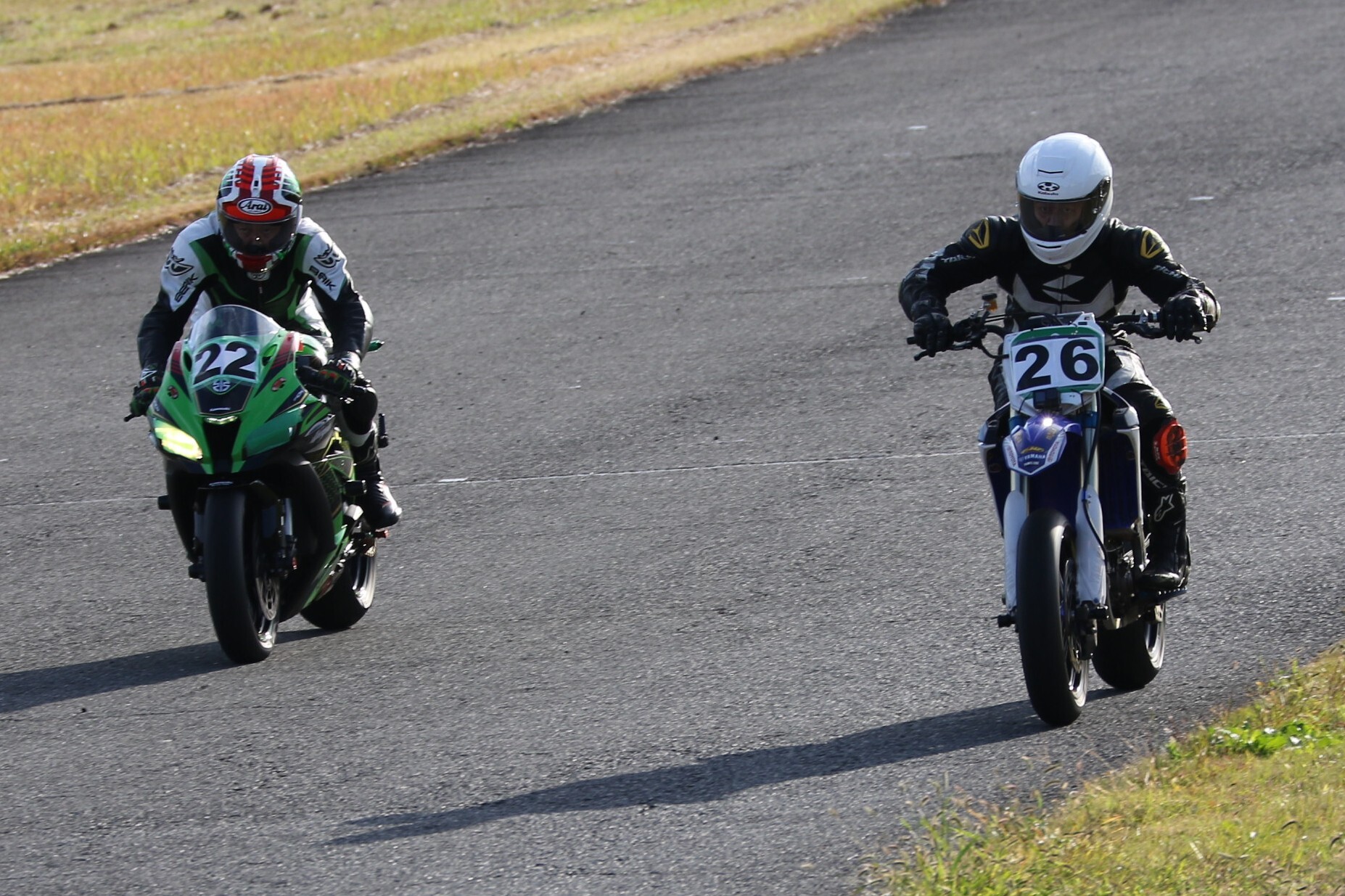 フロントローにはZX10R、GSXR750、そしてYZ250Fが並ぶ。 ポールポジションタイムは27秒860、ボーダータイムは29秒313。