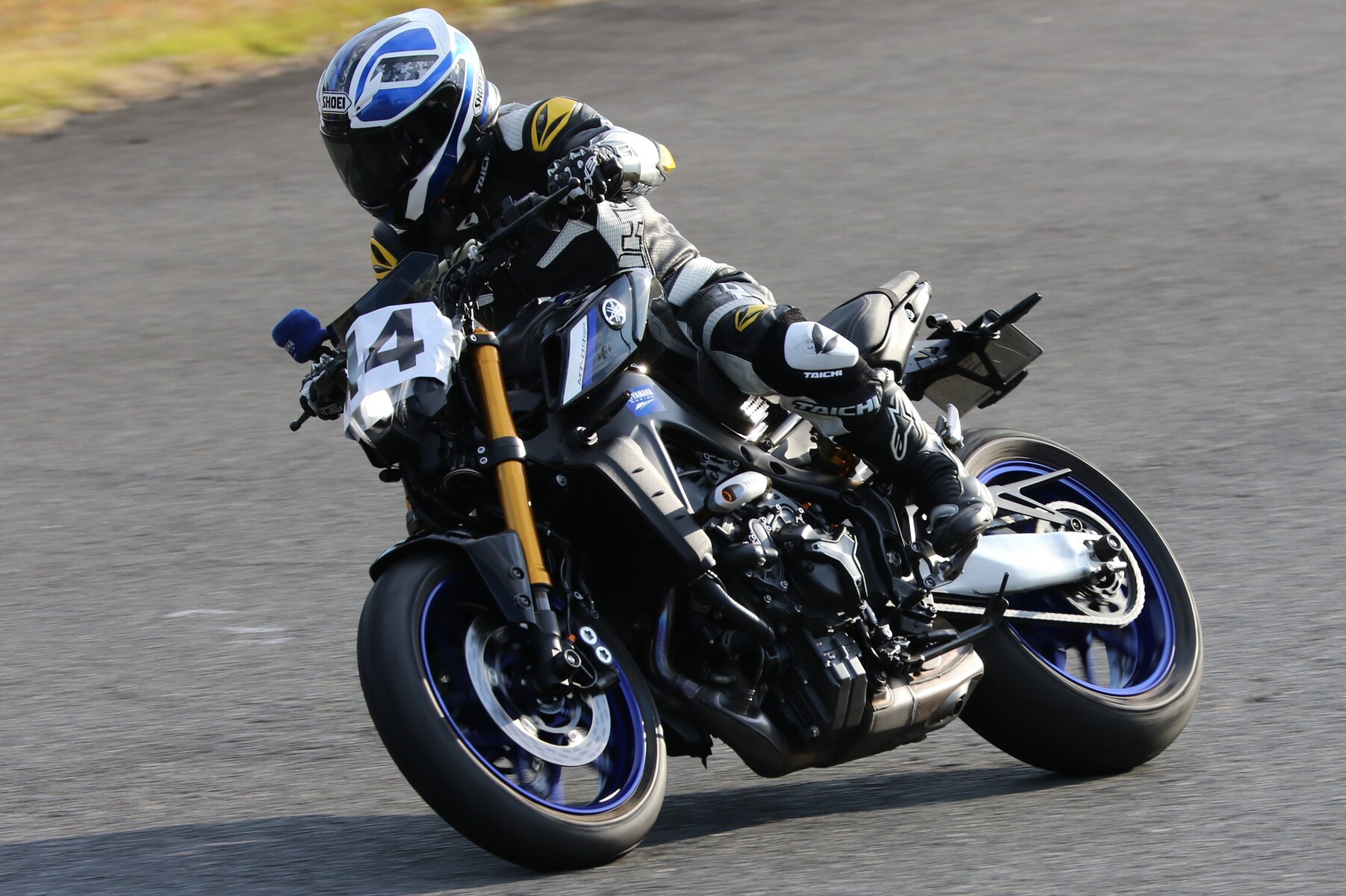 フロントホイールをリフトアップさせてダッシュした濱MT-09SP。